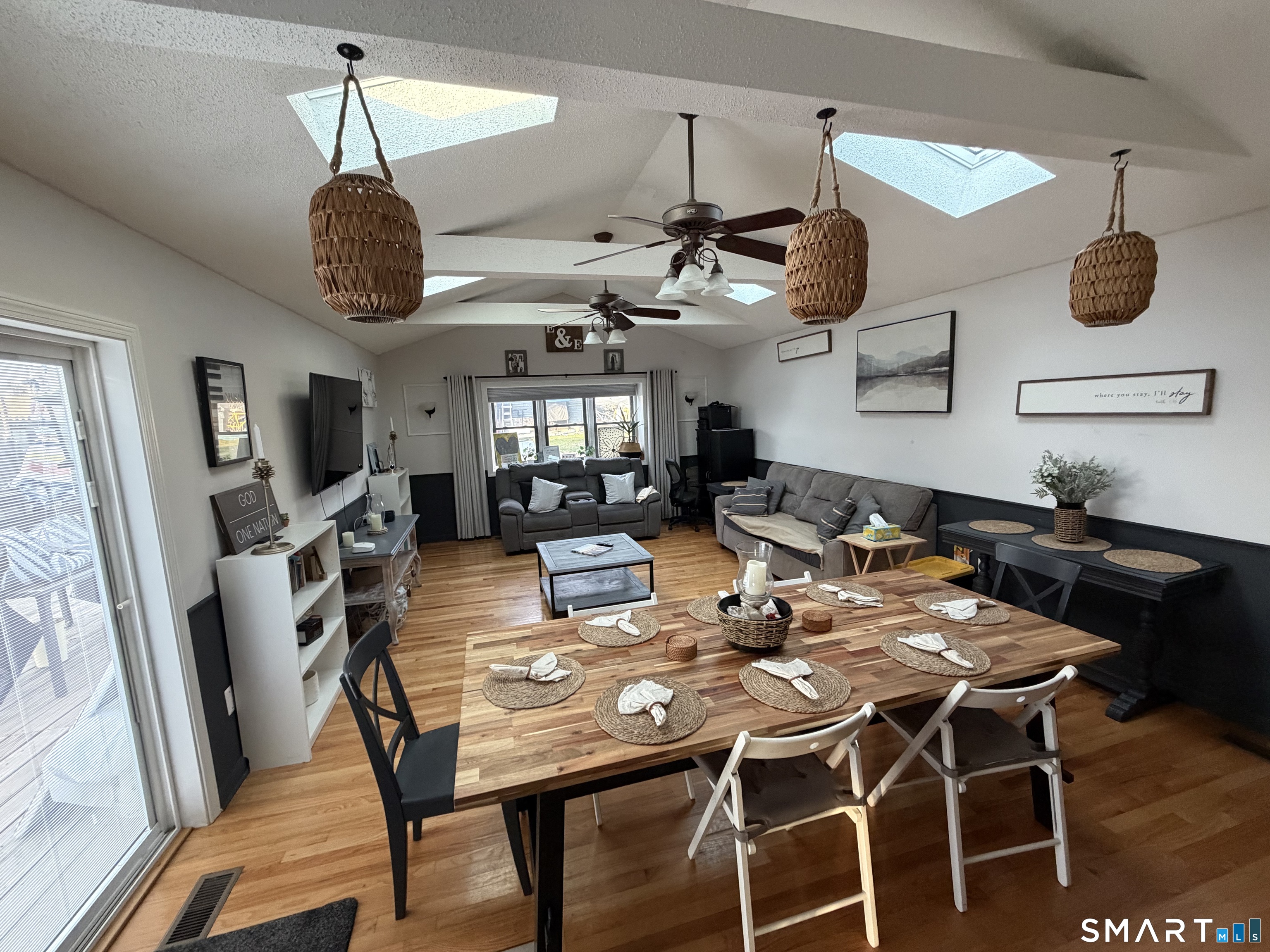 Welcome to a home that blends thoughtful upgrades with everyday comfort and convenience. This property features brand-new premium siding(just one year old), with a lifetime transferable warranty, as well as new gutters. The home has solar panels installed just over a year ago. The Solar is owned. This property have an upgraded 200 amp electrical service. This upgraded electrical panel supports modern Tesla vehicle charger. The property offers ample off-street parking while accommodating six cars in the driveway. Once you step out back you can enjoy a fully fenced generously sized flat yard. This is perfect for all to enjoy. Beautiful wooden deck, and a stylish Gazebo. Both entrances have modern beautiful awnings to enhance the homes comfort and exterior appeal. Retractable awning over the patio sliding doors. Once inside again this home continues to impress with the main living addition and its high vaulted ceiling with skylights. Conveniently located near tweed airport and I-95 and I-91. 25 minutes stroll to the beautiful beaches.