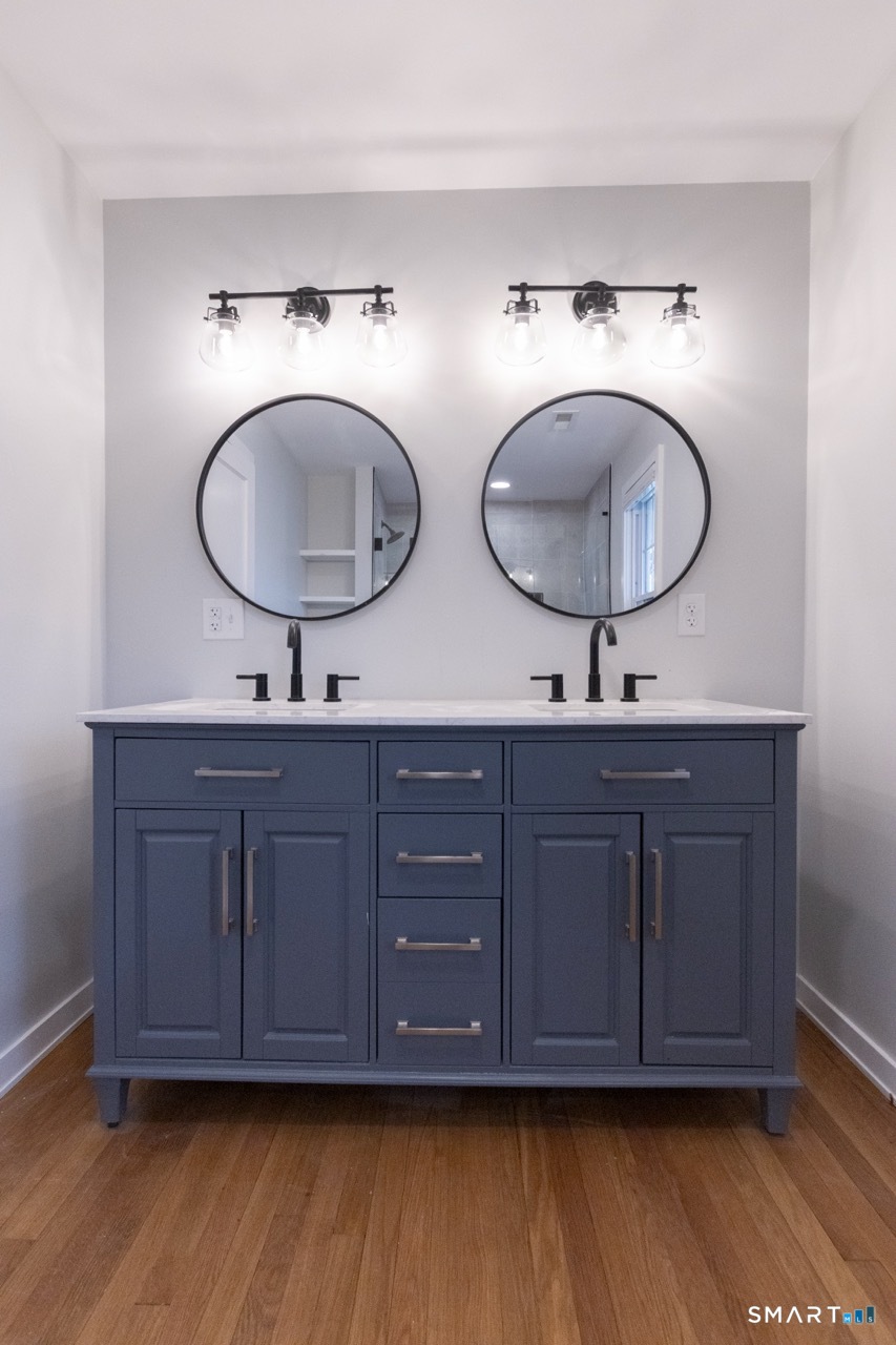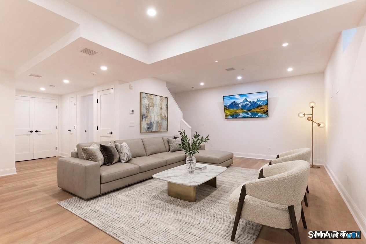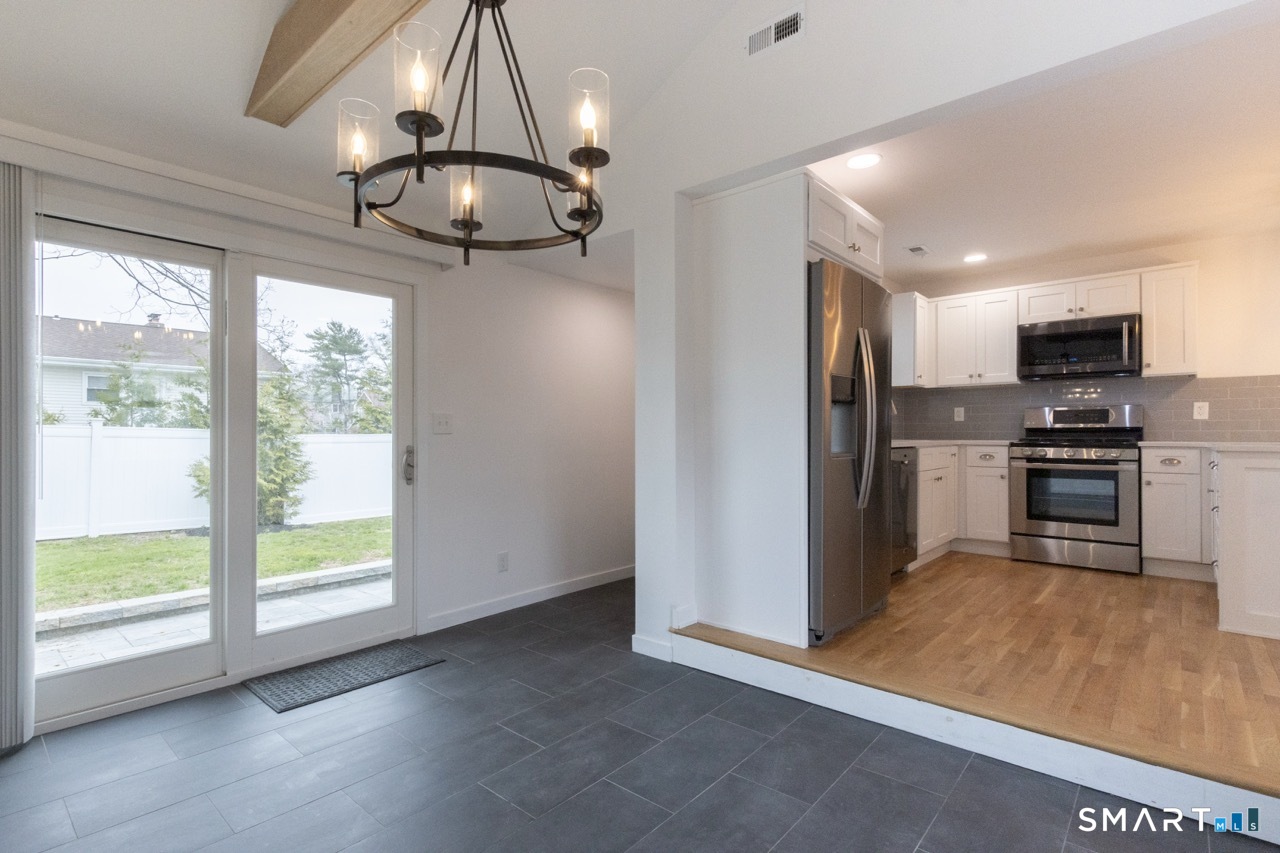 Set on a quiet street near Fairfield/Easton line, this beautiful, fully renovated 4 br, 3 full bath cape offers thoughtful design and high-end finishes. Situated on an exceptional, level, fully fenced property, this home features a remodeled kitchen with ample cabinetry, stunning white marbleized quartz countertops, and a breakfast bar. The kitchen includes stainless steel appliances and opens to the living room with a wood-burning fireplace and to the adjoining dining room with a vaulted, beamed ceiling, sliding doors, and mudroom area. Sunny rooms feature gleaming hardwood and tile floors, recessed lighting, energy-efficient tilt-in windows, gorgeous light fixtures, and high-quality doors and hardware. Three stylish full baths, including 2 remodeled and one new, are all finished in timeless style with terrific vanities, tile showers, and fixtures. The first-floor primary bedroom enjoys its own full bath with double sinks and a large shower. The recently finished lower level is truly impressive, with a spacious family room with recessed lighting and a wall-mounted TV plus a new full bath, and a 4th bedroom, all completed with town approvals. On the 2nd floor, two additional bedrooms offer excellent flexibility. Outside, the beautifully designed landscape includes a newer retaining wall, fencing, bluestone front porch, walkways, a patio, and window wells. The 1st floor laundry is tucked behind a barn door. Updated mechanicals include c/a & dehumidification system.