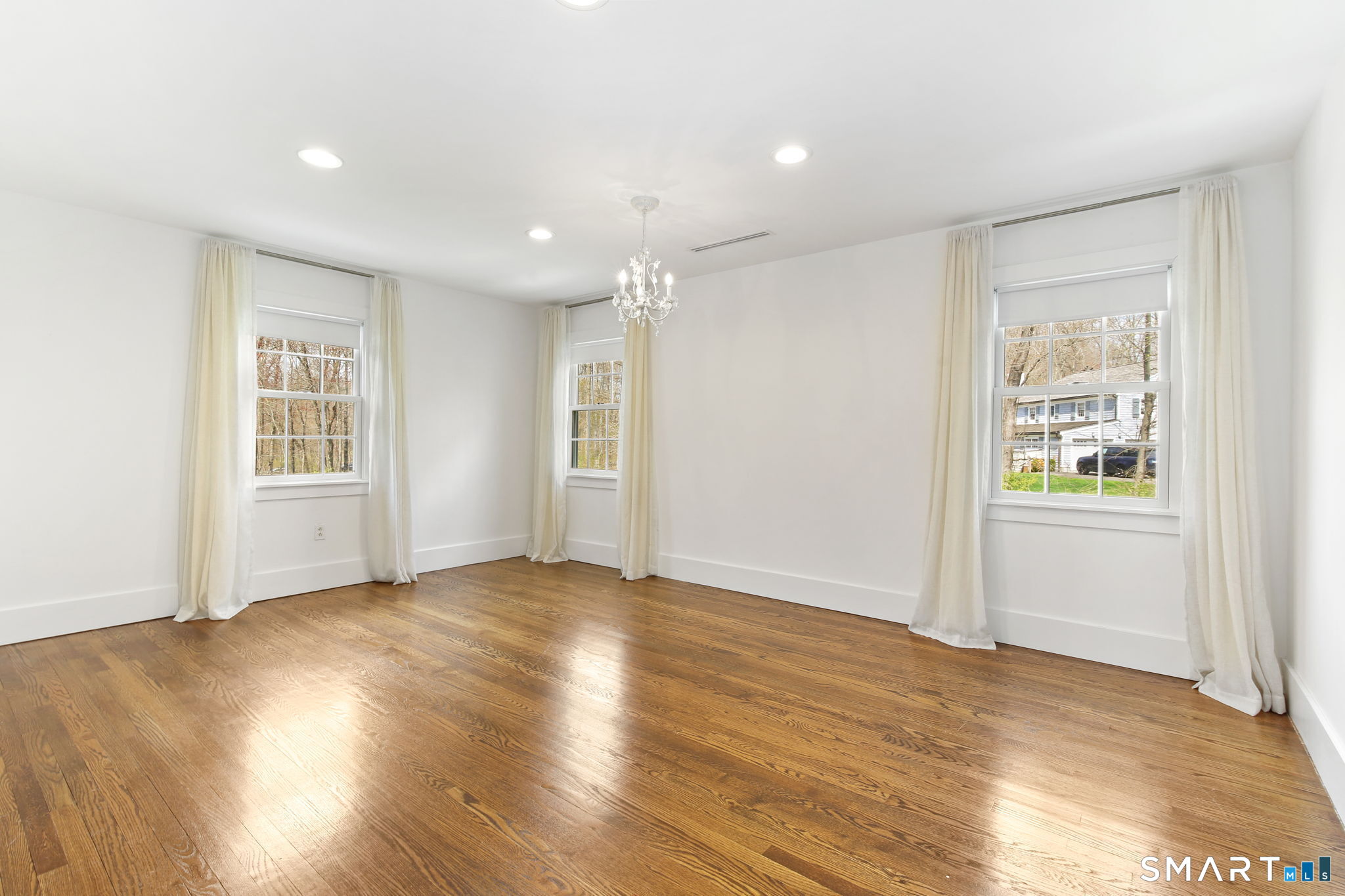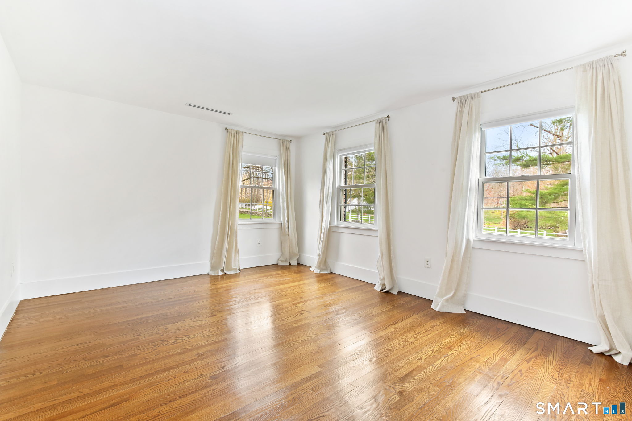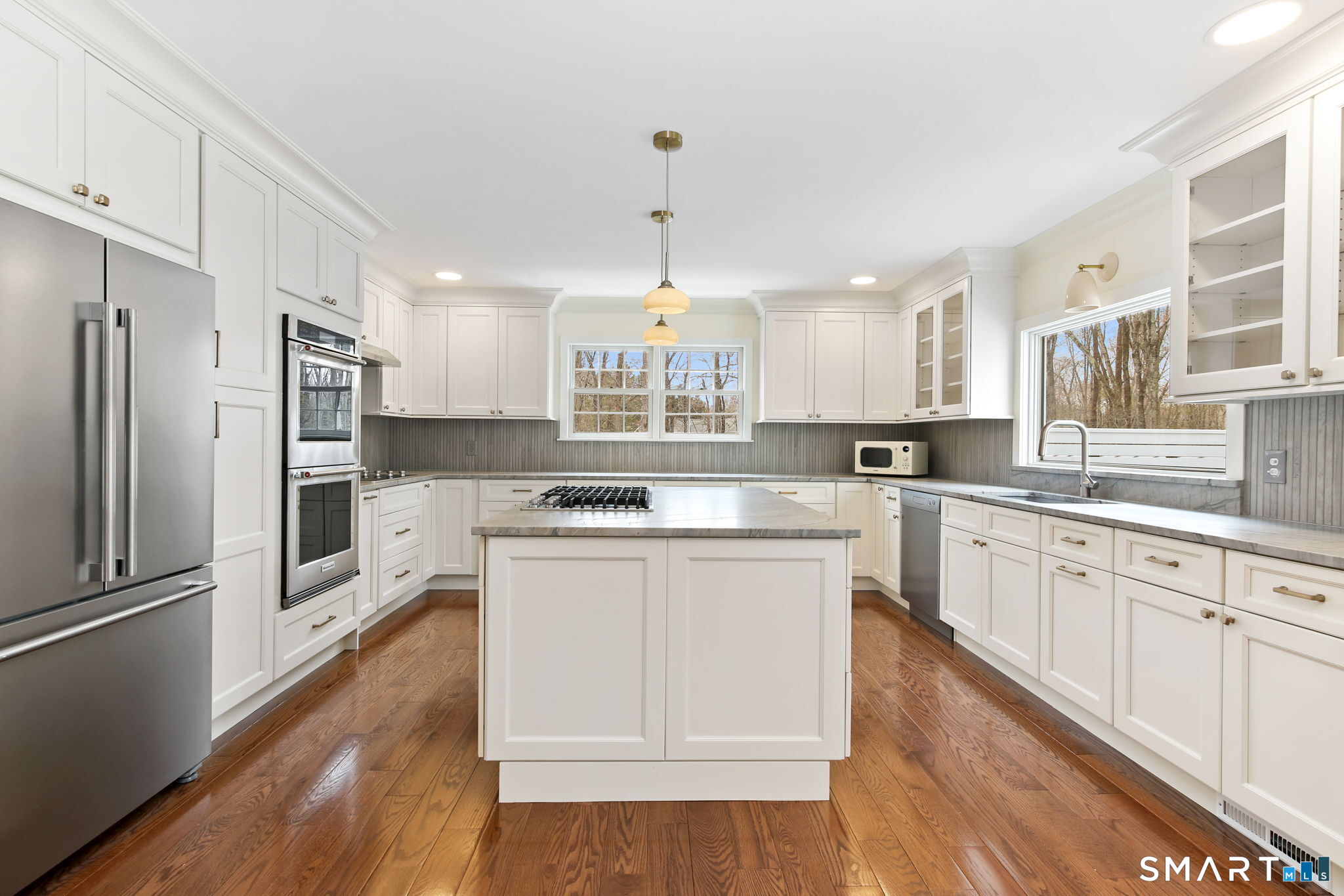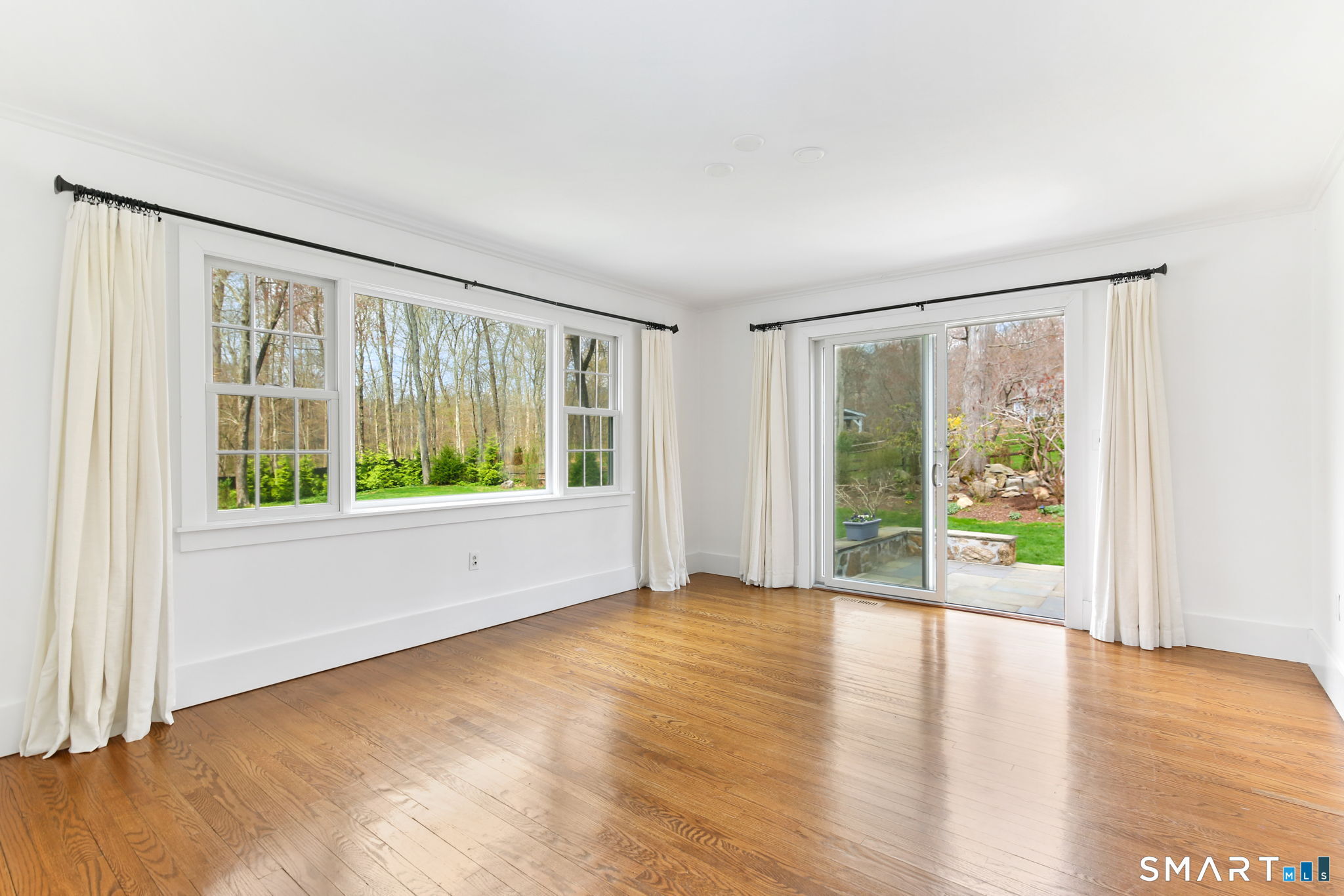 Situated on over two private acres in the highly desirable Mid-Country Greenwich area, this sophisticated 5-bedroom, 3.5-bath brick Colonial is a move-in-ready home designed for comfortable living and effortless entertaining. A welcoming foyer introduces the home's spacious layout, leading to both the living and family rooms. The generous family room, featuring a fireplace, flows seamlessly into the formal dining room. The updated, oversized eat-in kitchen opens to a large deck, creating an ideal setting for indoor-outdoor gatherings. A flexible bonus room-perfect as a sunroom, den, or home office-offers sliding doors that open to the expansive, private backyard. The home includes two primary bedroom suites - one on the main level and another upstairs -offering versatility for guests, multi-generational living, or an au pair. Bright, sun-filled interiors, hardwood floors throughout, and a fully finished basement add to the home's comfort and appeal. Additional features include a three-car garage, beautifully updated bathrooms, a whole-house generator, and a fully fenced backyard. Just minutes from the amenities of Greenwich, this exceptional property offers a rare blend of privacy and convenience.