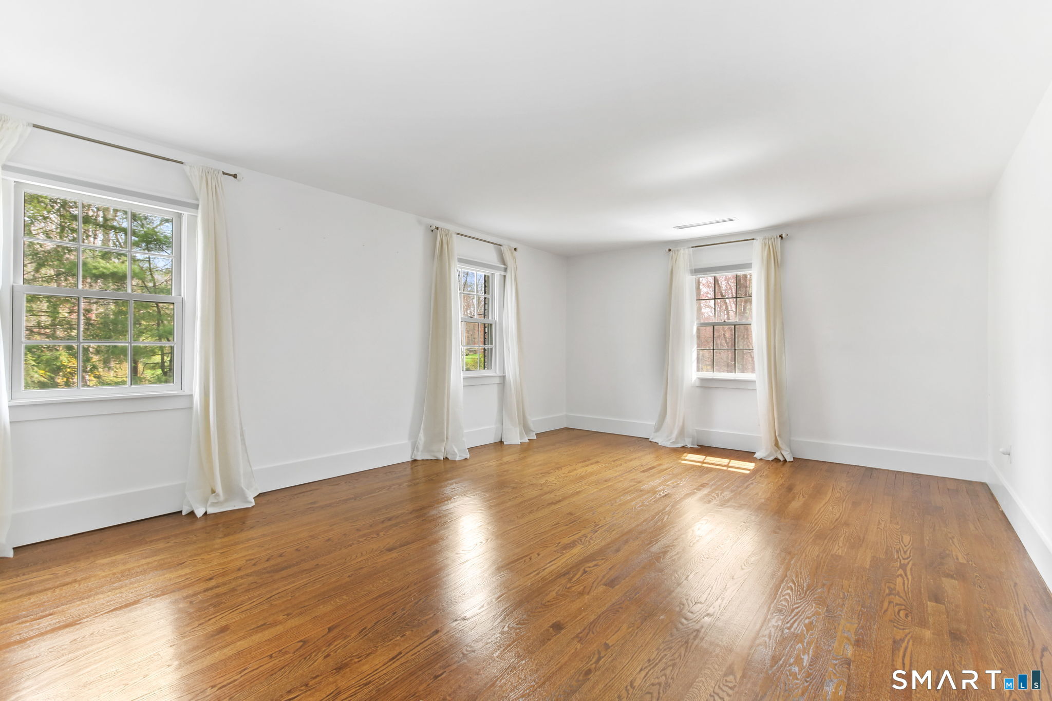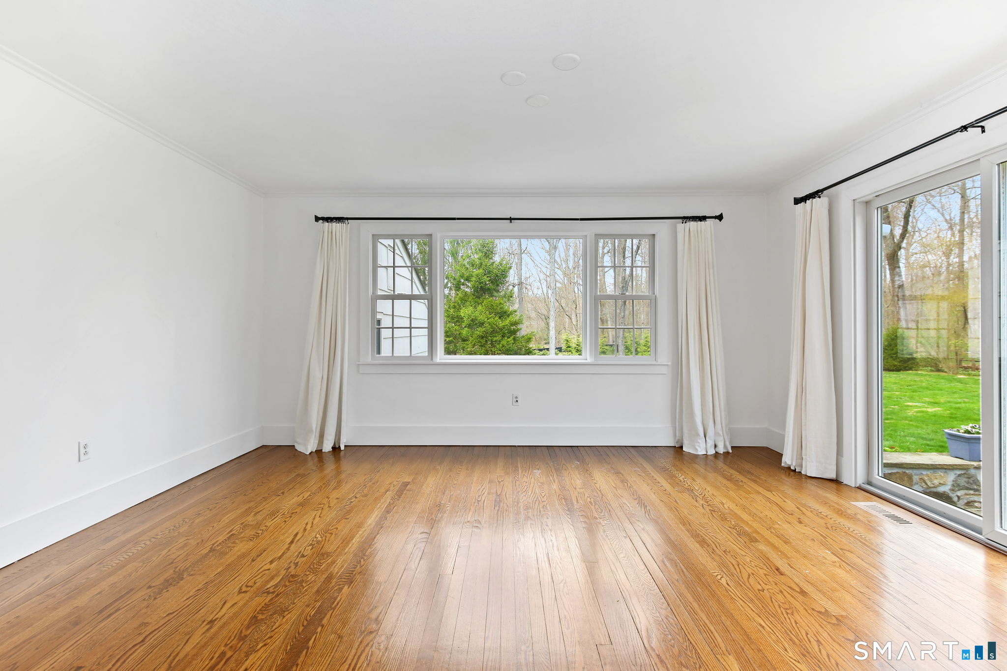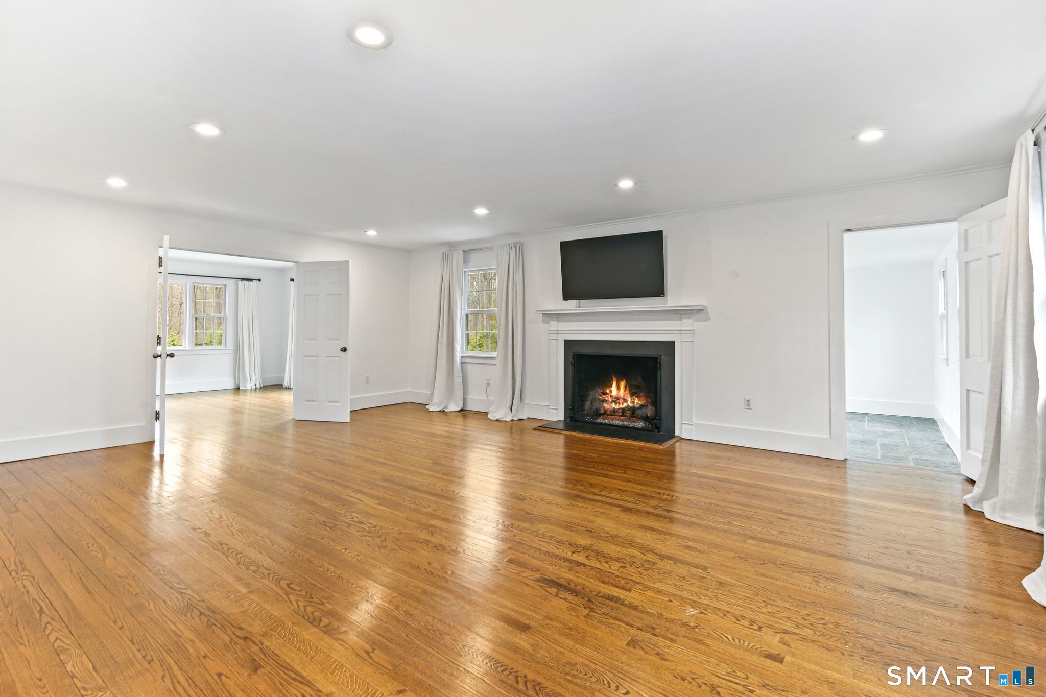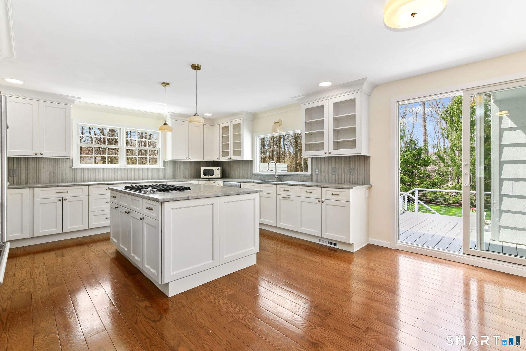 Situated on over two private acres in the highly desirable Mid-Country Greenwich area, this sophisticated 5-bedroom, 3.5-bath brick Colonial is a move-in-ready home designed for comfortable living and effortless entertaining. A welcoming foyer introduces the home's spacious layout, leading to both the living and family rooms. The generous family room, featuring a fireplace, flows seamlessly into the formal dining room. The updated, oversized eat-in kitchen opens to a large deck, creating an ideal setting for indoor-outdoor gatherings. A flexible bonus room-perfect as a sunroom, den, or home office-offers sliding doors that open to the expansive, private backyard. The home includes two primary bedroom suites - one on the main level and another upstairs -offering versatility for guests, multi-generational living, or an au pair. Bright, sun-filled interiors, hardwood floors throughout, and a fully finished basement add to the home's comfort and appeal. Additional features include a three-car garage, beautifully updated bathrooms, a whole-house generator, and a fully fenced backyard. Just minutes from the amenities of Greenwich, this exceptional property offers a rare blend of privacy and convenience.