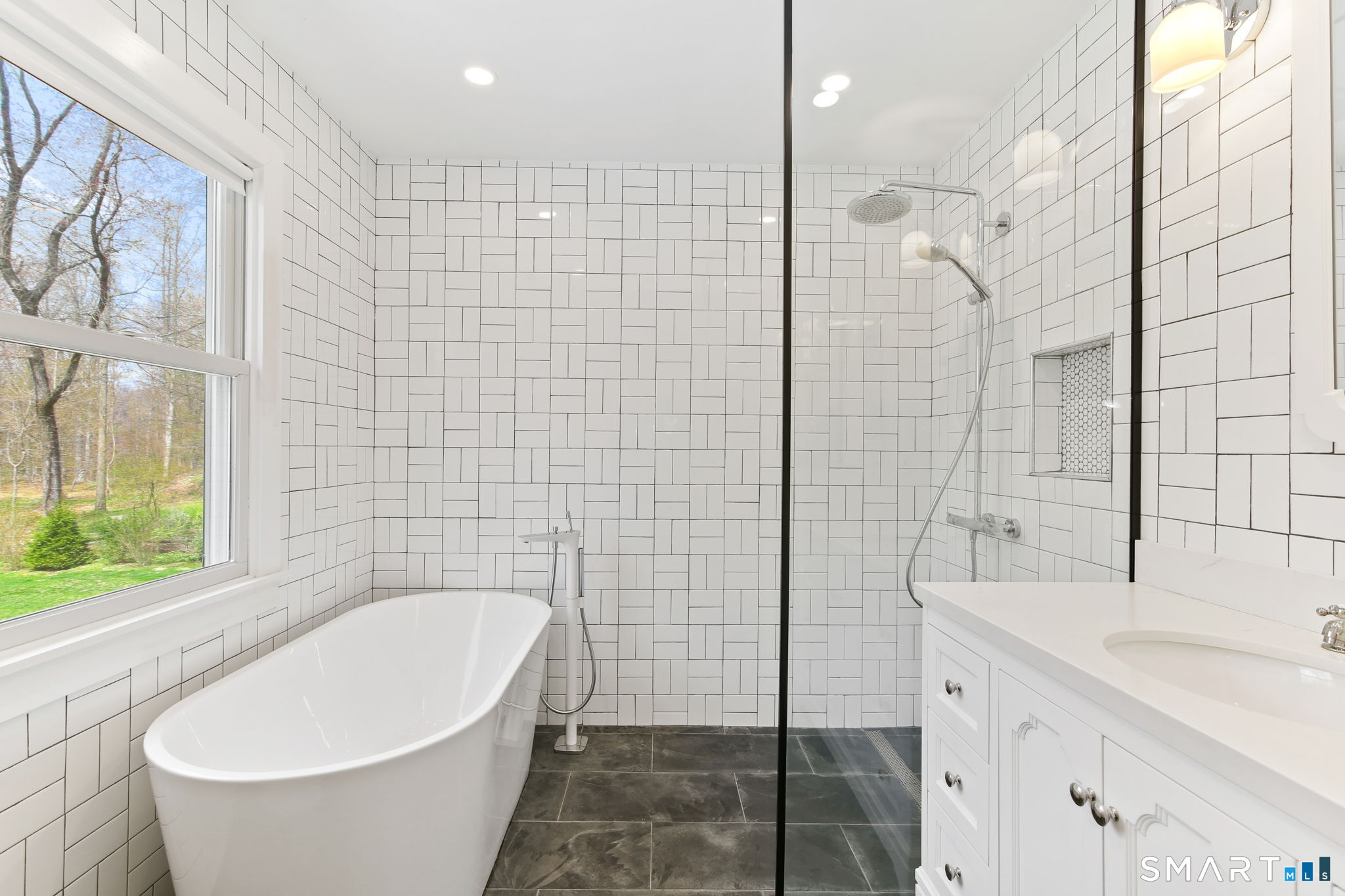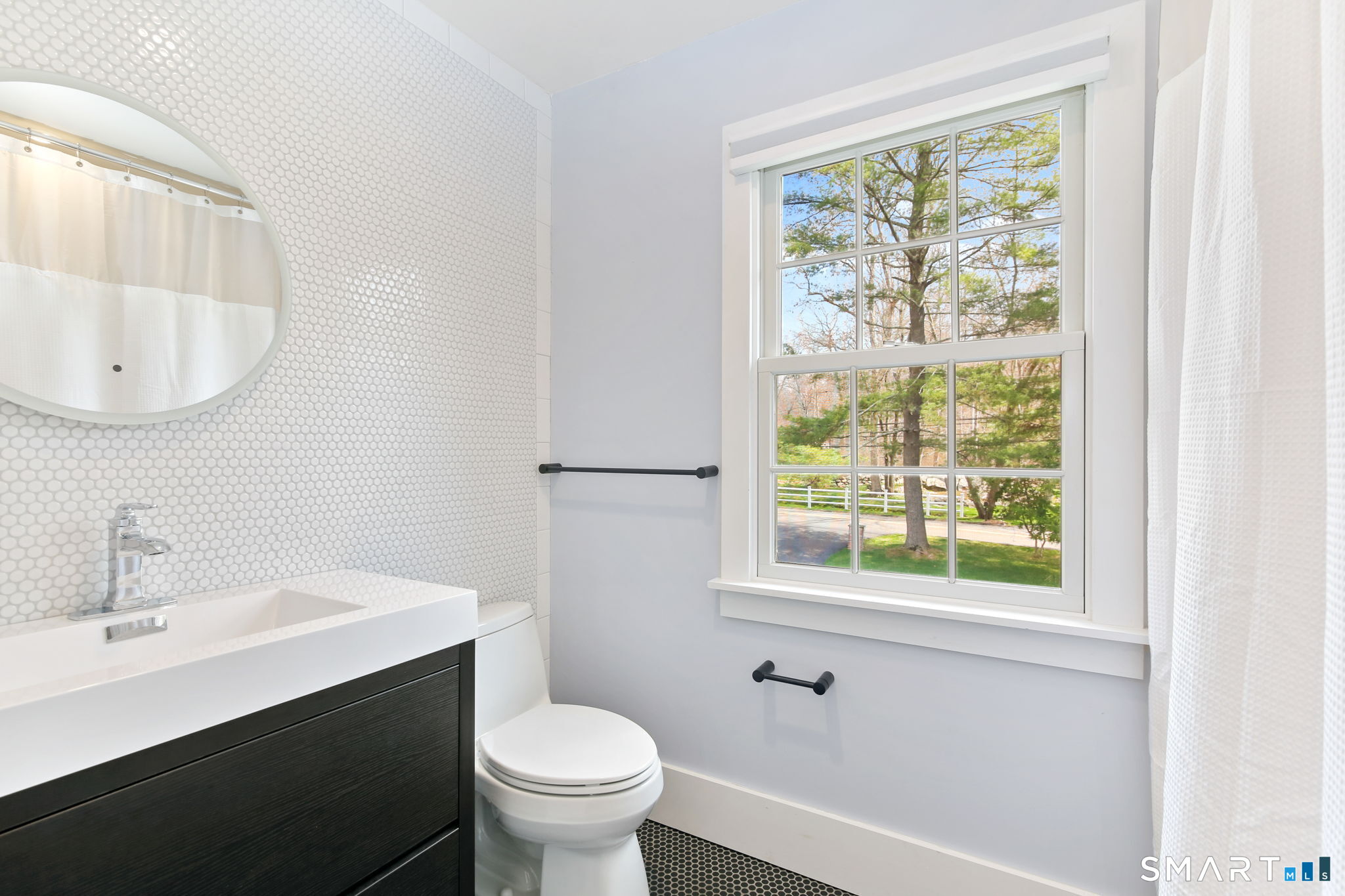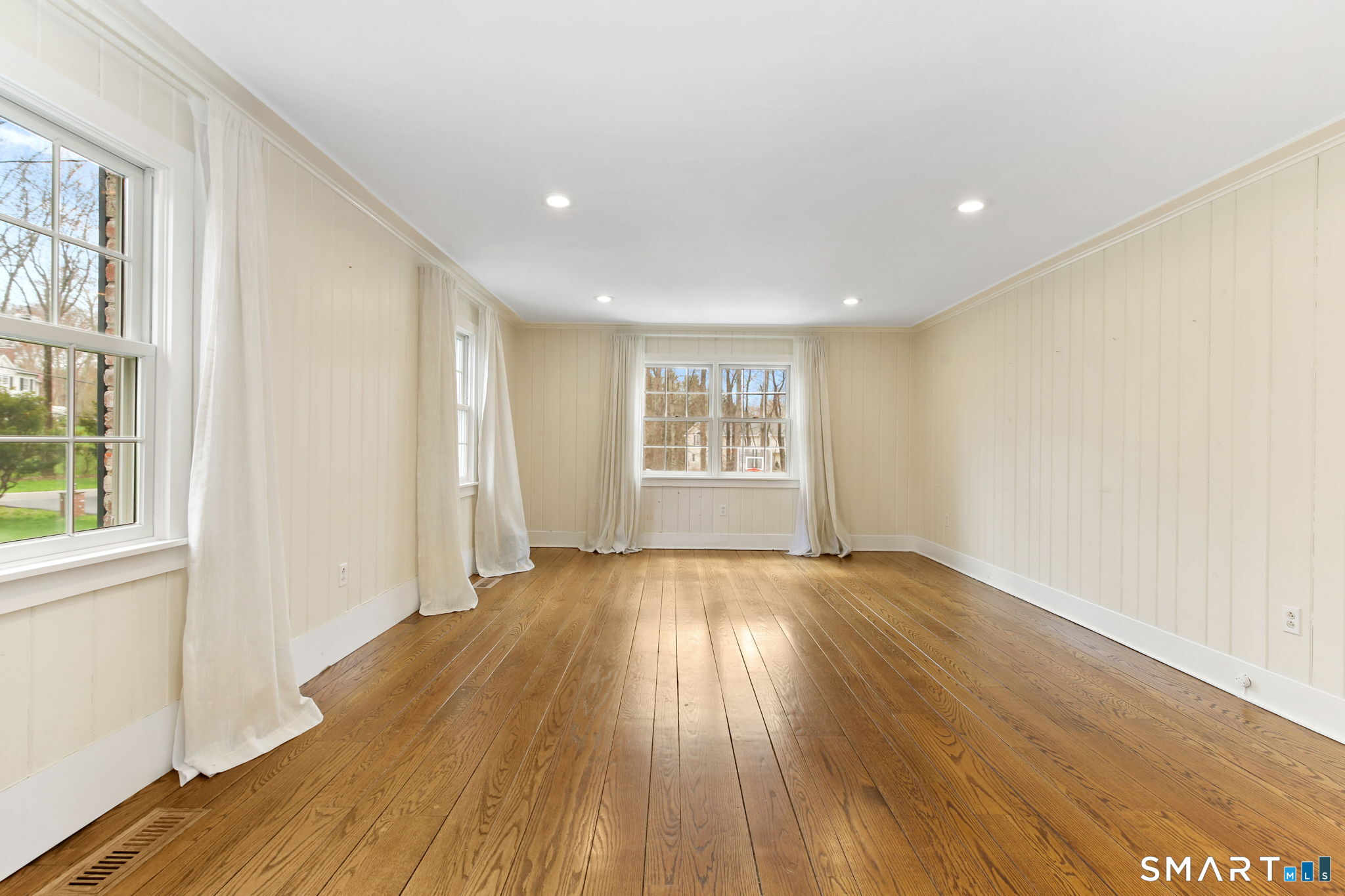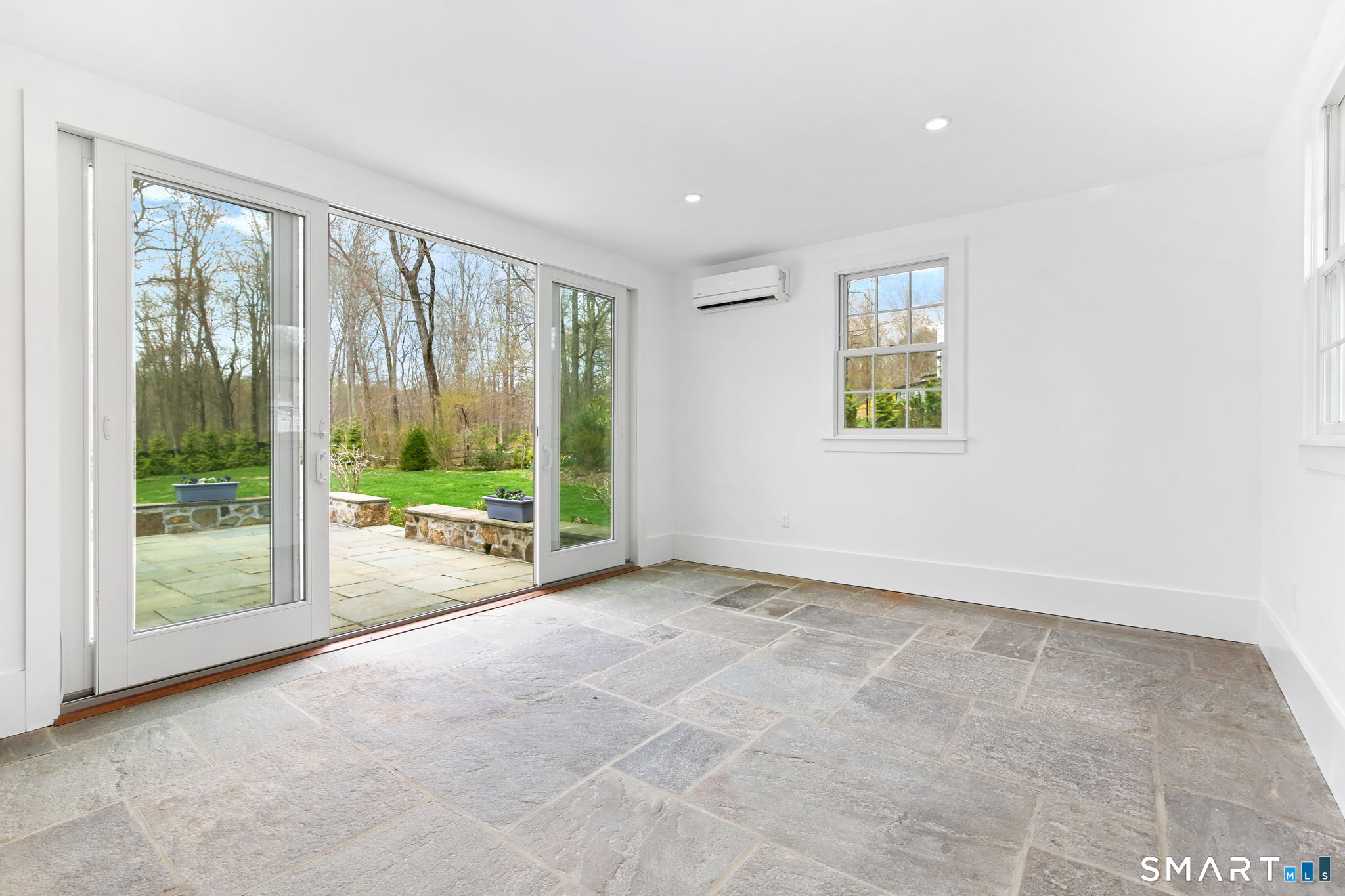 Situated on over two private acres in the highly desirable Mid-Country Greenwich area, this sophisticated 5-bedroom, 3.5-bath brick Colonial is a move-in-ready home designed for comfortable living and effortless entertaining. A welcoming foyer introduces the home's spacious layout, leading to both the living and family rooms. The generous family room, featuring a fireplace, flows seamlessly into the formal dining room. The updated, oversized eat-in kitchen opens to a large deck, creating an ideal setting for indoor-outdoor gatherings. A flexible bonus room-perfect as a sunroom, den, or home office-offers sliding doors that open to the expansive, private backyard. The home includes two primary bedroom suites - one on the main level and another upstairs -offering versatility for guests, multi-generational living, or an au pair. Bright, sun-filled interiors, hardwood floors throughout, and a fully finished basement add to the home's comfort and appeal. Additional features include a three-car garage, beautifully updated bathrooms, a whole-house generator, and a fully fenced backyard. Just minutes from the amenities of Greenwich, this exceptional property offers a rare blend of privacy and convenience.