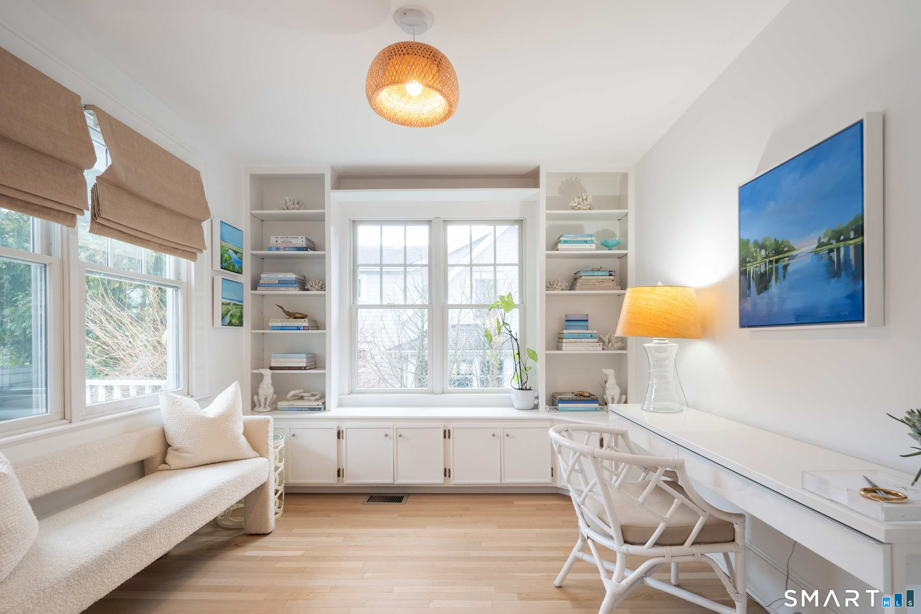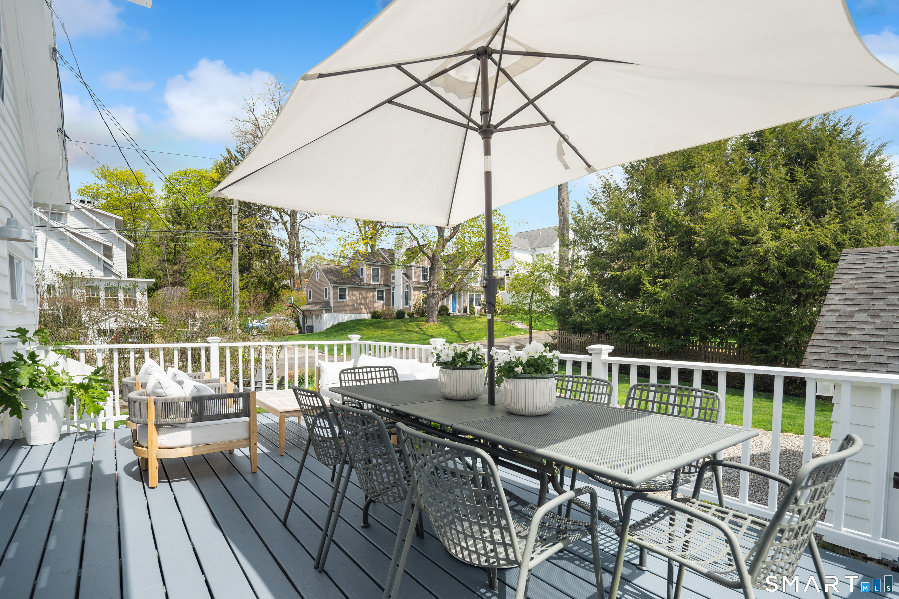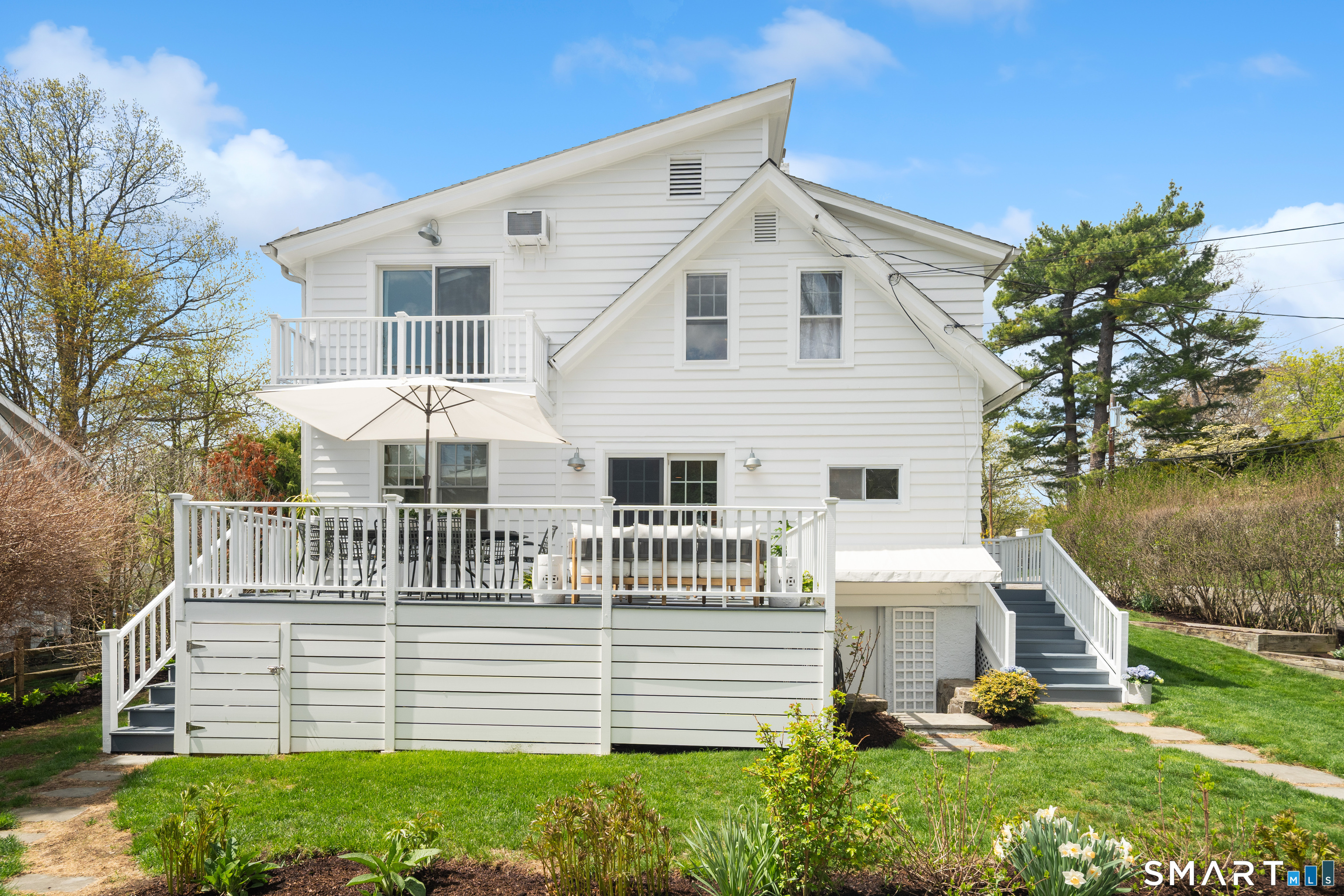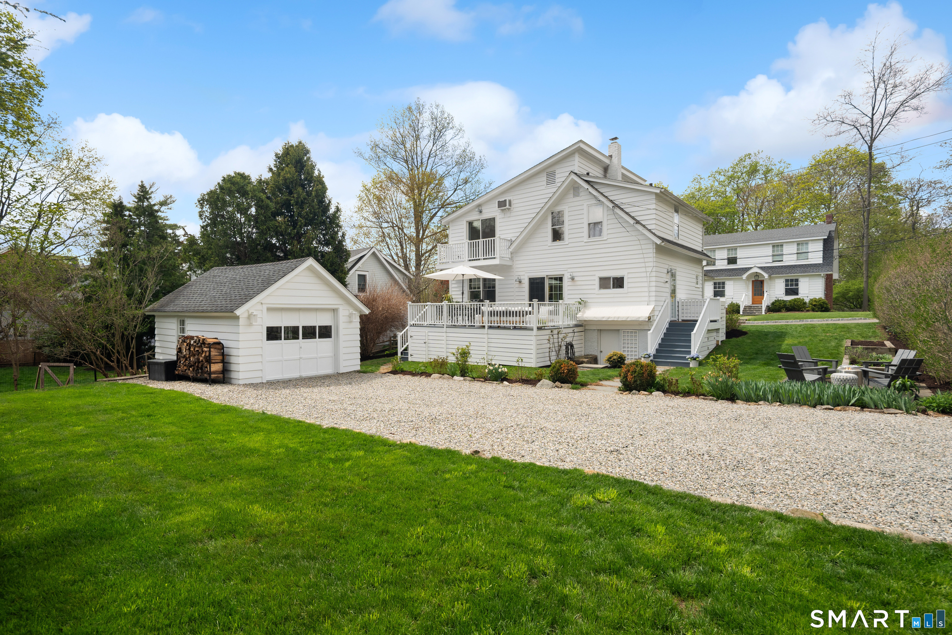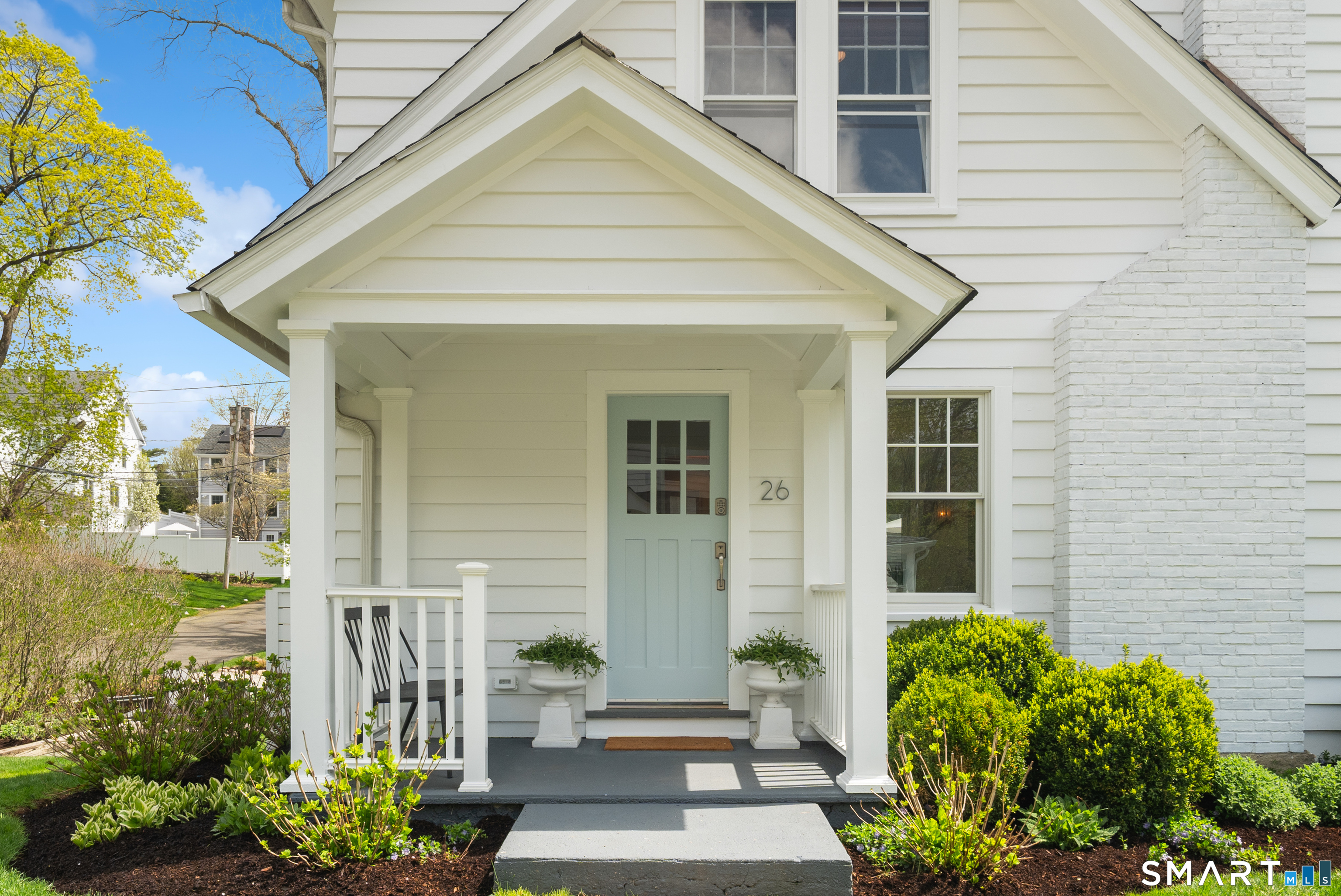 26 Flicker Lane sits on a sunny corner lot on one of Rowayton's most popular streets. Step inside this charming Farmhouse Colonial and be prepared to be wowed. Filled with natural light, the main floor boasts a lovely fireplace with a sitting area, an open family room, an updated kitchen with new appliances, and a dining area with a custom-built-in banquet. In addition, there is a separate office that doubles as a guest room or library, and a large deck off the dining area provides incredible additional space. Upstairs, the Primary bedroom has a new walk-in closet, an updated ensuite bathroom and a hidden slide-out for working out. The two additional family bedrooms have custom closets and drawers. Outside, enjoy the new stone patio, perfect for a night by the firepit. With expansion potential and a separate garage, this home offers endless possibilities. There are so many upgrades inside and out, too numerous to list here; you simply don't want to miss this one! Ideally located just a short walk to Rowayton's shops and restaurants, Pinkney Park, the riverfront and Bayley Beach.