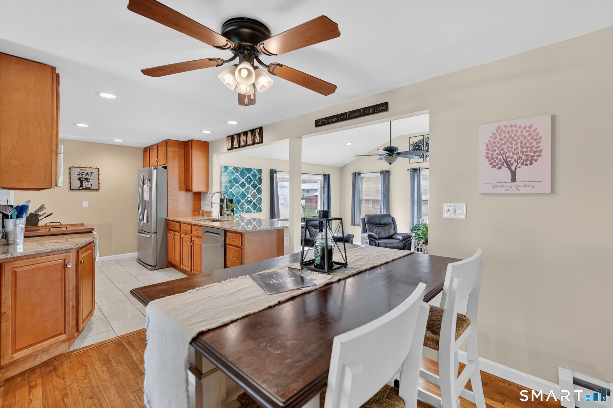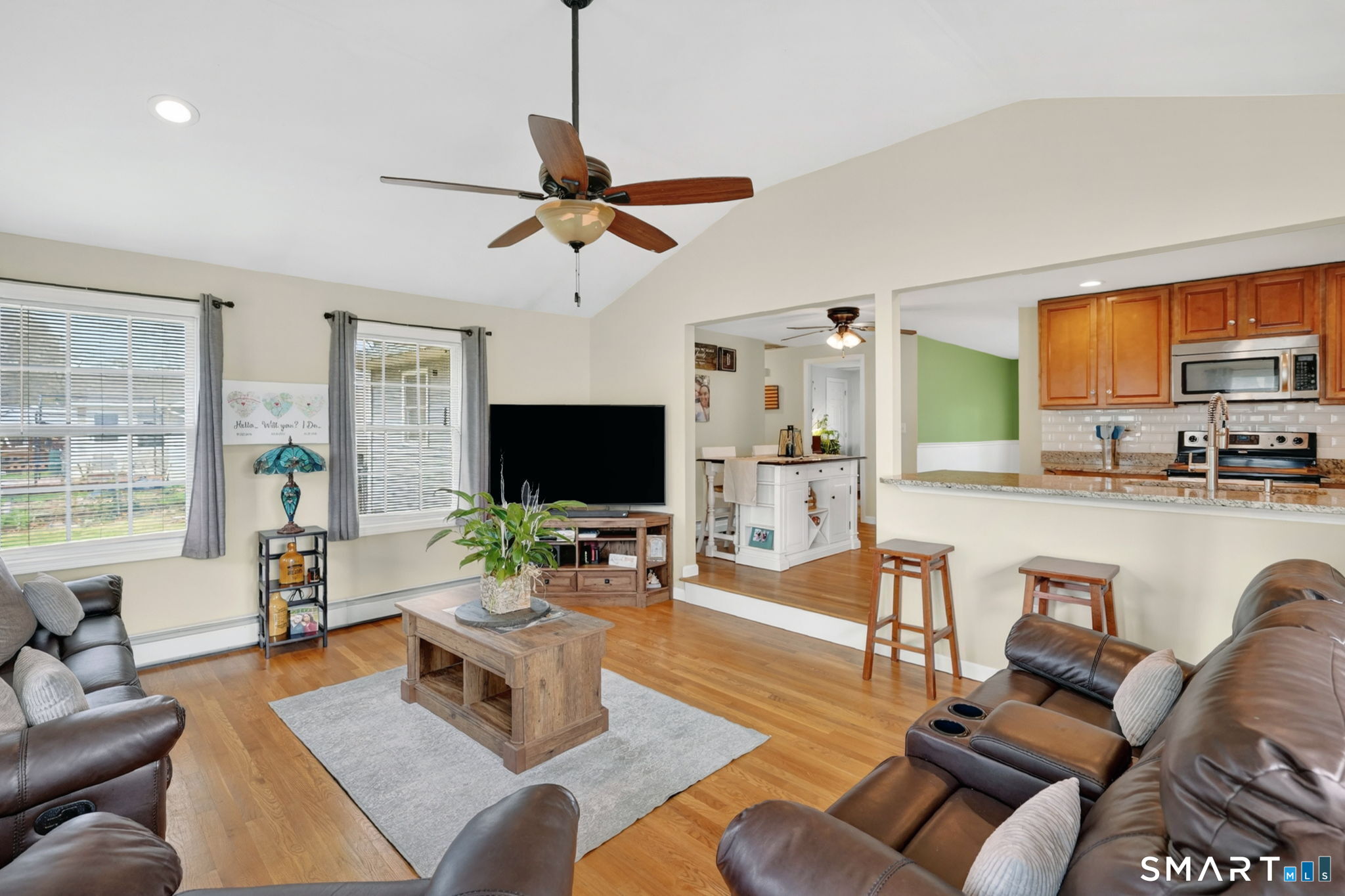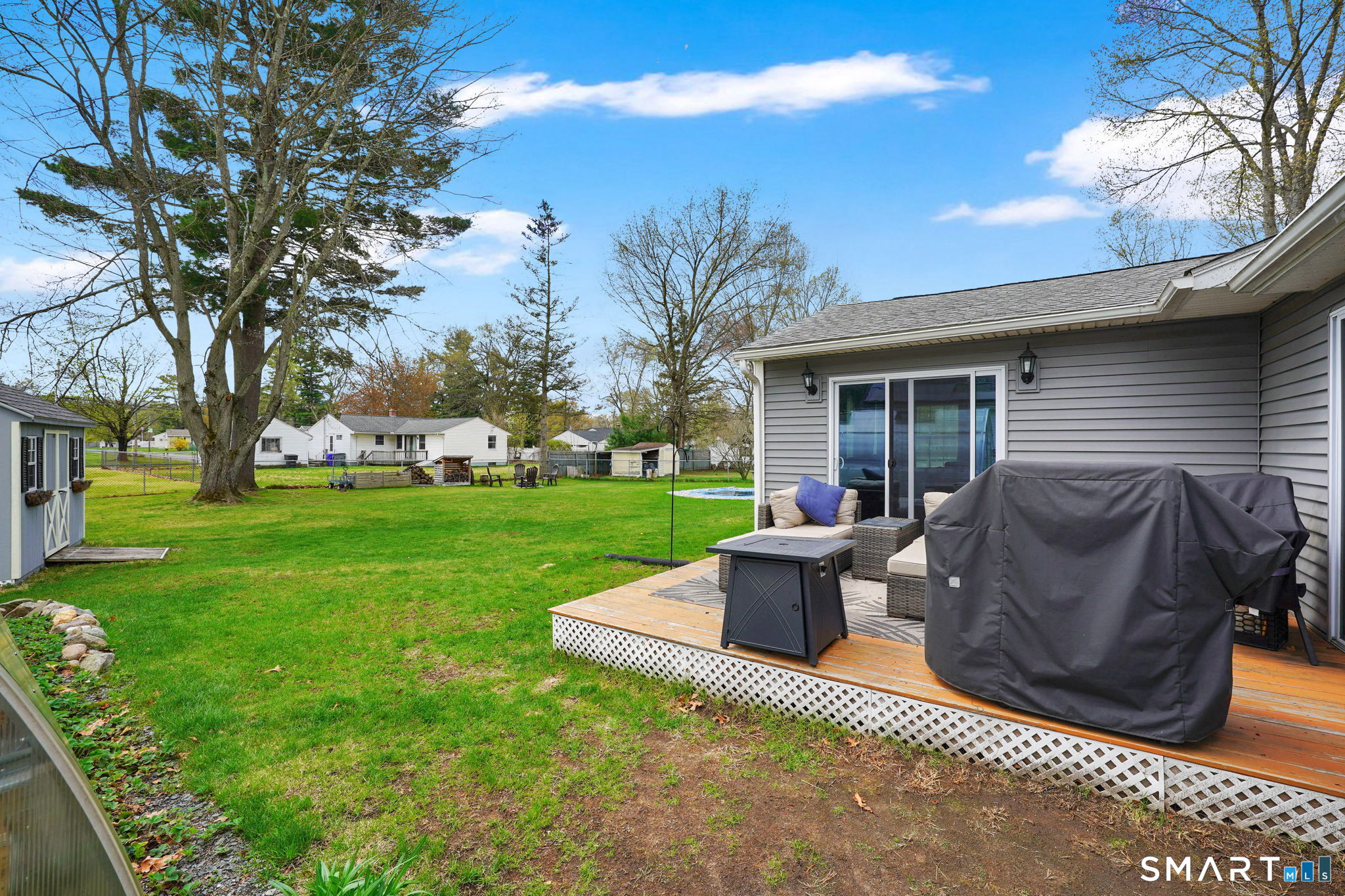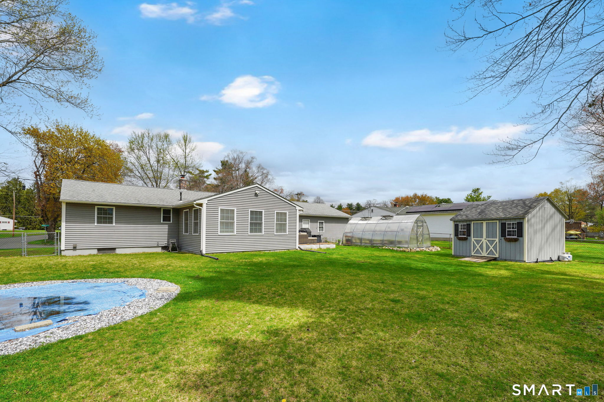 Beautifully updated ranch-style home offering the perfect blend of comfort, functionality, and outdoor enjoyment. This 3-bedroom, 1-bath home features hardwood flooring throughout, a true dining room, and a bright living room with vaulted ceilings that create an open, airy feel. The updated kitchen and bathroom provide modern touches while maintaining the home's charm. A standout feature is the heated breezeway connecting to an oversized 2-car garage, with a slider leading directly out to the fully fenced-in backyard. Step outside to enjoy a spacious deck, storage shed, and a gardener's dream greenhouse that will remain for the next owner. The backyard also includes a portable pool setup stored in the basement, ready to be hooked up for summer enjoyment. With thoughtful updates, great indoor flow, and exceptional outdoor space, this home offers something for everyone.