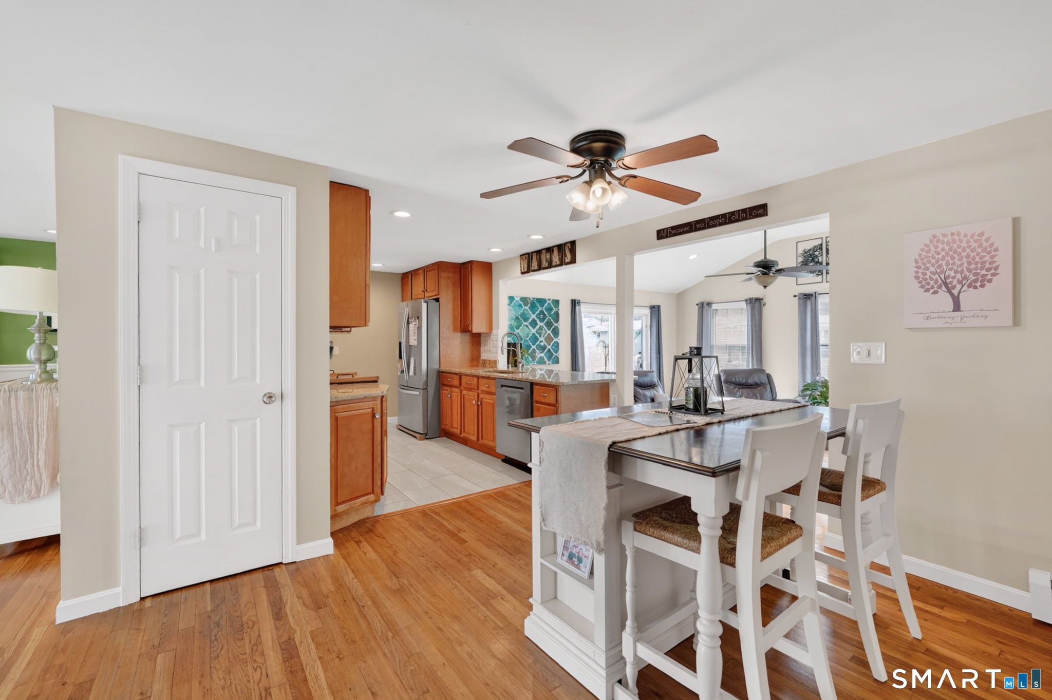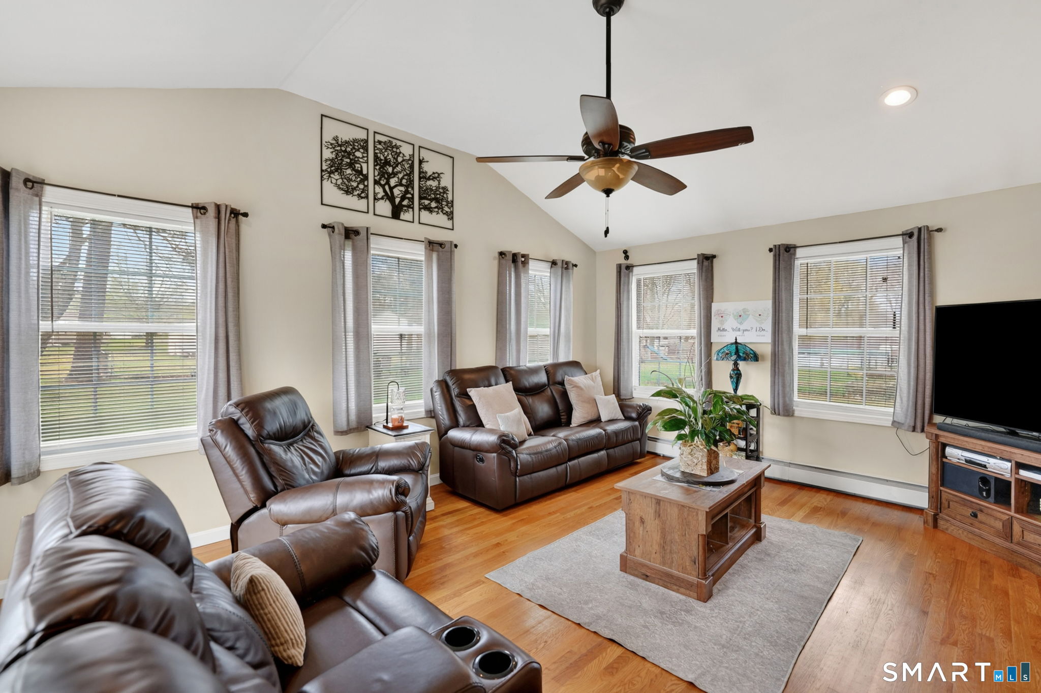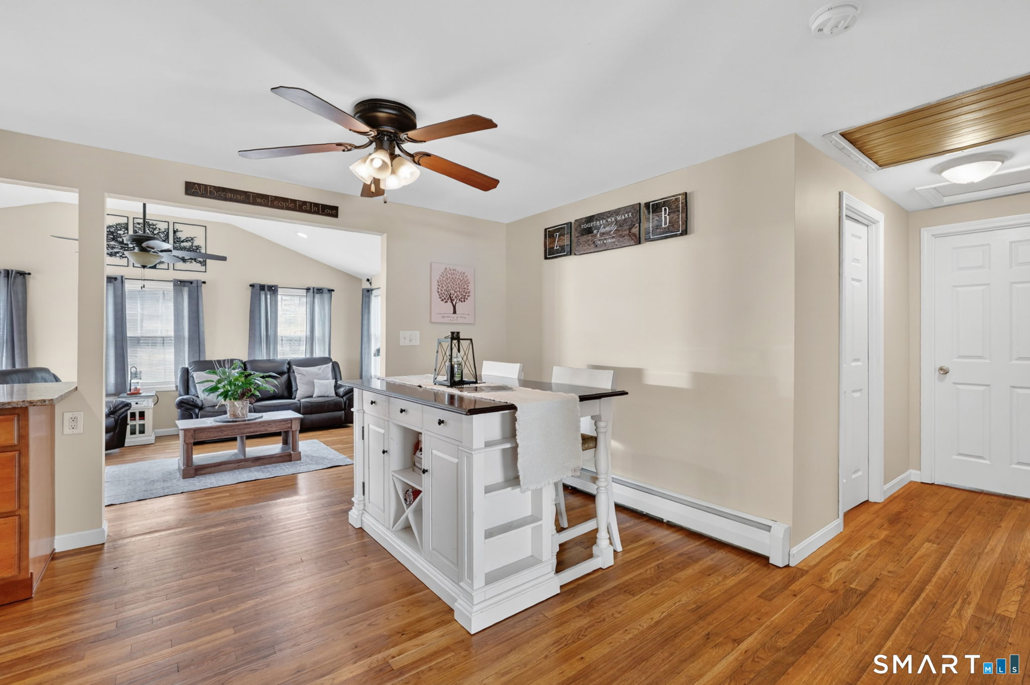 Beautifully updated ranch-style home offering the perfect blend of comfort, functionality, and outdoor enjoyment. This 3-bedroom, 1-bath home features hardwood flooring throughout, a true dining room, and a bright living room with vaulted ceilings that create an open, airy feel. The updated kitchen and bathroom provide modern touches while maintaining the home's charm. A standout feature is the heated breezeway connecting to an oversized 2-car garage, with a slider leading directly out to the fully fenced-in backyard. Step outside to enjoy a spacious deck, storage shed, and a gardener's dream greenhouse that will remain for the next owner. The backyard also includes a portable pool setup stored in the basement, ready to be hooked up for summer enjoyment. With thoughtful updates, great indoor flow, and exceptional outdoor space, this home offers something for everyone.