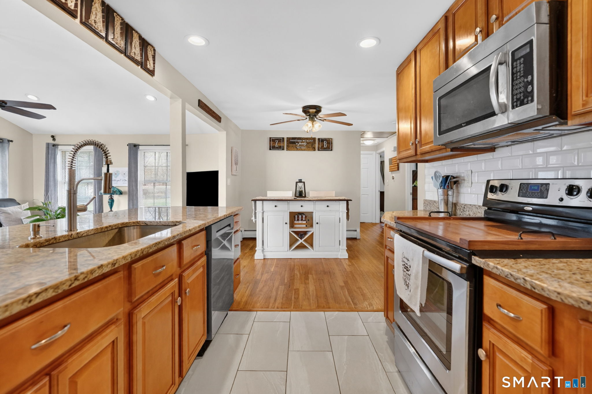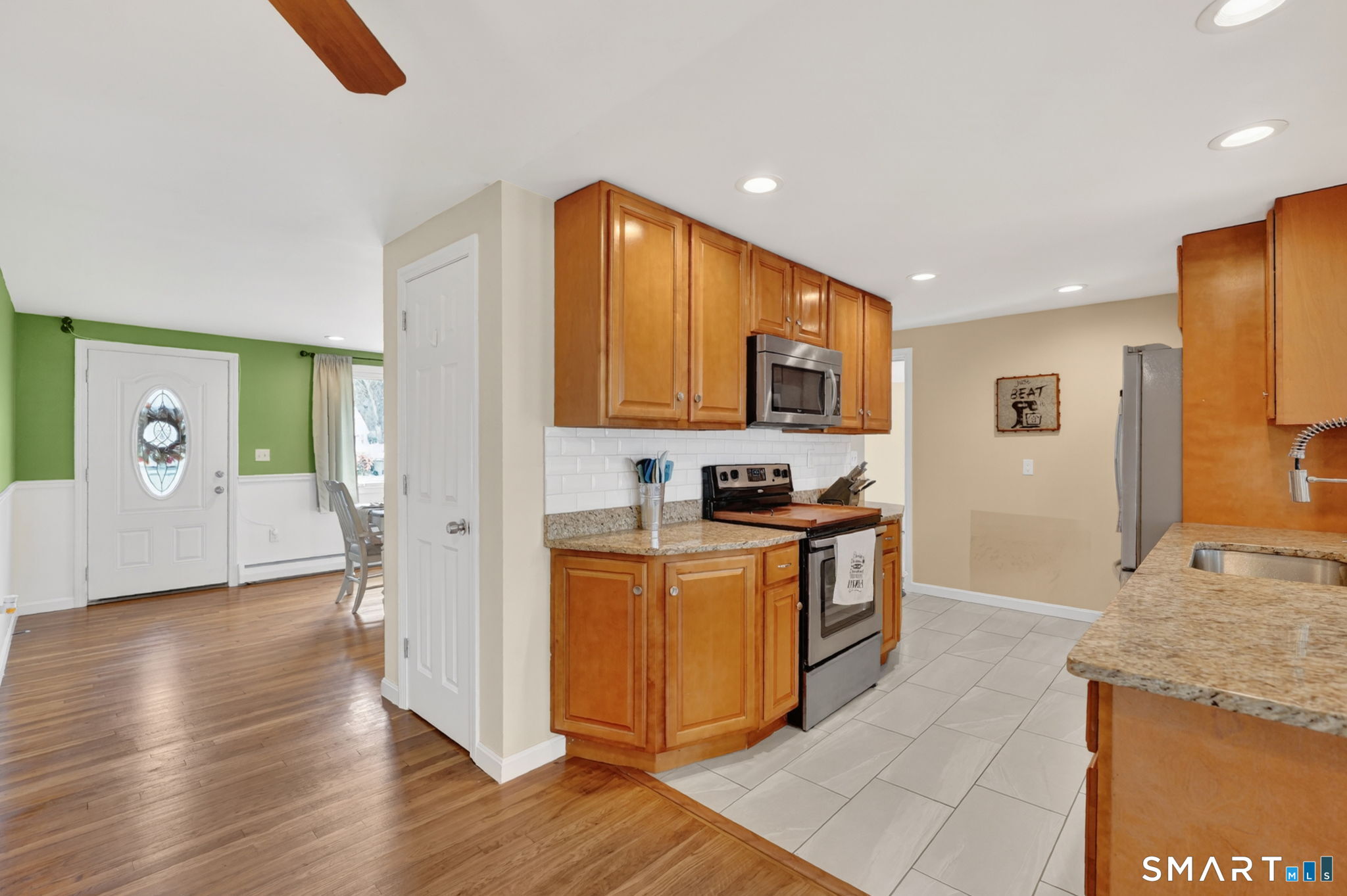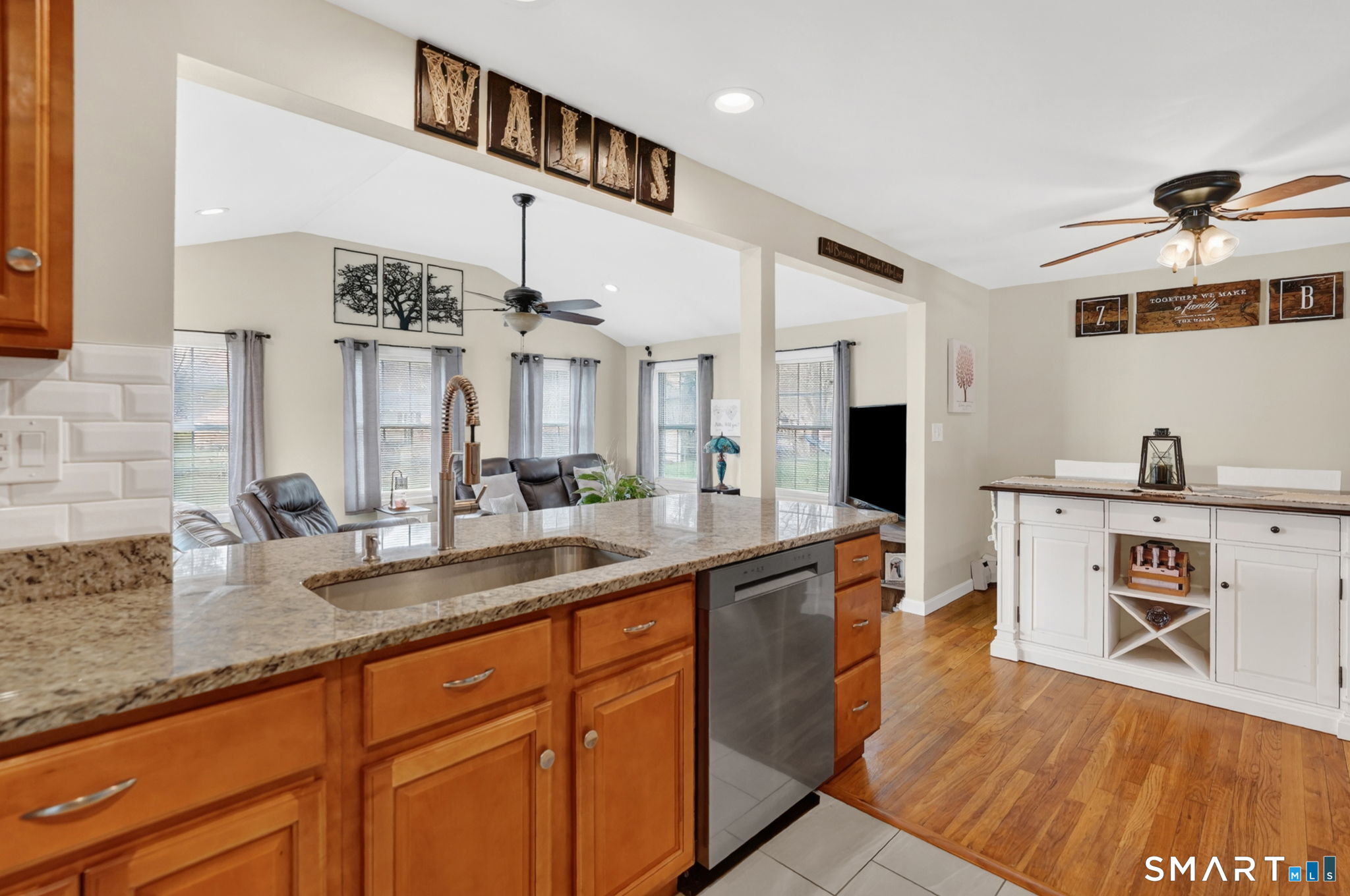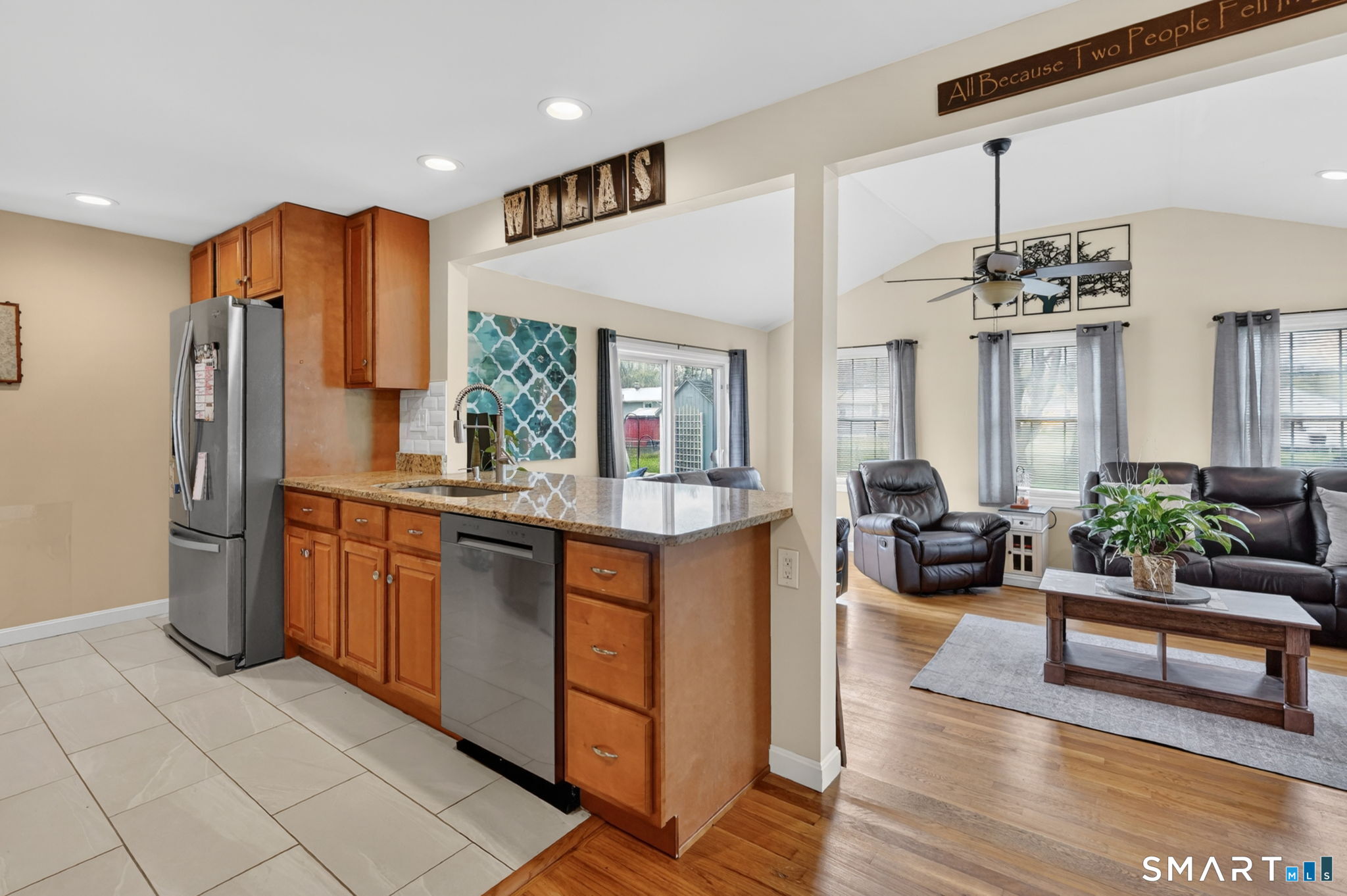 Beautifully updated ranch-style home offering the perfect blend of comfort, functionality, and outdoor enjoyment. This 3-bedroom, 1-bath home features hardwood flooring throughout, a true dining room, and a bright living room with vaulted ceilings that create an open, airy feel. The updated kitchen and bathroom provide modern touches while maintaining the home's charm. A standout feature is the heated breezeway connecting to an oversized 2-car garage, with a slider leading directly out to the fully fenced-in backyard. Step outside to enjoy a spacious deck, storage shed, and a gardener's dream greenhouse that will remain for the next owner. The backyard also includes a portable pool setup stored in the basement, ready to be hooked up for summer enjoyment. With thoughtful updates, great indoor flow, and exceptional outdoor space, this home offers something for everyone.