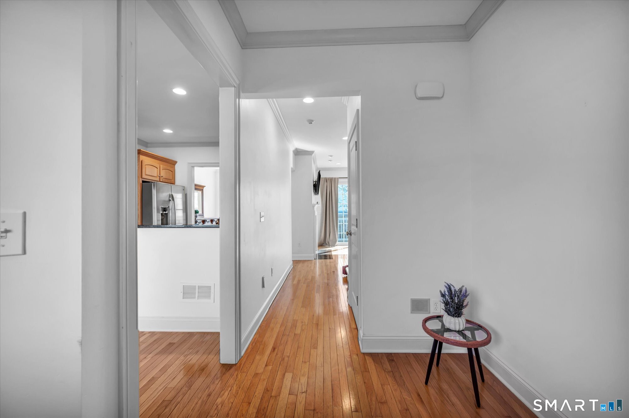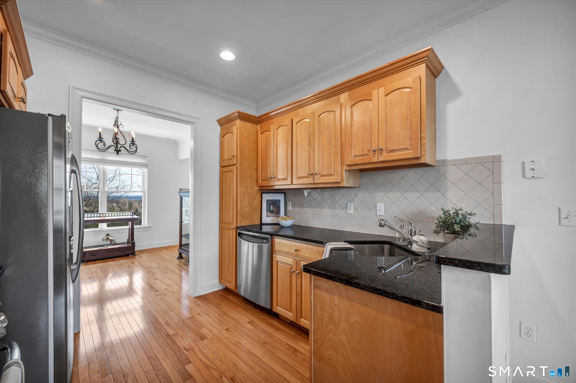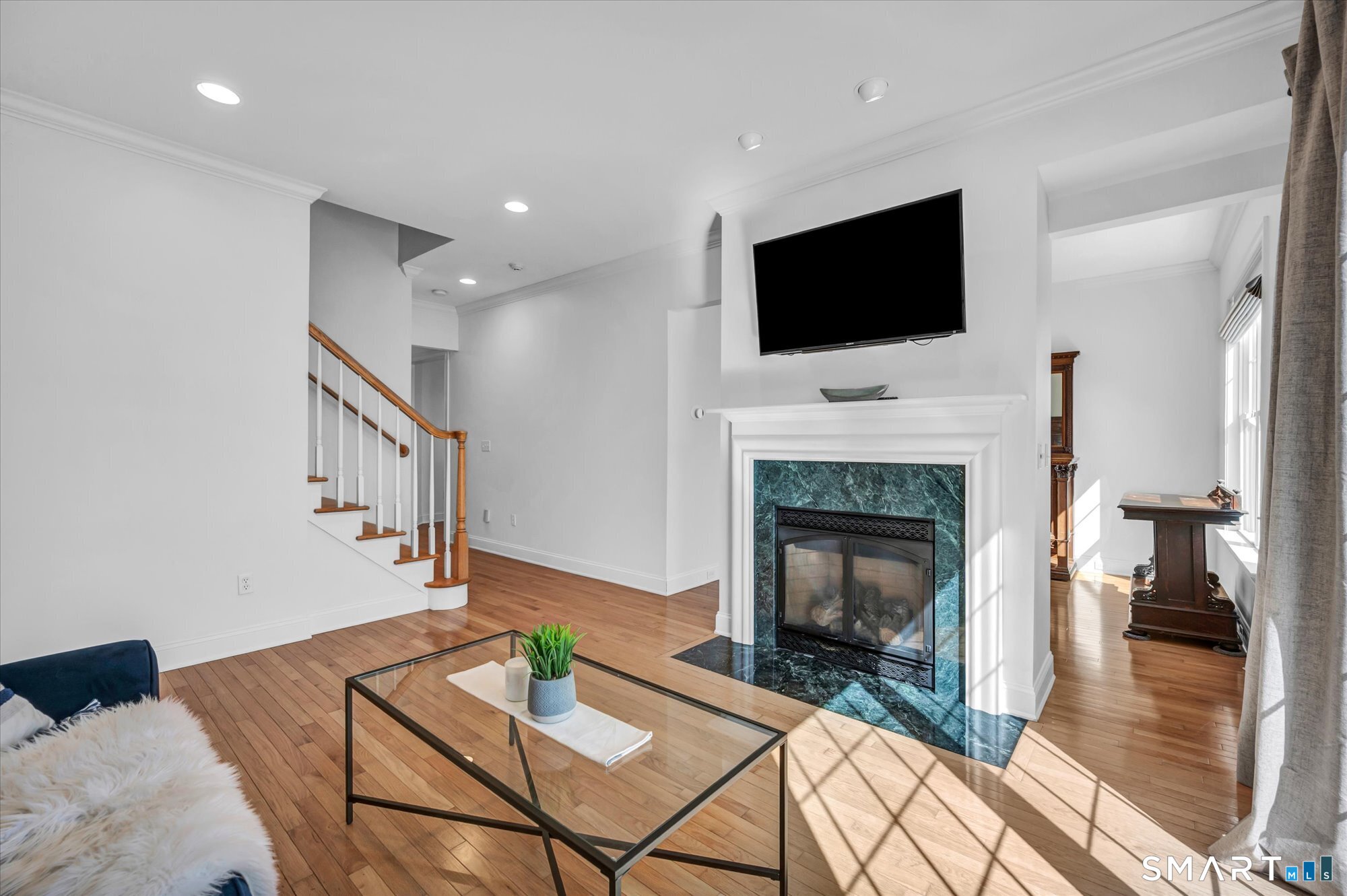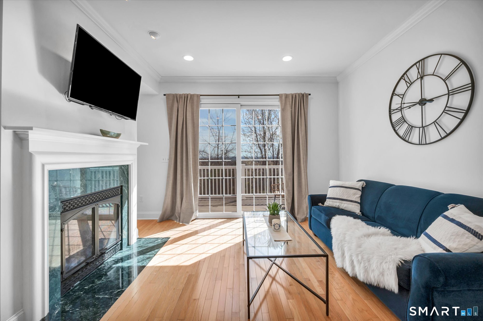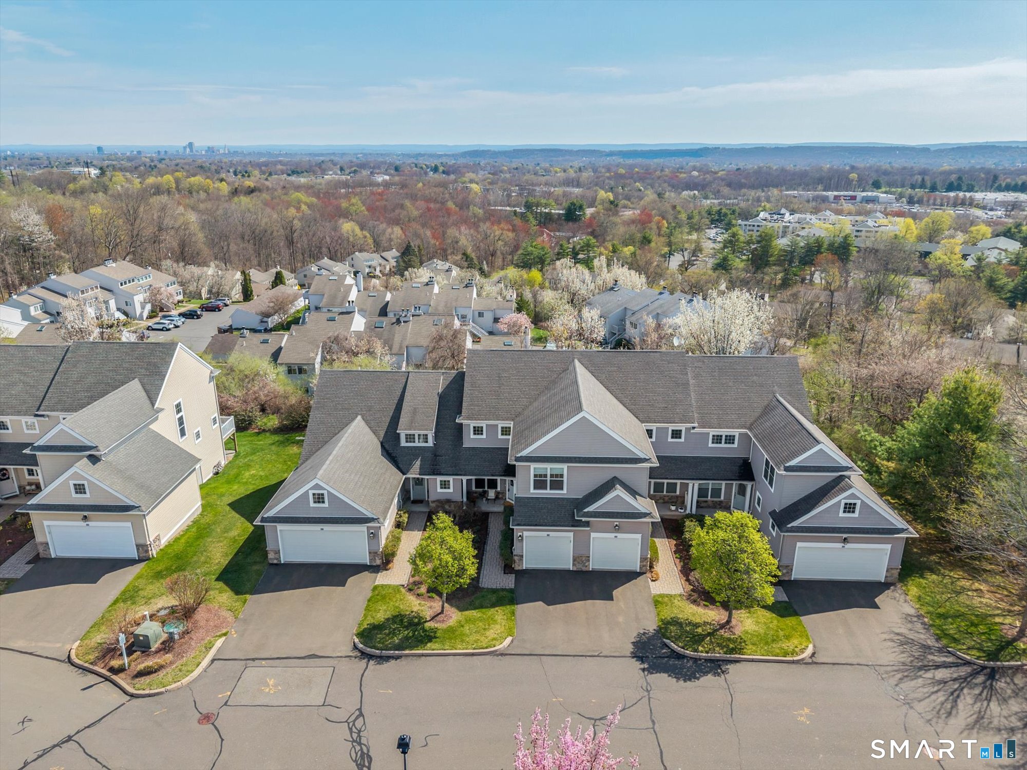 Condo with Stunning Hartford Skyline Views | Farmington/New Britain Line Located in the sought-after Bradford Walk community, this beautifully maintained townhome offers privacy, convenience, and breathtaking skyline views. The bright kitchen features granite countertops and stainless steel appliances, opening to an inviting living and dining area with hardwood floors and a gas fireplace. Sliders lead to a private deck-perfect for morning coffee or evening sunsets. Hardwood floors continue on the upper level loft area and in the two spacious bedrooms, the primary suite includes a walk-in closet and oversized bath with whirlpool tub and separate shower. The second bedroom also has a large walk-in closet. The loft area and second-floor laundry add flexibility and convenience. The finished lower level with full bath provides additional living space ideal for guests or a home office. This home also Includes 1-car garage, central A/C, storage, and guest parking. Enjoy a clubhouse with fitness area and patio. Premier shopping & dining nearby. Minutes to Golf Courses, UCONN Medical Center, Hartford, and West Hartford Center.
