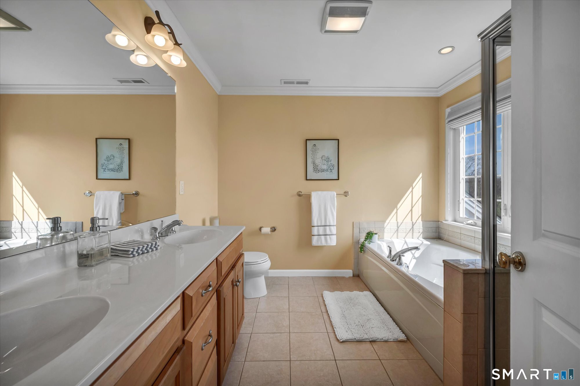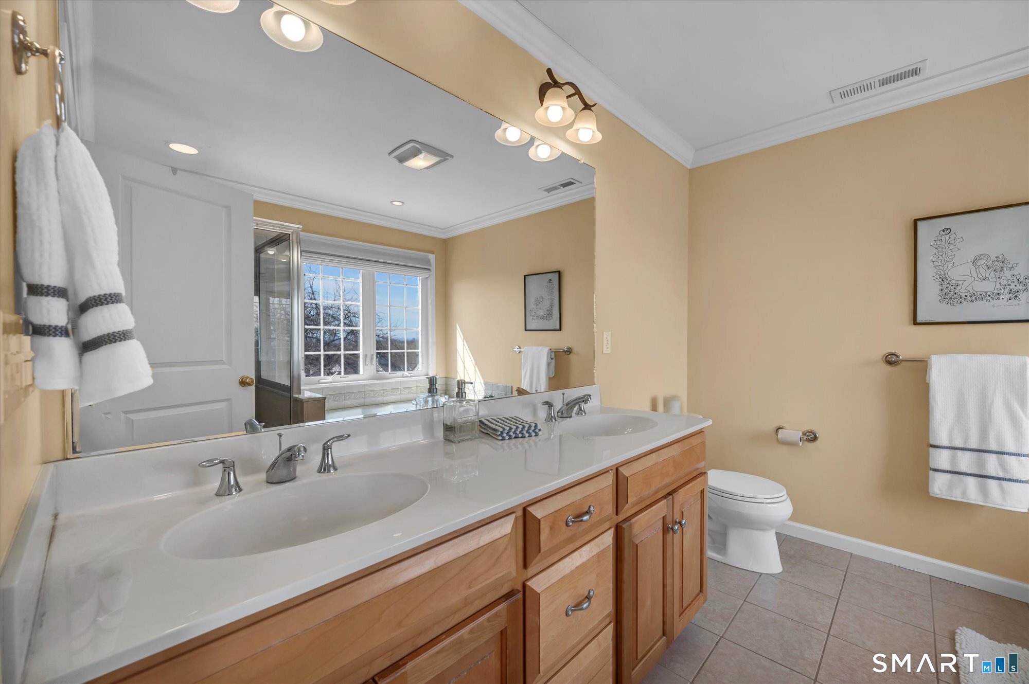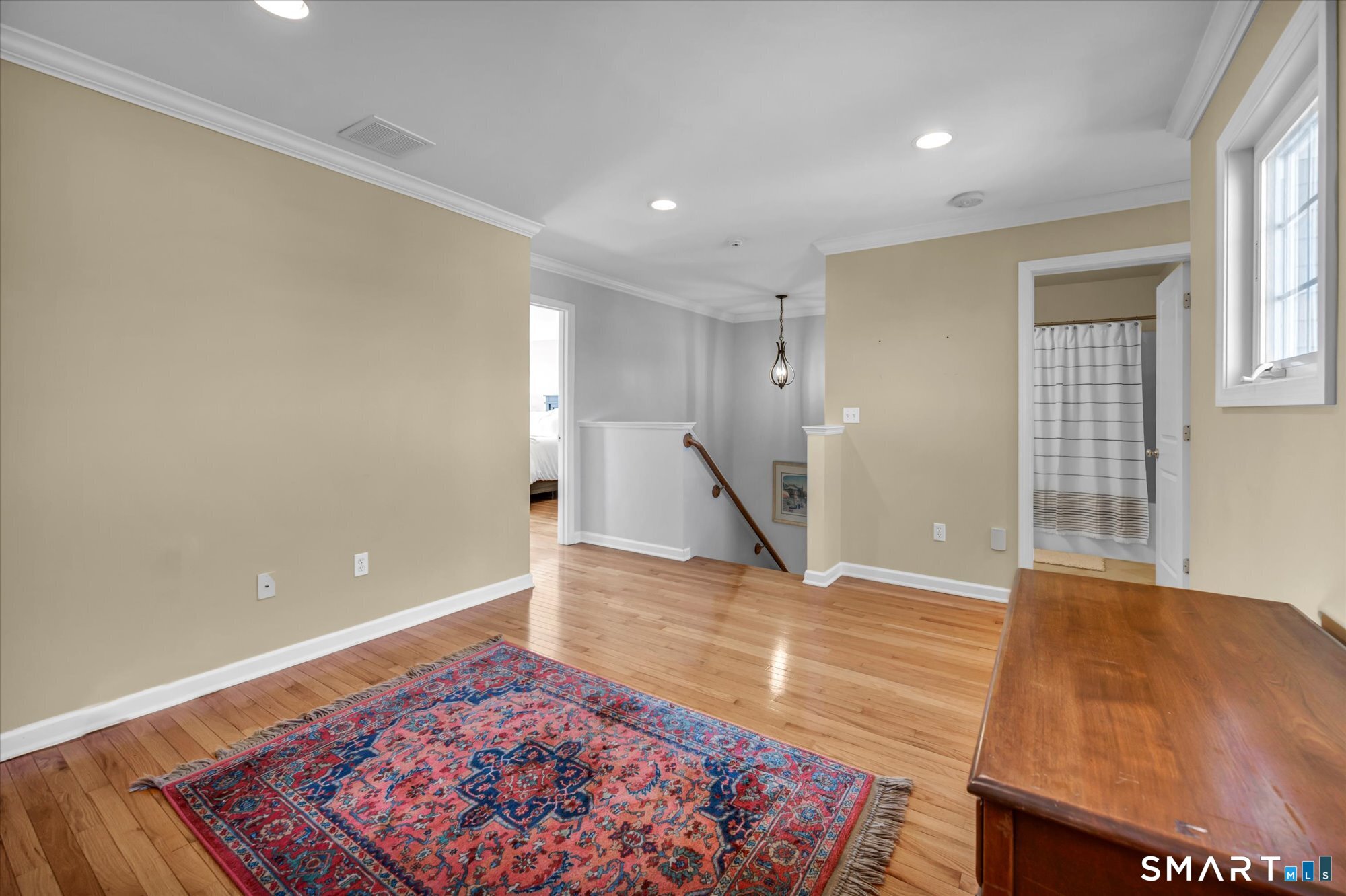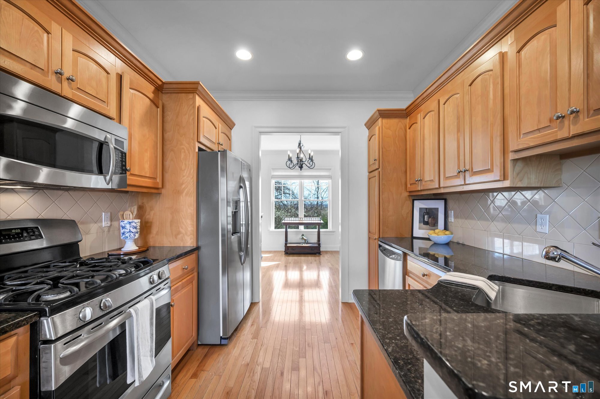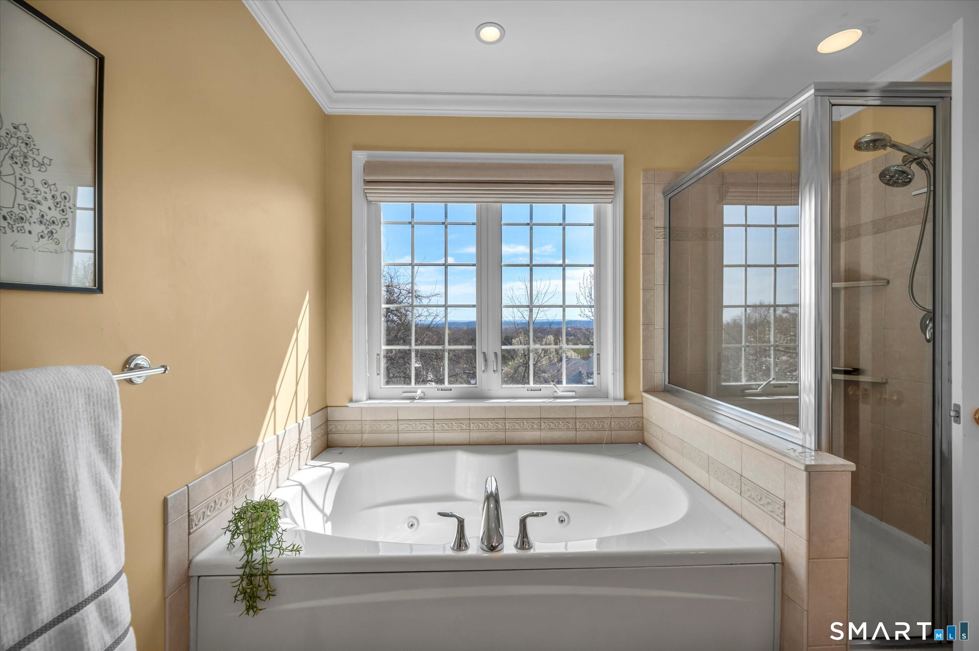 Condo with Stunning Hartford Skyline Views | Farmington/New Britain Line Located in the sought-after Bradford Walk community, this beautifully maintained townhome offers privacy, convenience, and breathtaking skyline views. The bright kitchen features granite countertops and stainless steel appliances, opening to an inviting living and dining area with hardwood floors and a gas fireplace. Sliders lead to a private deck-perfect for morning coffee or evening sunsets. Hardwood floors continue on the upper level loft area and in the two spacious bedrooms, the primary suite includes a walk-in closet and oversized bath with whirlpool tub and separate shower. The second bedroom also has a large walk-in closet. The loft area and second-floor laundry add flexibility and convenience. The finished lower level with full bath provides additional living space ideal for guests or a home office. This home also Includes 1-car garage, central A/C, storage, and guest parking. Enjoy a clubhouse with fitness area and patio. Premier shopping & dining nearby. Minutes to Golf Courses, UCONN Medical Center, Hartford, and West Hartford Center.