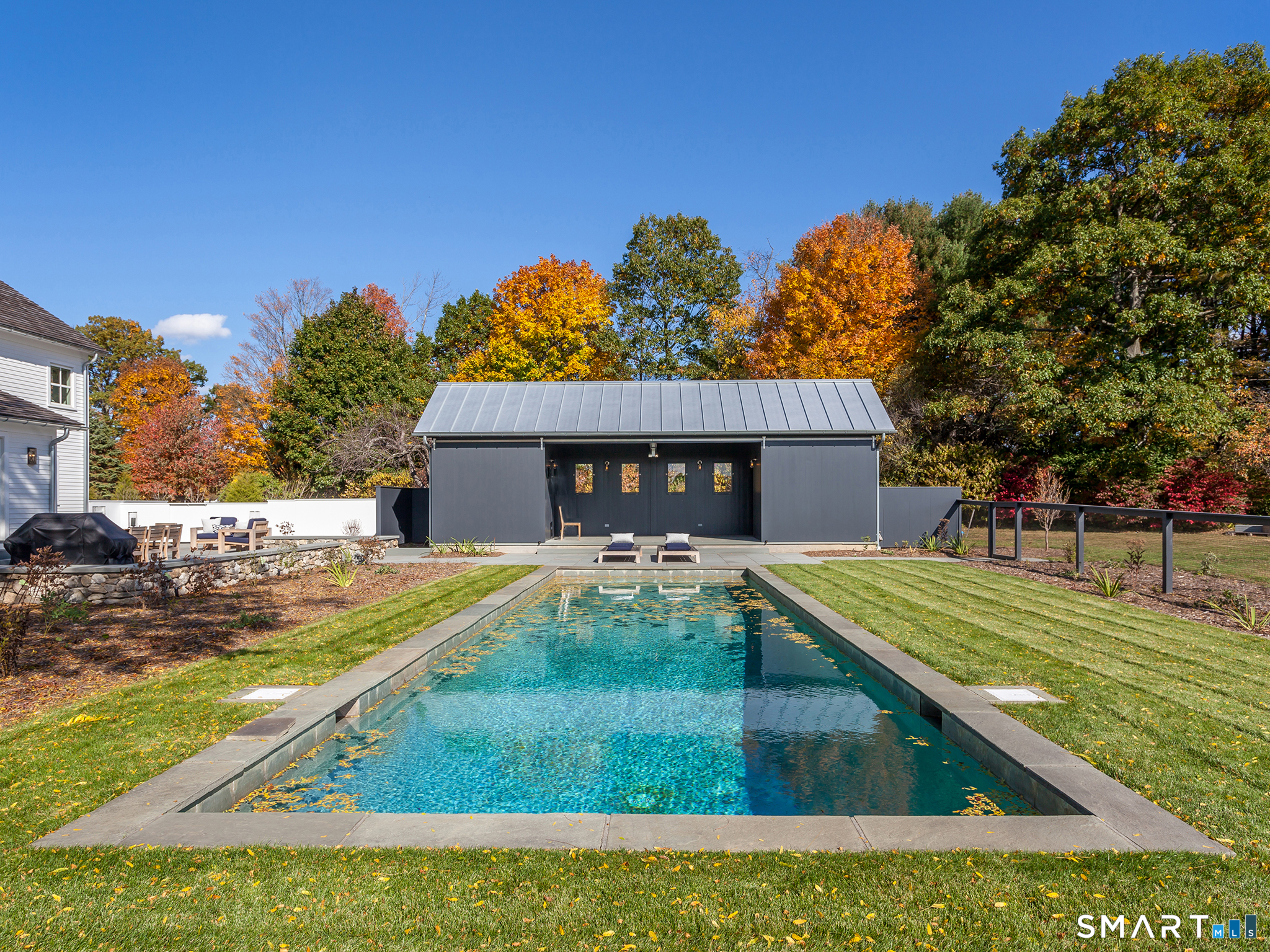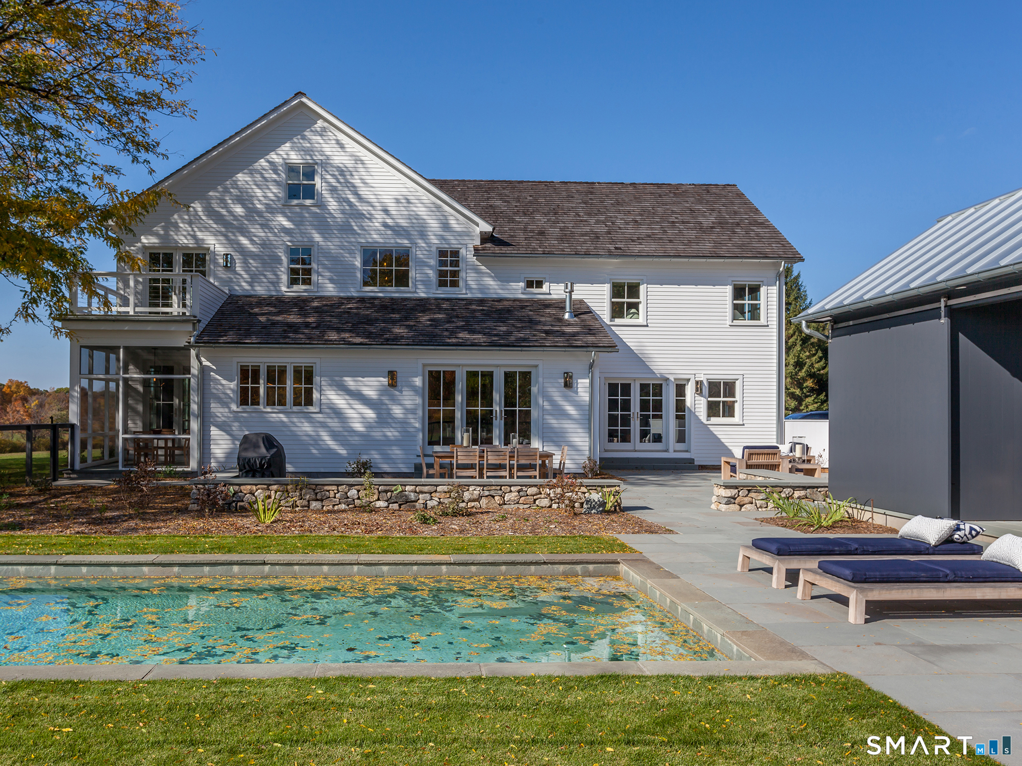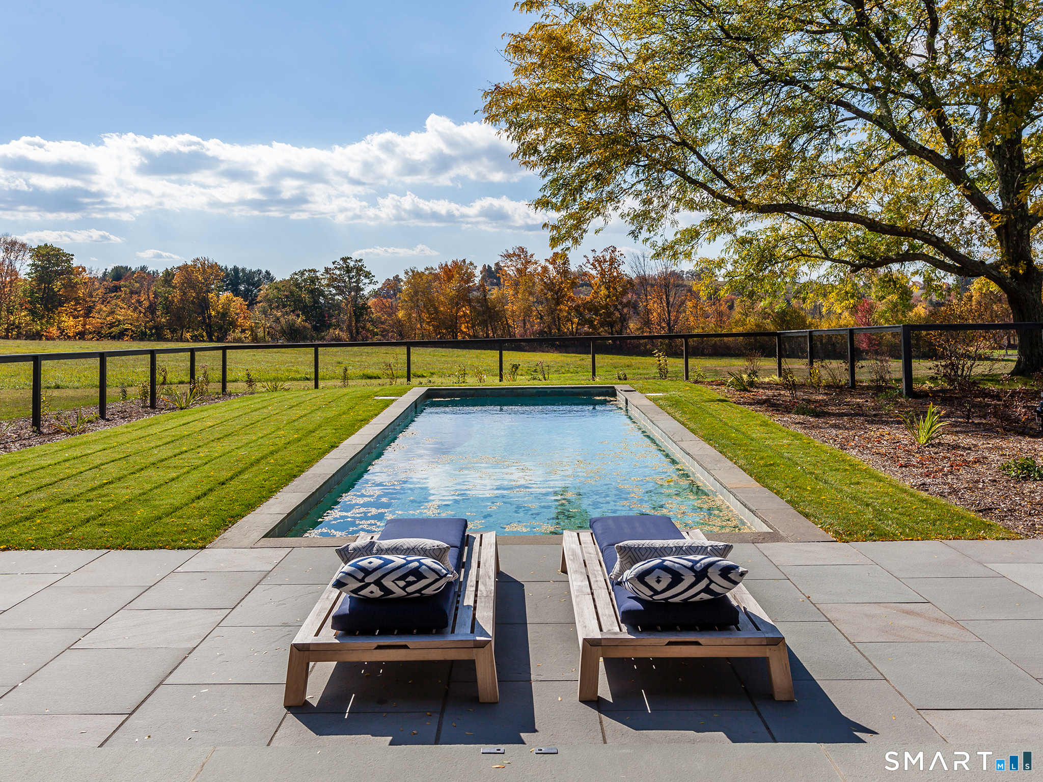 Step into luxury in this immaculate home on Washington's most prestigious streets overlooking farmland and large protected fields. The front perennial gardens have been meticulously updated over the past 5 years to create a seasonal flow of non stop interest and color. They lead to an expansive back lawn which is completely flat for play and shaded by an enormous antique Locust tree. The yard continues around to the pool area with, cabana, outdoor shower and terraces with plentiful space for lounging and entertaining. Inside, the foyer leads to a center hall staircase which the main level rooms circulate around. To the right is the great room, with spectacular views, auto shades, fireplace and screened porch. Then onto the gourmet kitchen with large island, butler's pantry, bar, and breakfast nook with gas fireplace. Continue to the media room/office which has a full bath and can be used as a main floor primary or flexible 4th or 5th bedroom. The glamorous powder room, mudroom and 2 car garage complete this level. Upstairs hosts a primary suite which is currently used with an attached office, his/hers baths, walk out deck and multiple closets. However, the office and its bath can easily be converted to a 4th upstairs bedroom. This level is completed by 2 ensuite guest rooms and the main laundry. The lower level features a gym and second laundry room and plenty of storage.
