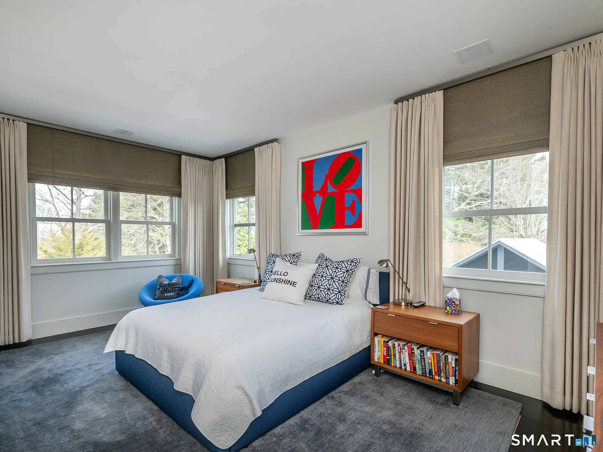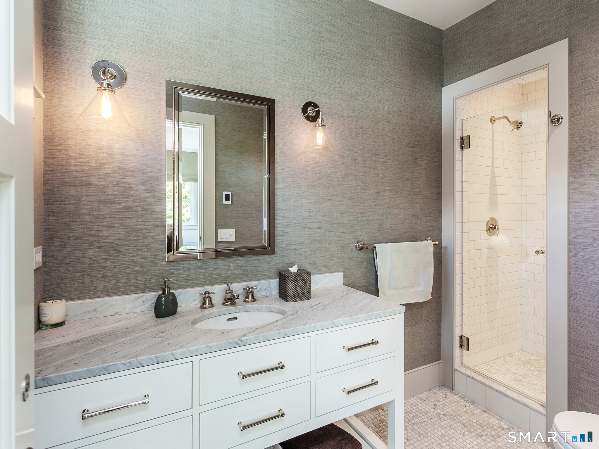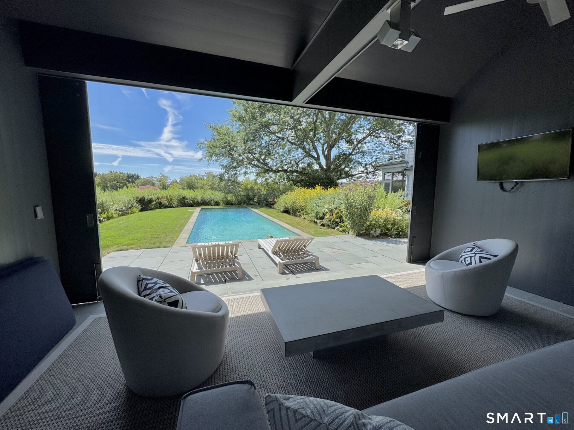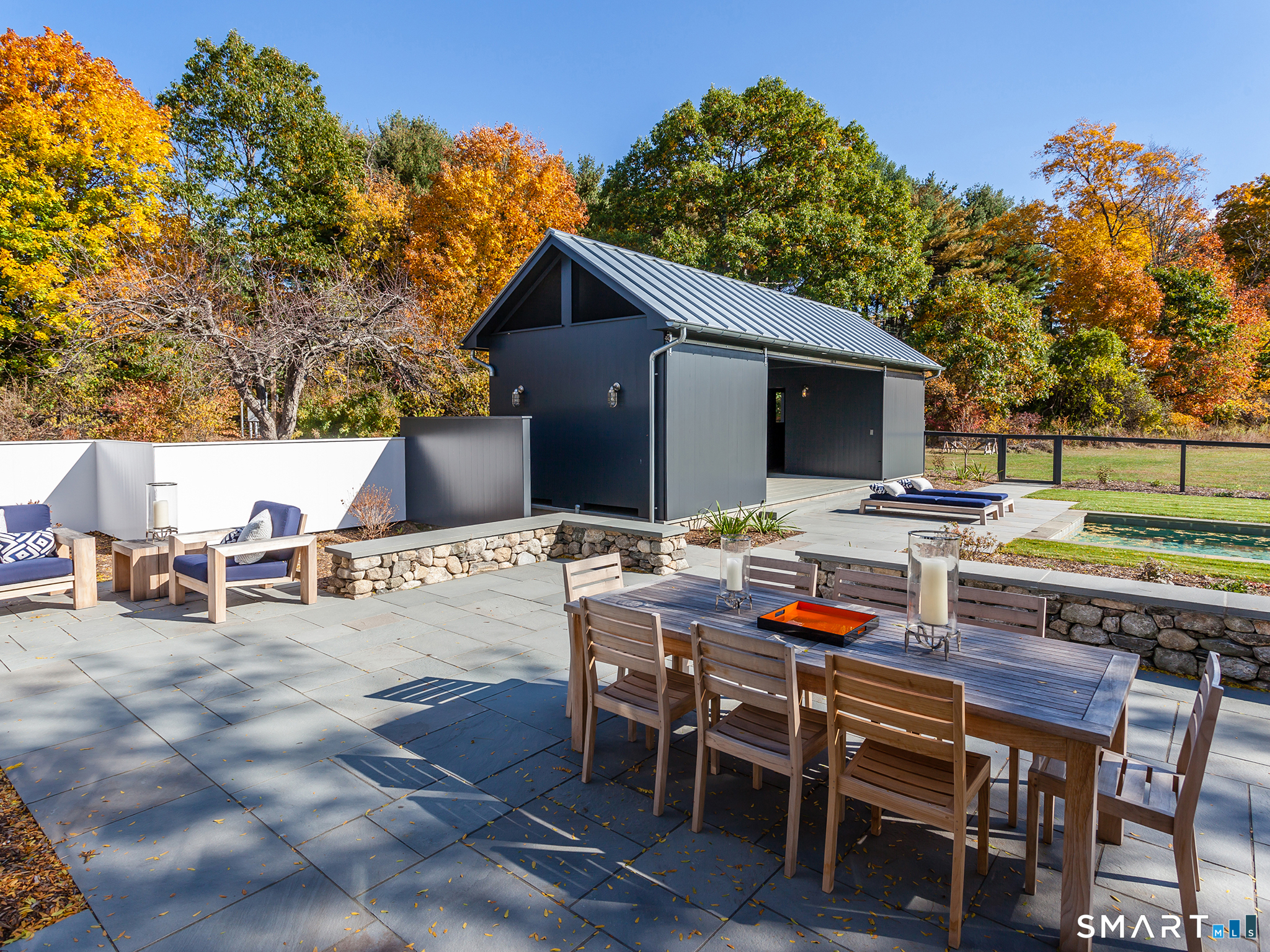 Step into luxury in this immaculate home on Washington's most prestigious streets overlooking farmland and large protected fields. The front perennial gardens have been meticulously updated over the past 5 years to create a seasonal flow of non stop interest and color. They lead to an expansive back lawn which is completely flat for play and shaded by an enormous antique Locust tree. The yard continues around to the pool area with, cabana, outdoor shower and terraces with plentiful space for lounging and entertaining. Inside, the foyer leads to a center hall staircase which the main level rooms circulate around. To the right is the great room, with spectacular views, auto shades, fireplace and screened porch. Then onto the gourmet kitchen with large island, butler's pantry, bar, and breakfast nook with gas fireplace. Continue to the media room/office which has a full bath and can be used as a main floor primary or flexible 4th or 5th bedroom. The glamorous powder room, mudroom and 2 car garage complete this level. Upstairs hosts a primary suite which is currently used with an attached office, his/hers baths, walk out deck and multiple closets. However, the office and its bath can easily be converted to a 4th upstairs bedroom. This level is completed by 2 ensuite guest rooms and the main laundry. The lower level features a gym and second laundry room and plenty of storage.