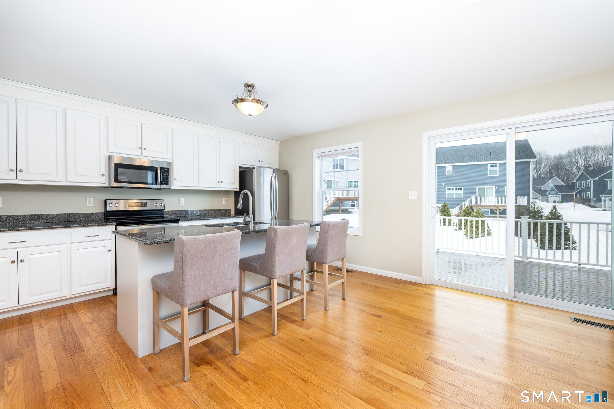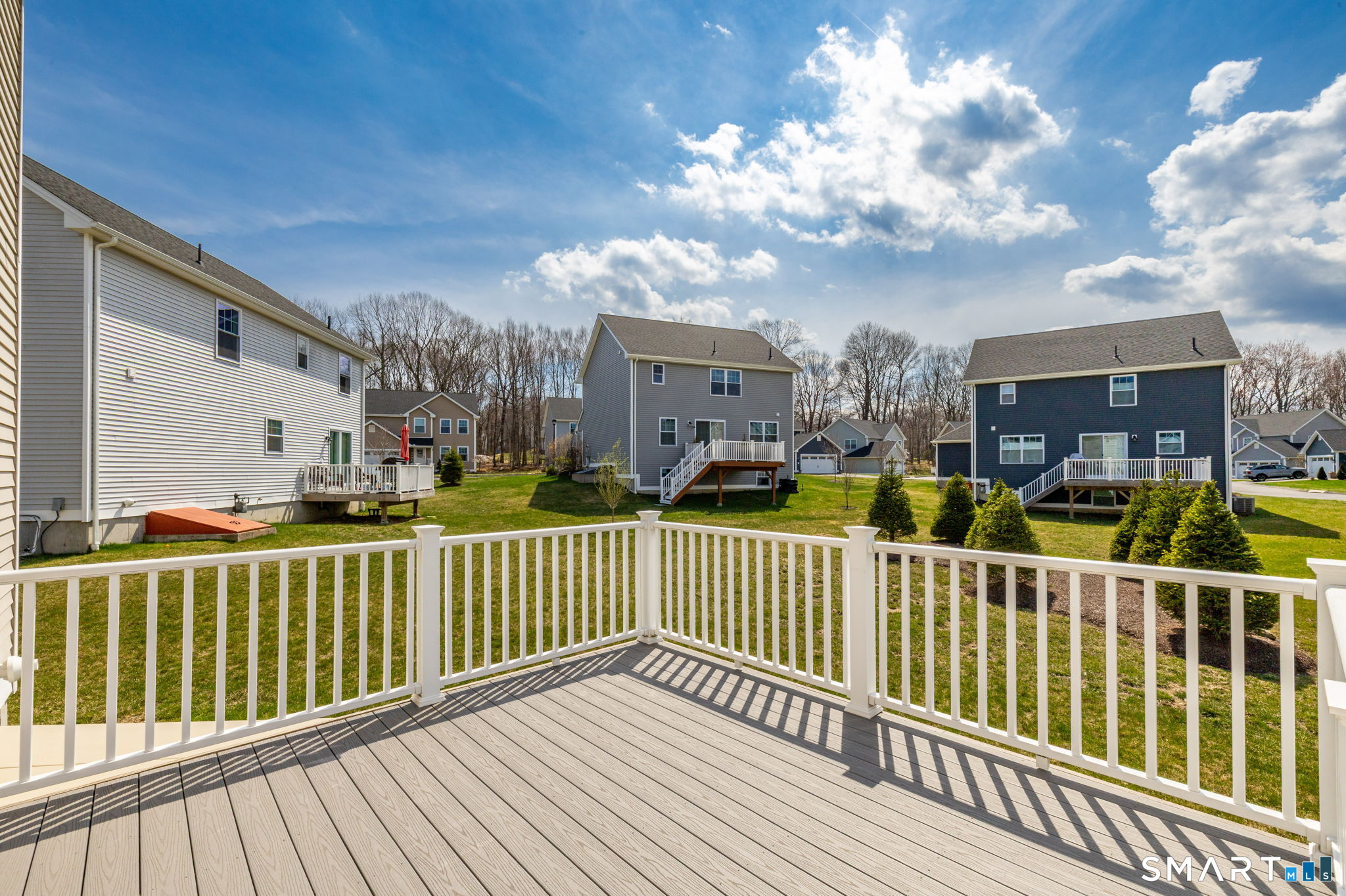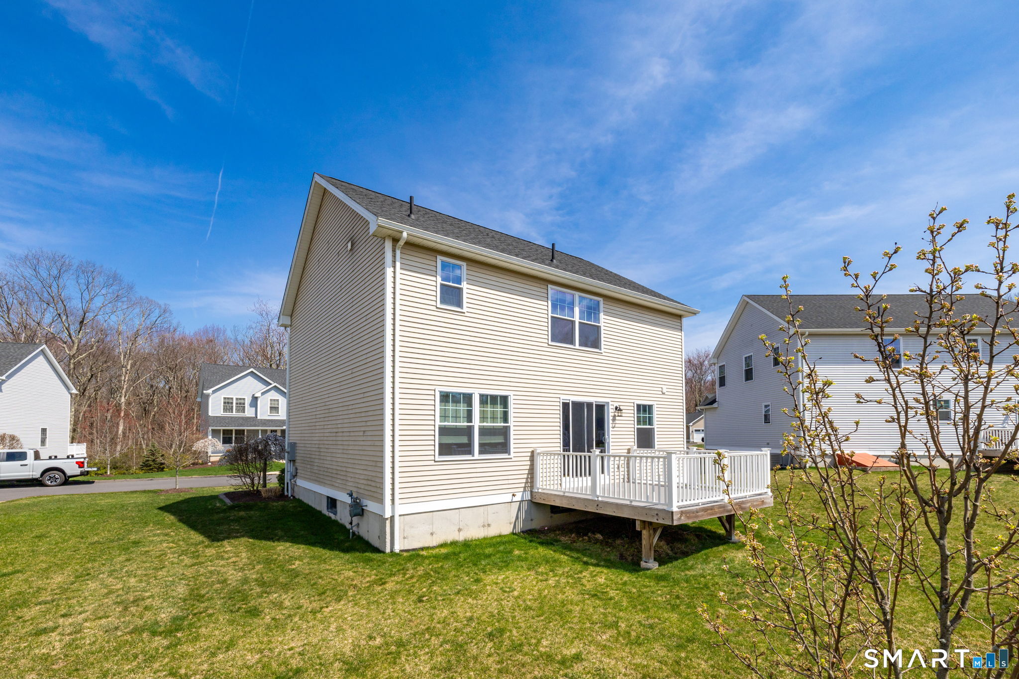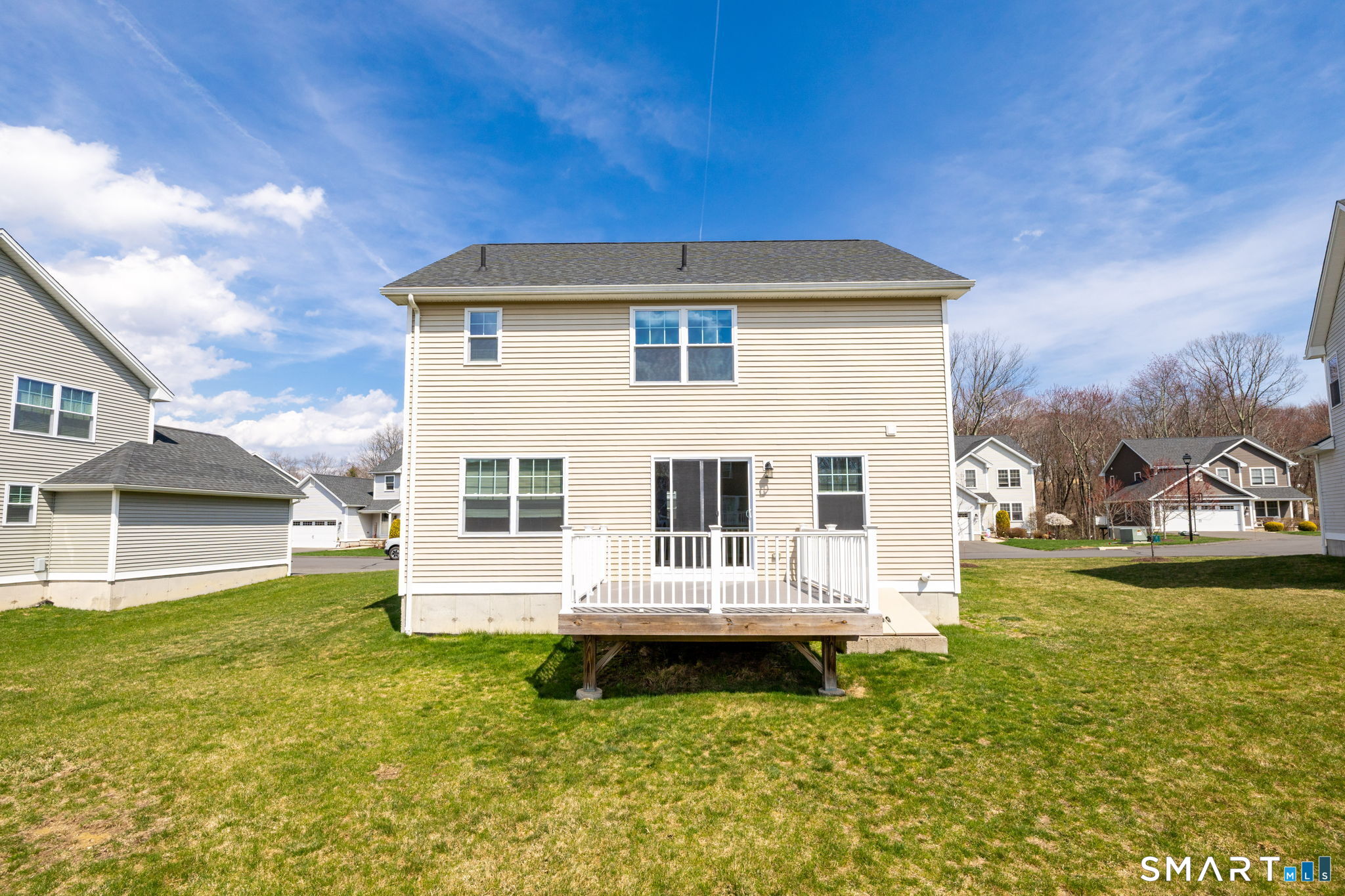 Welcome to this stunning, spacious 3-bedroom, 2.5-bath colonial in the highly desirable Woodshire Homes community-thoughtfully designed for effortless, open-concept living! From the moment you step inside, you'll love the beautiful hardwood floors and the inviting formal dining room just off the entry, perfect for hosting holidays and gatherings.The heart of the home is the expansive living room, which flows seamlessly into the bright, open kitchen-creating a warm and welcoming space for everyday living and entertaining alike. The kitchen shines with stainless steel appliances, granite countertops, and a center island ideal for casual meals, coffee, or conversation. Just off the living room, sliding doors lead to a private deck-your own outdoor escape for relaxing, grilling, or enjoying the fresh air.Upstairs, the spacious primary suite feels like a true retreat, complete with a walk-in closet and a private en-suite bath. Two additional generously sized bedrooms, along with a convenient upstairs laundry room, make daily life incredibly easy and organized. The basement offers excellent additional storage, adding even more practicality to this already impressive home.Even better, this home includes central air and a two-car attached garage. All of this is conveniently located near schools, restaurants, parks, and acres of wooded preserve-an ideal setting to enjoy both comfort and convenience!
