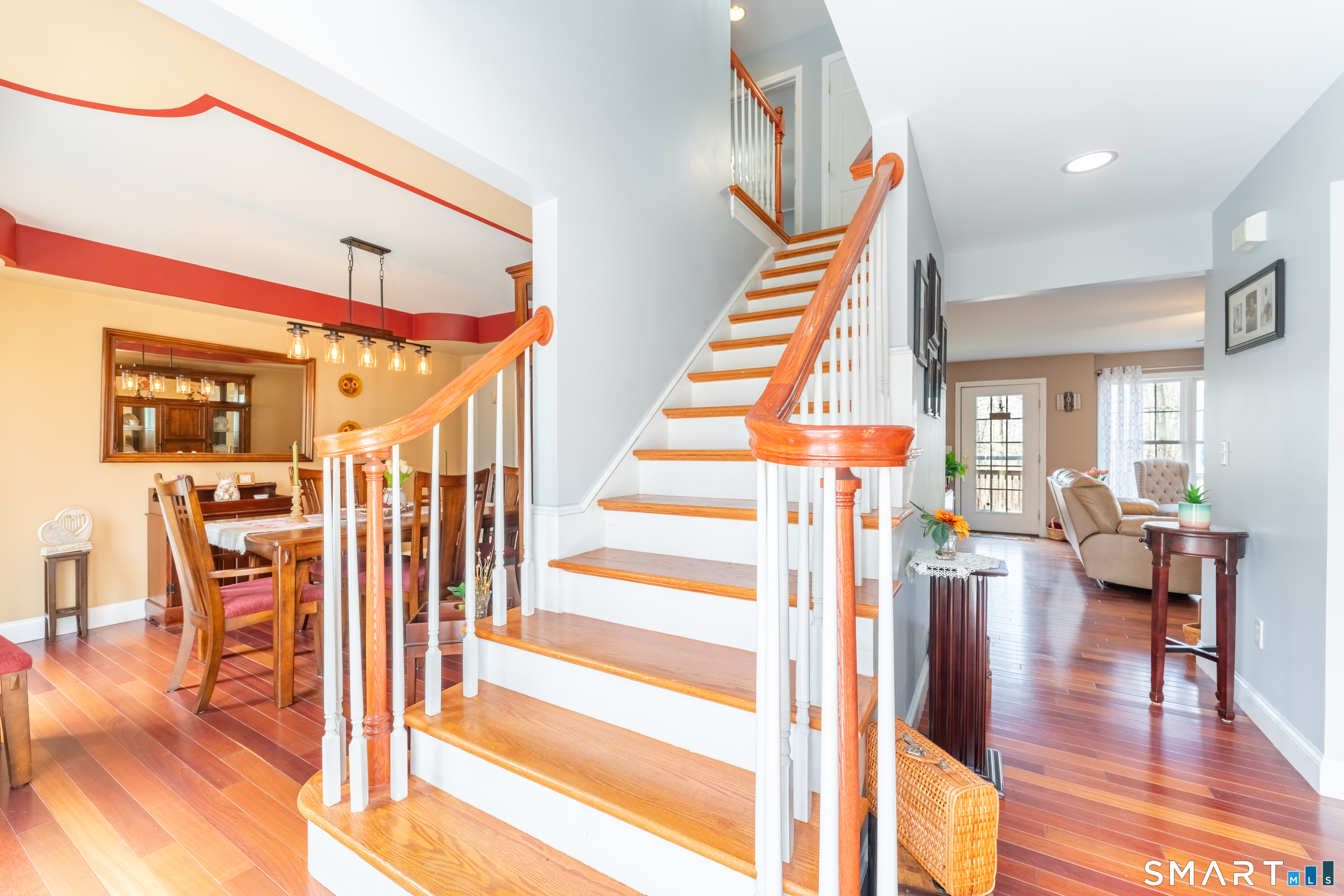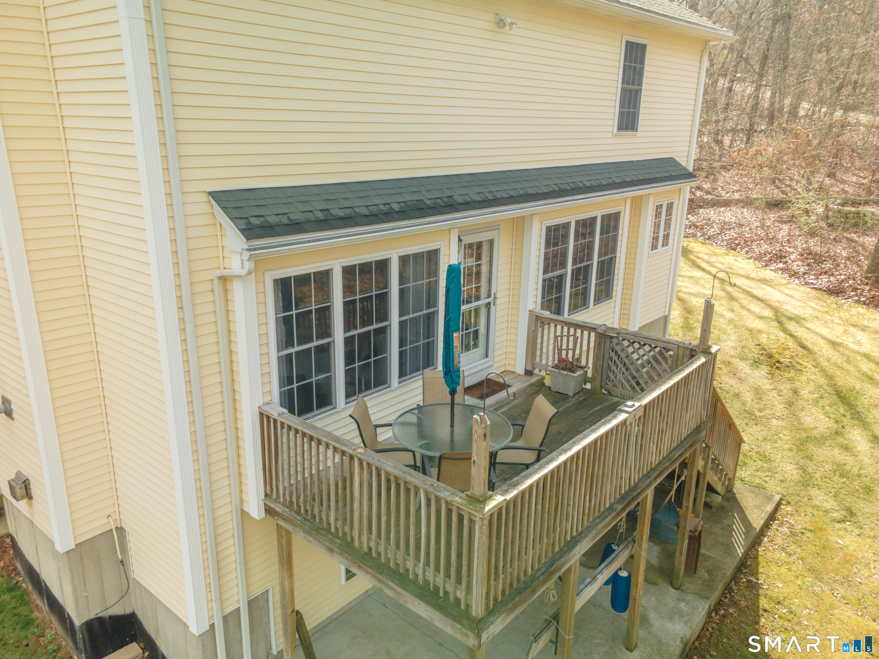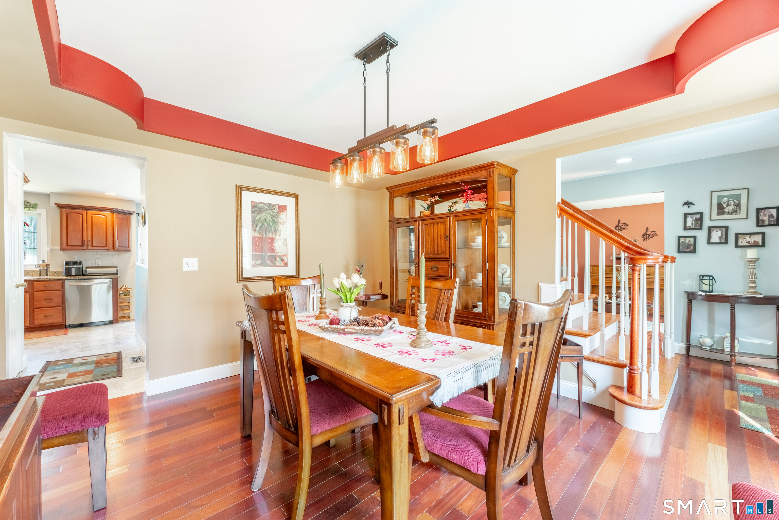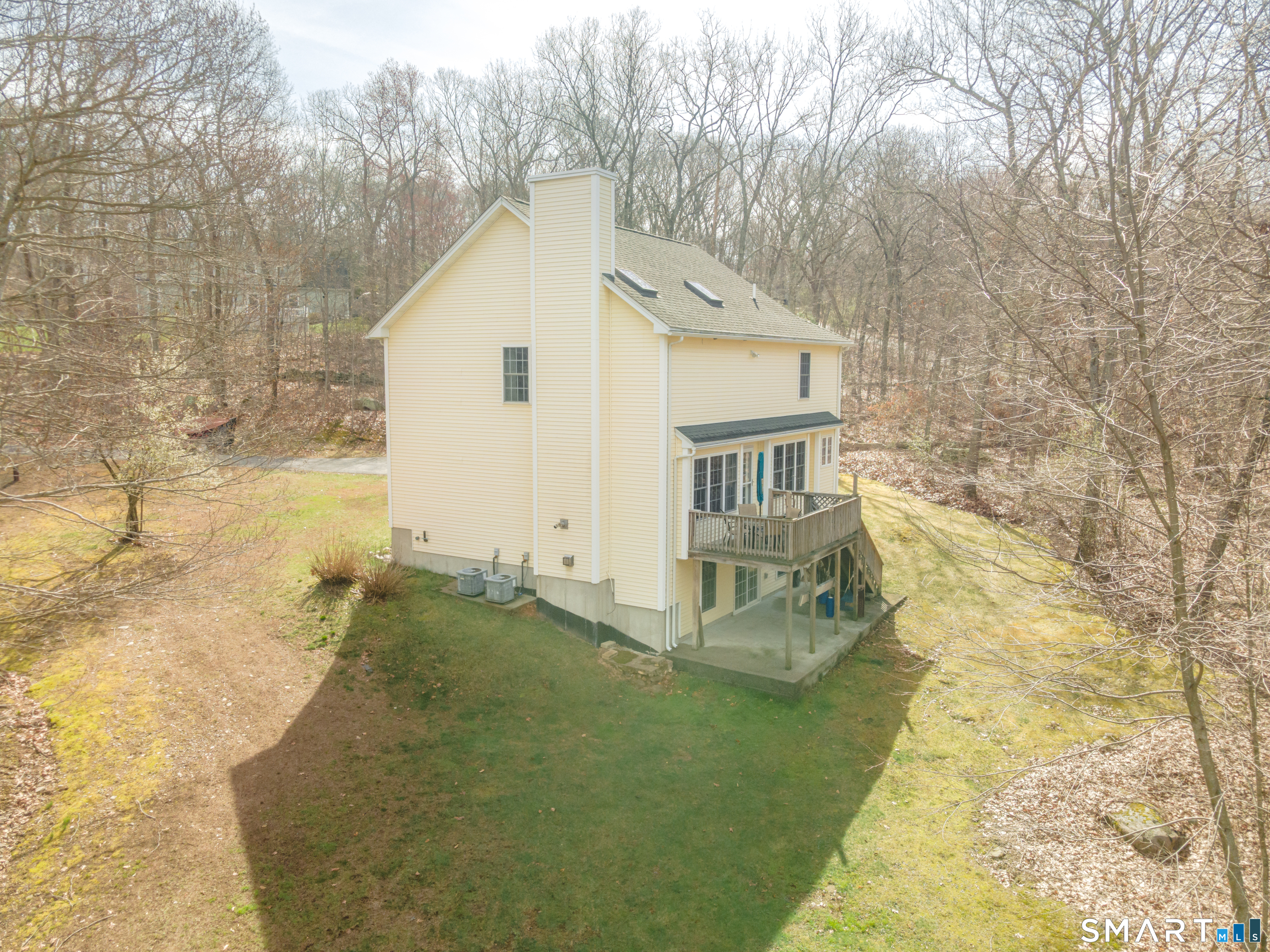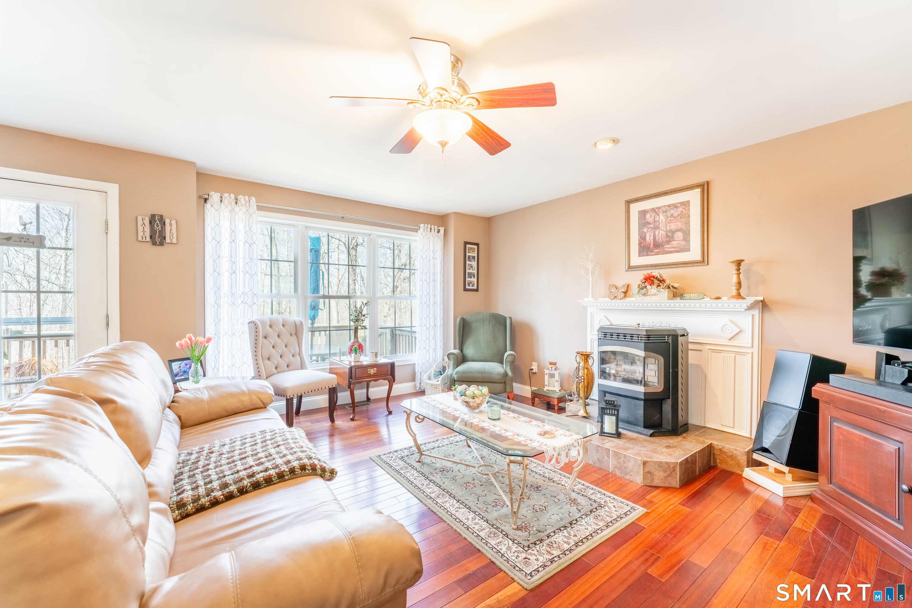 Warm, welcoming, and clearly loved, this 4-bedroom, 2.5-bath home offers comfort and privacy that instantly makes you feel at home. From the moment you step inside, gleaming hardwood floors, crown molding, and tray ceilings add character and warmth throughout the living spaces. The bright kitchen features granite countertops, stainless appliances, and abundant cabinetry, opening to a large living room with a cozy pellet stove, perfect for gathering with family and friends. Just off the living room is a cozy music den, ideal for a reading nook or office. The formal dining room with tray ceiling provides an elegant setting for entertaining. Upstairs, the spacious primary suite with tray ceiling, walk-in closet, and private bath offers a peaceful retreat. Three additional bedrooms provide plenty of room for family or guests, and second-floor laundry adds everyday convenience. The walk-out basement offers great storage or the opportunity to finish for additional living space. Additional highlights include central air, generator hookup, and a two-car garage. Situated on just over 5 private acres, this property offers room to relax and enjoy nature while still being conveniently located near I-395 with easy commutes to Hartford, Rhode Island, and Massachusetts.