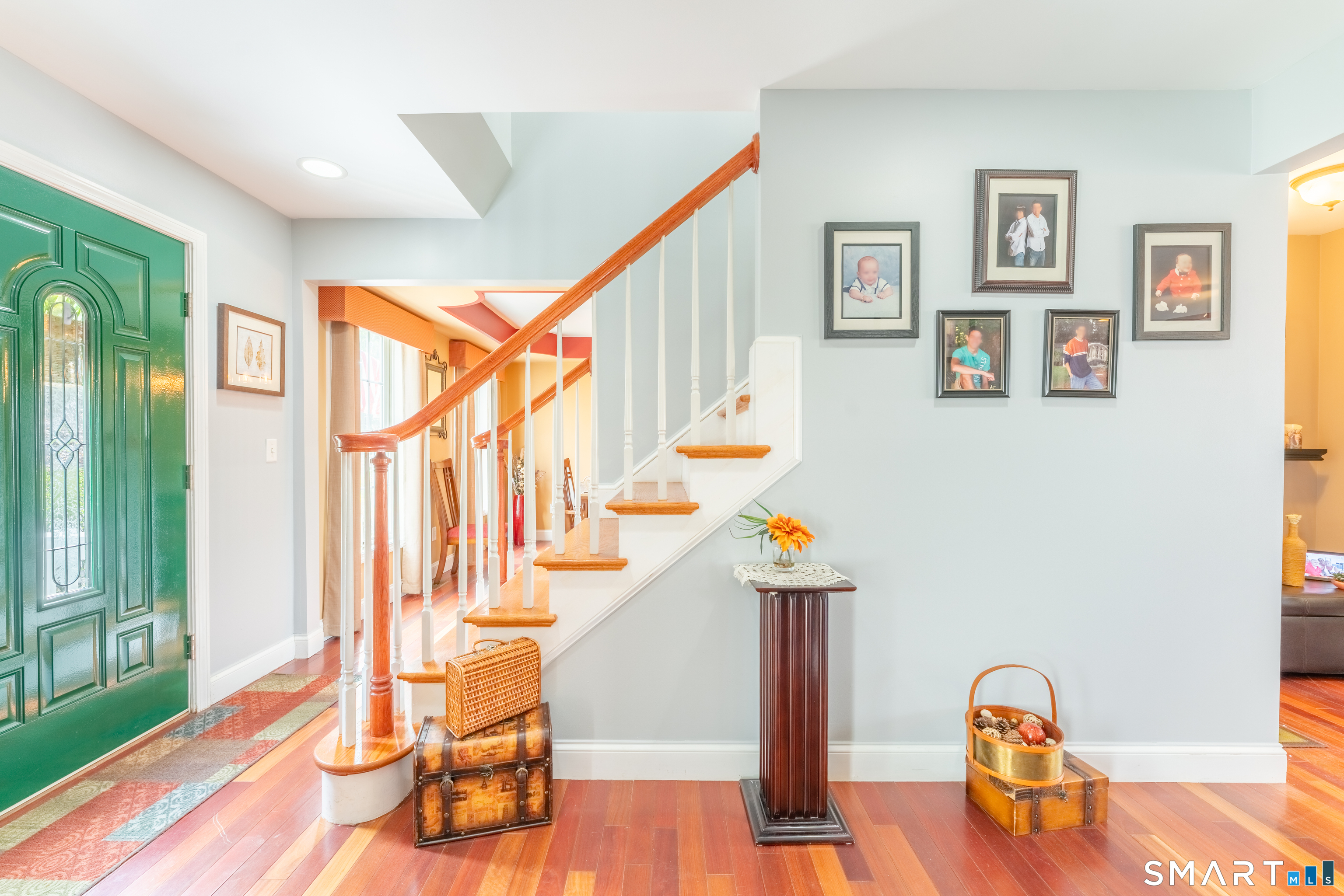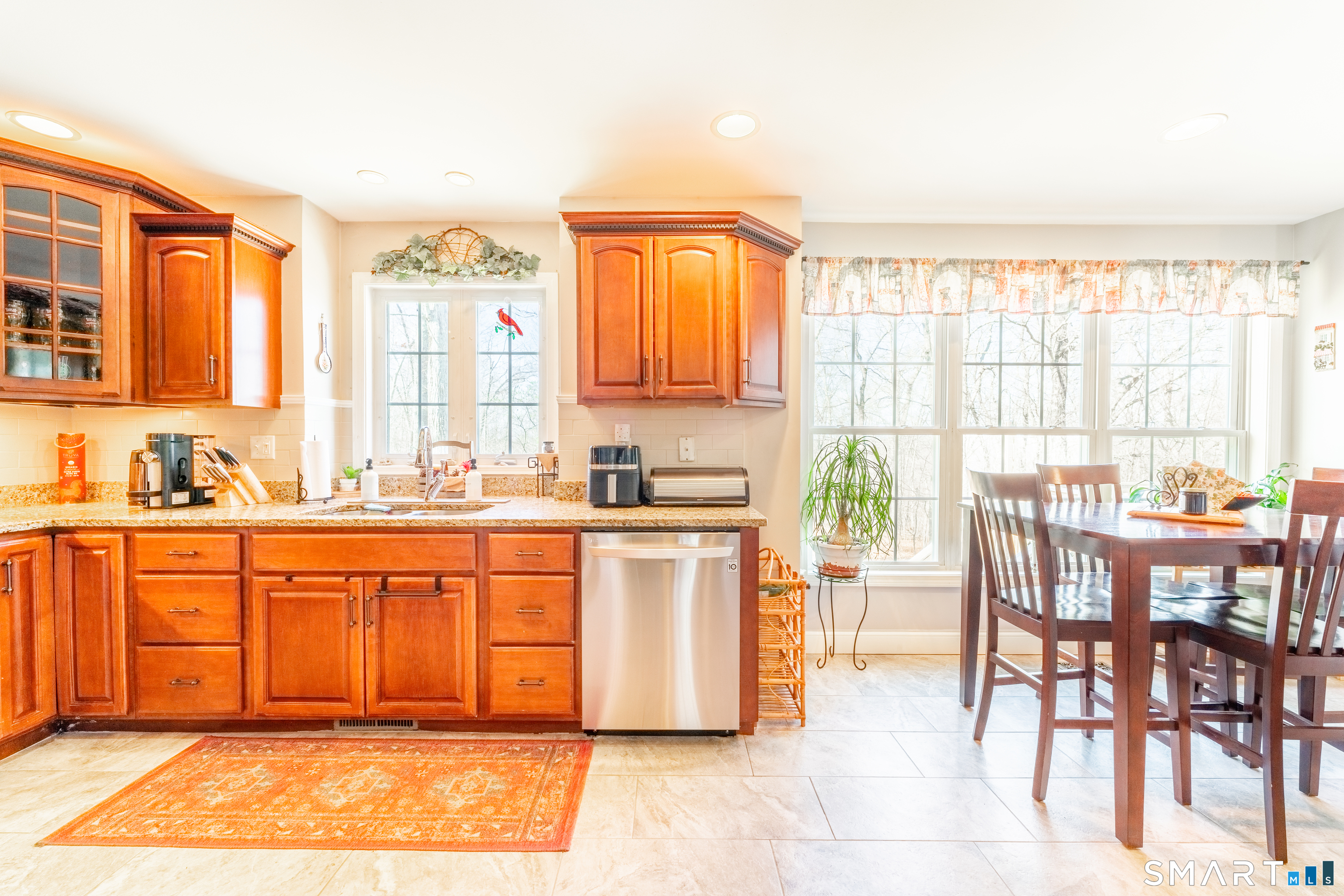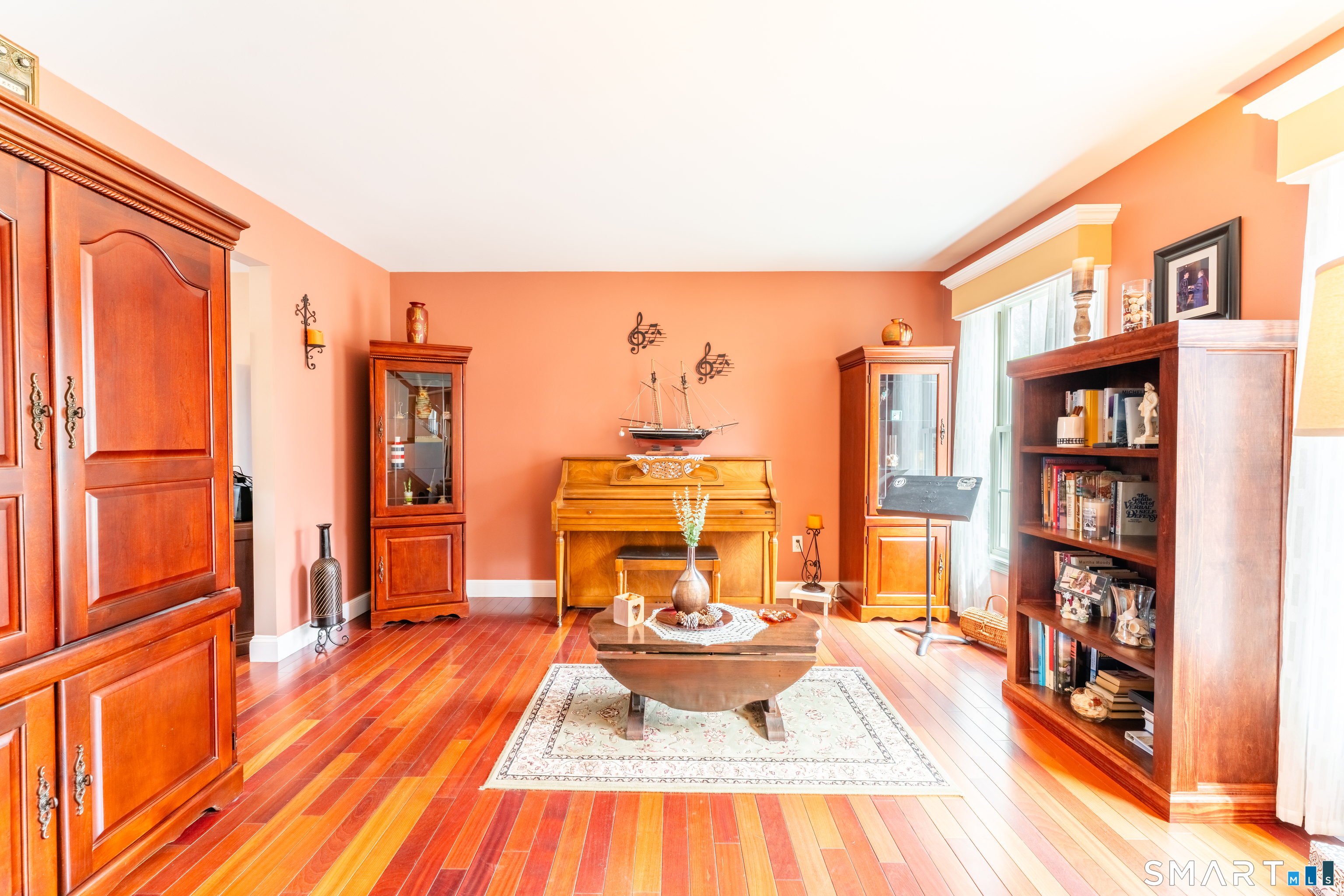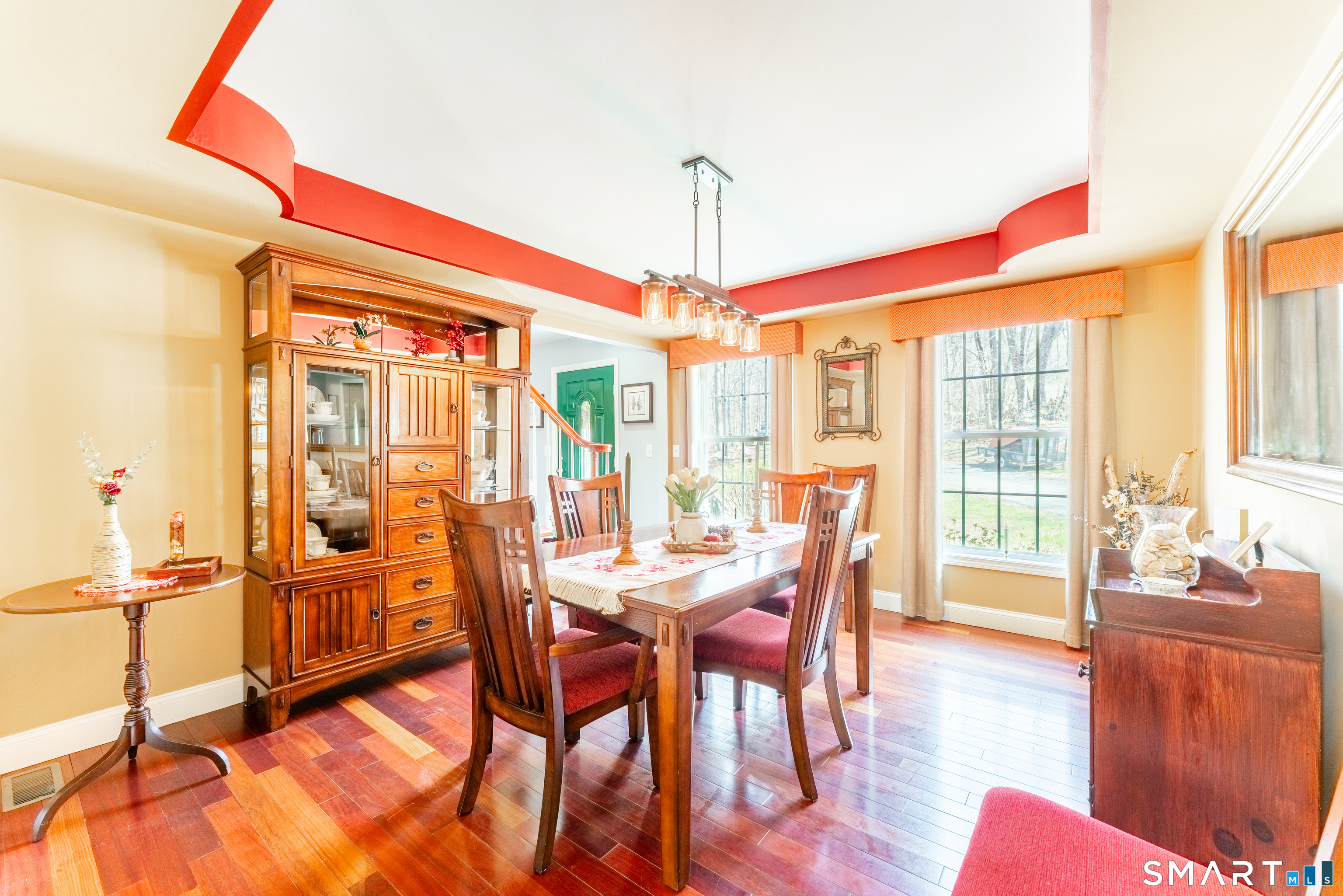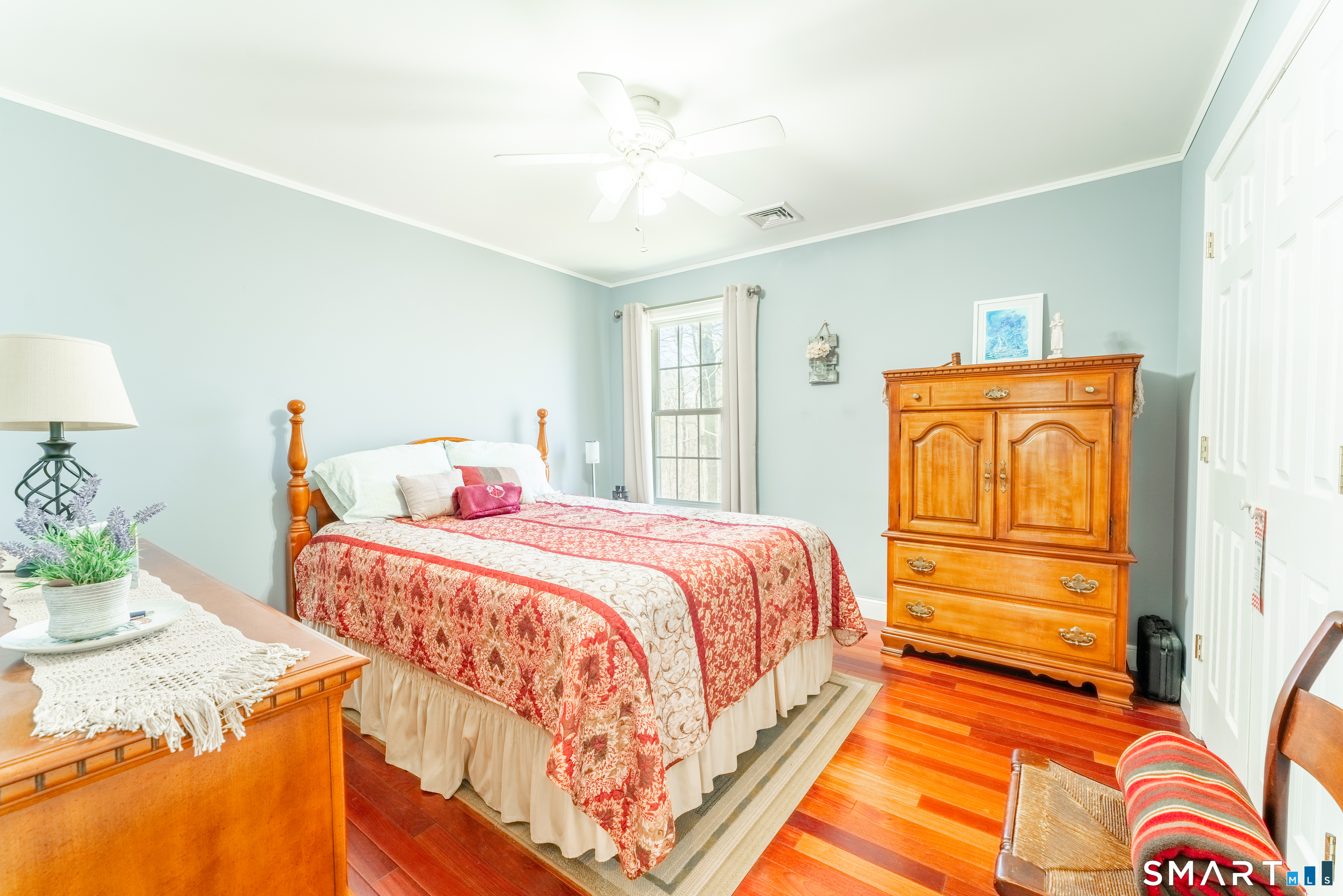 Warm, welcoming, and clearly loved, this 4-bedroom, 2.5-bath home offers comfort and privacy that instantly makes you feel at home. From the moment you step inside, gleaming hardwood floors, crown molding, and tray ceilings add character and warmth throughout the living spaces. The bright kitchen features granite countertops, stainless appliances, and abundant cabinetry, opening to a large living room with a cozy pellet stove, perfect for gathering with family and friends. Just off the living room is a cozy music den, ideal for a reading nook or office. The formal dining room with tray ceiling provides an elegant setting for entertaining. Upstairs, the spacious primary suite with tray ceiling, walk-in closet, and private bath offers a peaceful retreat. Three additional bedrooms provide plenty of room for family or guests, and second-floor laundry adds everyday convenience. The walk-out basement offers great storage or the opportunity to finish for additional living space. Additional highlights include central air, generator hookup, and a two-car garage. Situated on just over 5 private acres, this property offers room to relax and enjoy nature while still being conveniently located near I-395 with easy commutes to Hartford, Rhode Island, and Massachusetts.