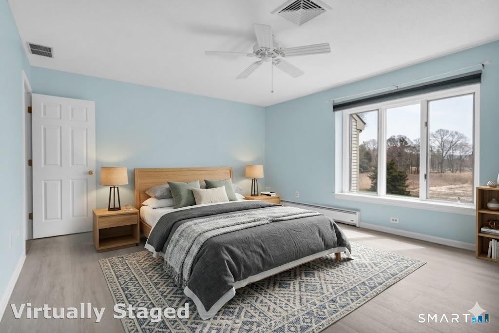 Coastal elegance meets low-maintenance living in this beautifully appointed townhouse-style 2 bedroom condominium, ideally situated within walking distance of charming downtown Old Saybrook. Located at Sheltered Cove, a coveted community, step inside an open concept floor plan with a living room showcasing custom cabinetry, fireplace and serene views of the tidal marsh that invite the outdoors in. A slider opens from the Living Room to your private patio-perfect for morning coffee or evening entertaining. The Kitchen offers granite counters, 2 sinks and plenty of storage. Gleaming hardwood floors throughout the 1st floor. The thoughtful two-story layout offers 2 generously sized ensuite bedrooms on the second level, each with its own private bath for ultimate comfort and privacy. Laundry is located between the two bedrooms. A finished basement provides flexible space for a home office, gym, or media room, plus ample storage to keep everything organized. Additional highlights include a detached 1 car garage, community pool, and clubhouse-ideal for enjoying the best of Connecticut shoreline living. Whether you're strolling to Main Street's boutiques and eateries or unwinding with marsh views from your patio, this home offers a rare blend of convenience, style, and tranquility.