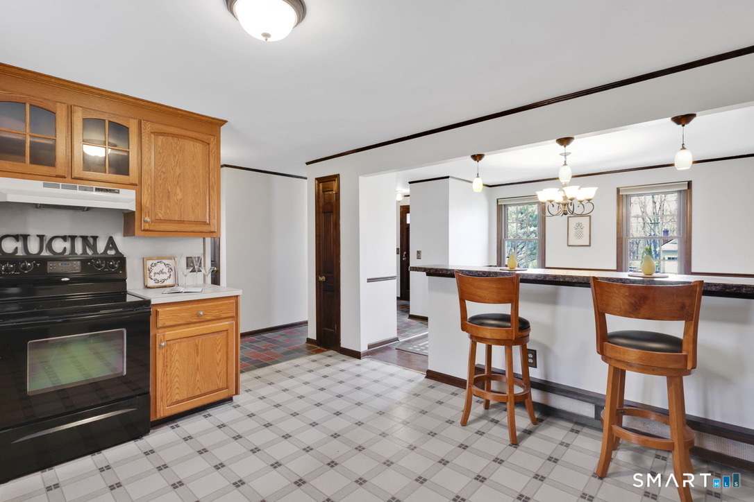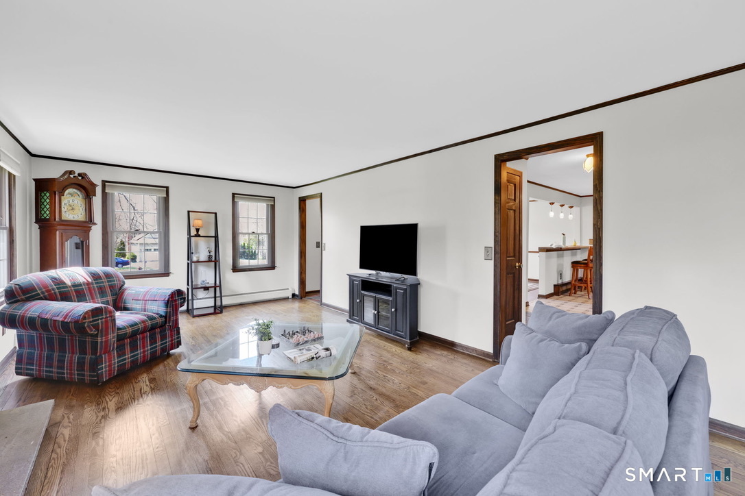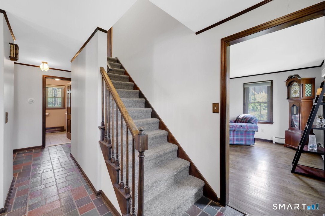 Welcome to this charming 3-bedroom gambrel Colonial in prime Cromwell location! Situated on a cul-de-sac street lined with upscale homes, this home awaits a new owner. Featuring an inviting open floor plan, it offers spacious living and dining areas perfect for entertaining or relaxing with family. The first floor has been freshly painted, with a breezeway/mudroom between the house and garage that is the perfect drop zone for all of your gear! The kitchen has been opened up to the dining room, with a breakfast bar and plenty of counter space. The front to back living room with a wood burning fireplace is a few steps away from the kitchen, with a half bath and first floor laundry in between. Upstairs, the primary bedroom is generously sized, along with 2 secondary bedrooms and a remodeled full bath. The backyard is fenced on three sides, providing privacy and includes a composite deck-ideal for outdoor gatherings or simply enjoying the fresh air. You'll love the convenience of being just minutes from the high school, elementary school, shopping and major commuter routes, making your daily errands and travel a breeze. Enjoy the blend of classic colonial style and modern comfort in a prime location-schedule your showing today!