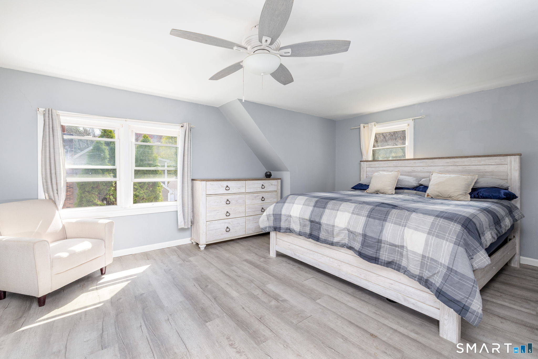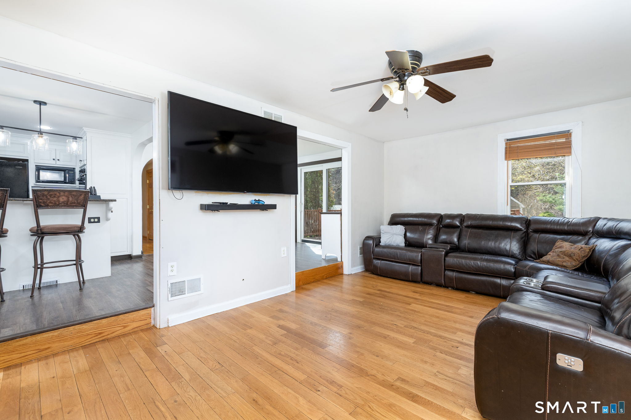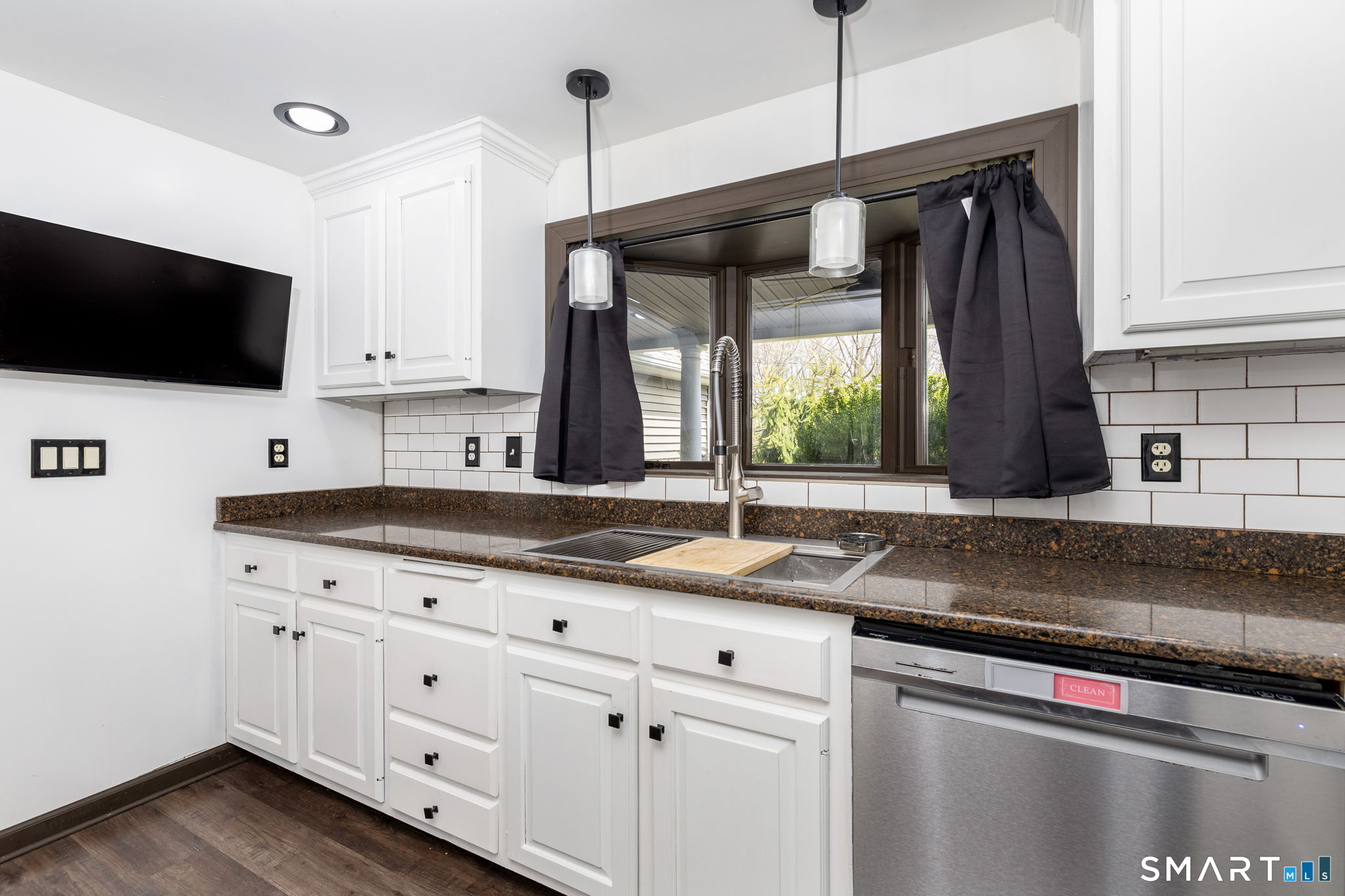 Welcome to your dream home-a beautifully remodeled sanctuary that masterfully combines comfort, functionality, and inviting living spaces! As you approach, you'll be greeted by a charming covered front porch, complete with a ceiling fan-perfect for savoring those sunny mornings or relaxing during warm evenings in delightful comfort.Step inside to discover a lovely living room adorned with stunning wood floors that radiate warmth and style. Get ready to be wowed by the oversized eat-in kitchen, meticulously designed for both everyday living and entertaining. This culinary haven boasts gorgeous granite countertops, an abundance of cabinet space, a spacious center island, and sliding doors that lead to a delightful wooden deck. The seamless transition to the fully fenced backyard creates an ideal setting for gatherings or peaceful outdoor relaxation.Just off the kitchen, you'll find a spacious sunken family room that adds even more charm to the main level, complete with direct access to the first-floor laundry and the oversized two-car garage-truly enhancing your daily routine with unmatched convenience. This level also features a comfortable bedroom, an updated full bathroom, and a dedicated laundry area, providing easy one-level living.Unwind in the generously sized living room, where an abundance of natural light pours in, creating a warm and inviting atmosphere.