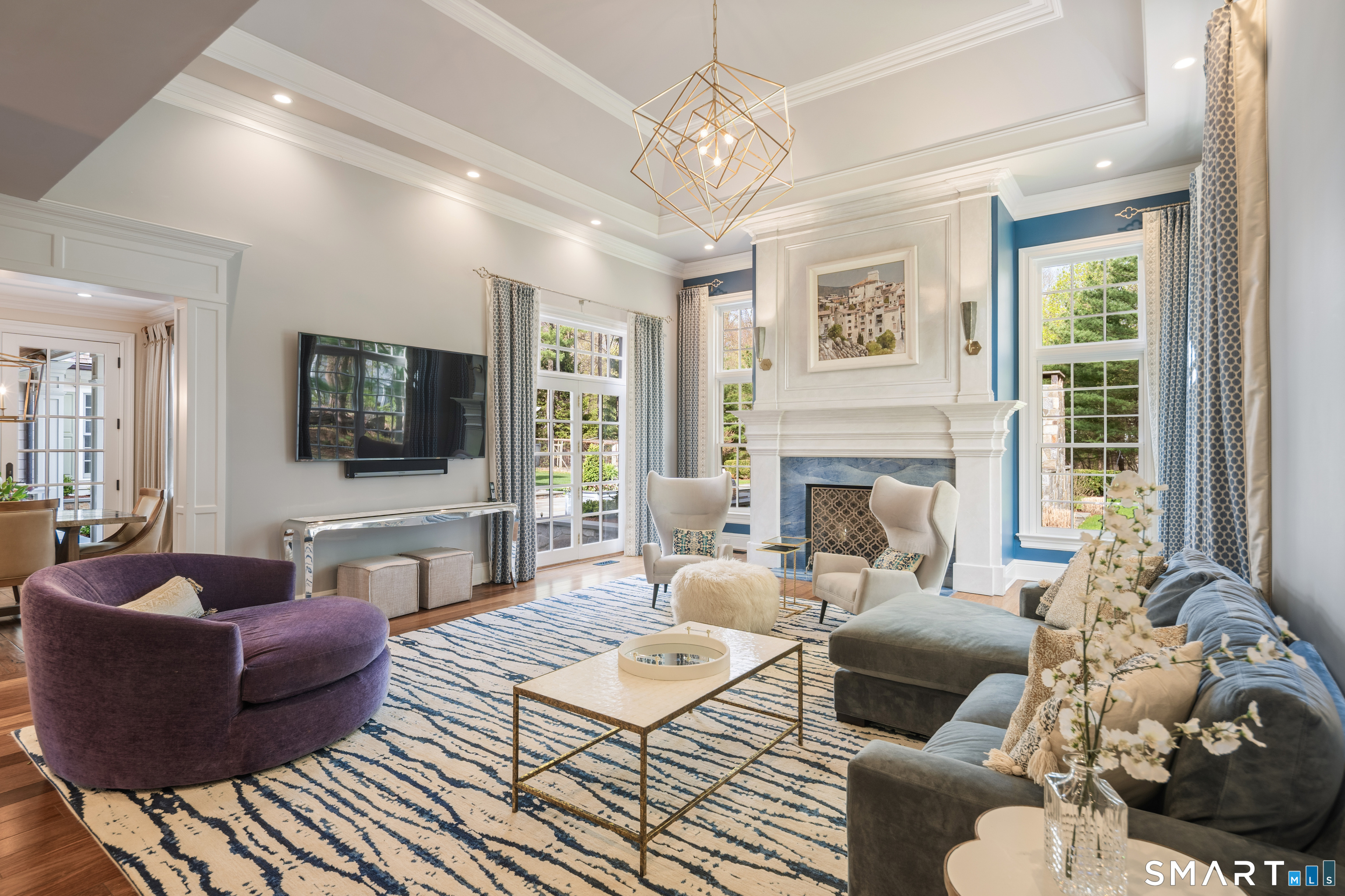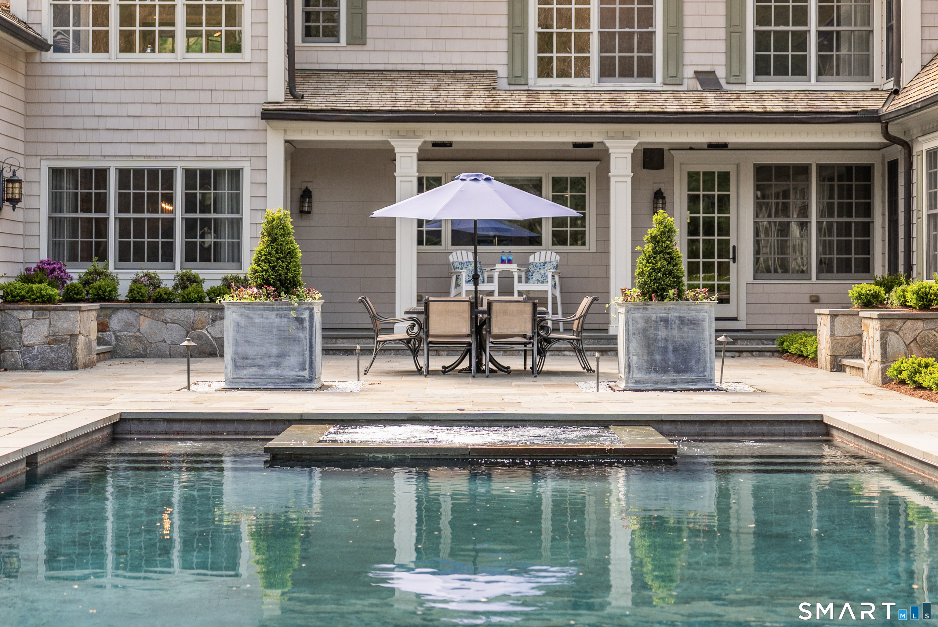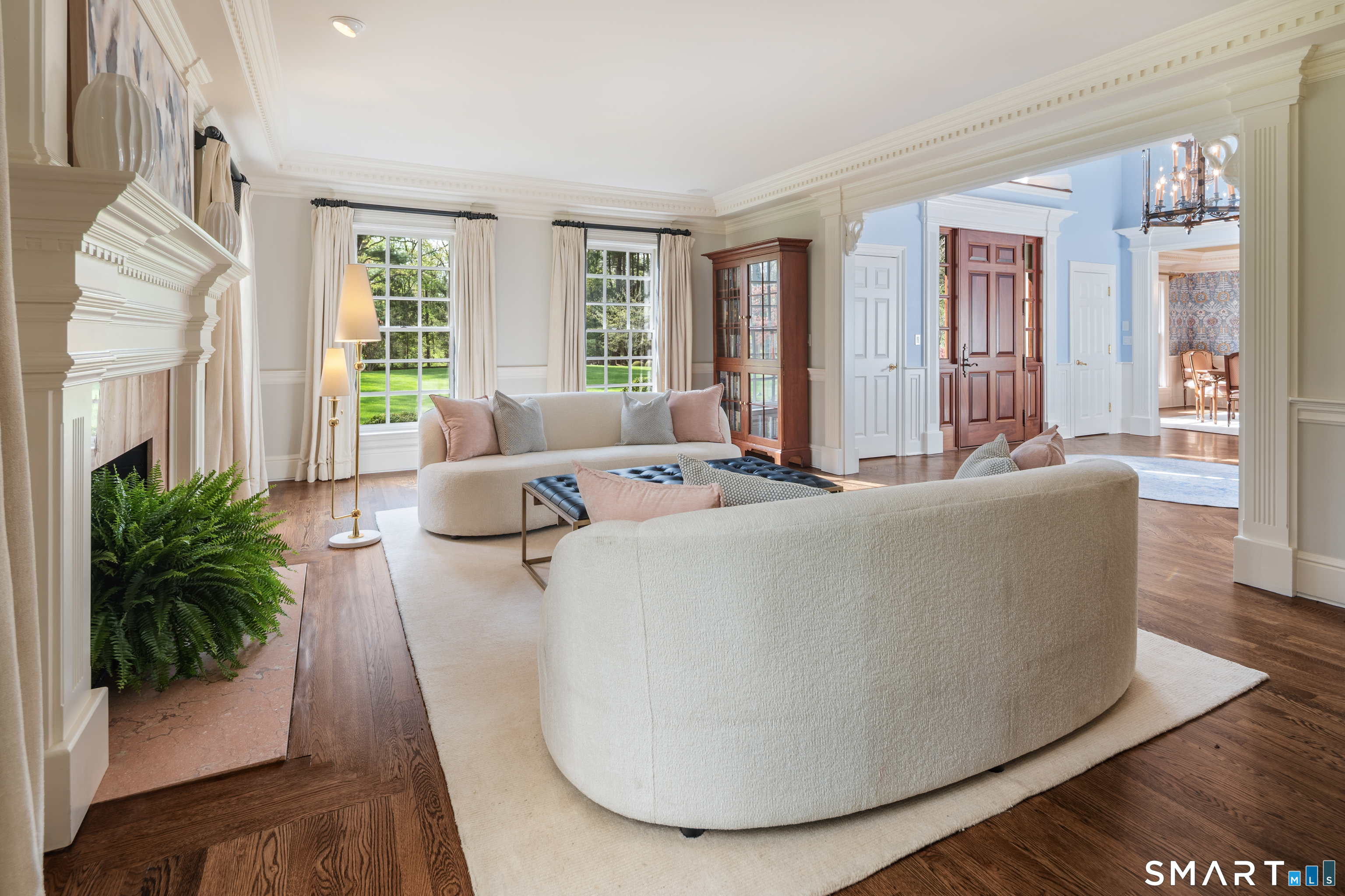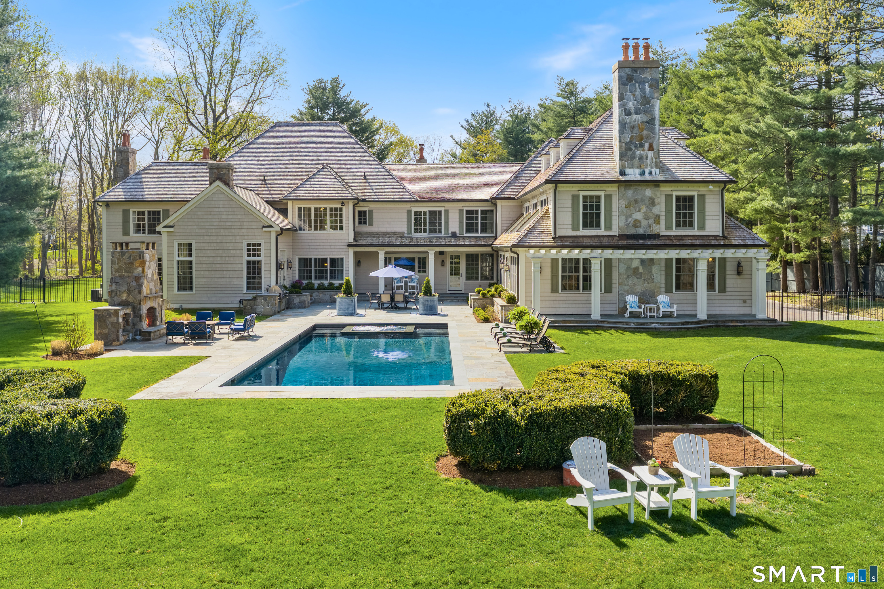 Discover the epitome of timeless luxury in this magnificent Colonial Chateau-style residence. Perfectly situated on two flat, meticulously landscaped acres in a coveted walking neighborhood, this home offers unparalleled privacy while remaining just moments from town and top-rated schools. This quiet, no-cut-through street is a haven for outdoor enthusiasts, offering exceptional bike riding and walking routes right from your door. The active neighborhood association fosters a true sense of community-think spirited trick-or-treating, seasonal gatherings, and friendly faces at every turn. Enjoy the best of both worlds: peaceful residential living with convenient access to prime roadways for an easy commute. The interior is a masterful blend of elegance and comfort, featuring six spacious en suite bedrooms and an astounding eight indoor fireplaces that create warmth and ambiance throughout. Designed for grand entertaining and modern family living, the home boasts multiple family rooms, ensuring ample space for every occasion. Indulge your passions in the dedicated wine cellar and the custom-designed sports den. The sophisticated primary level flows seamlessly to the breathtaking exterior amenities, which include a built-in pool for summer relaxation and a beautiful outdoor fireplace for year-round enjoyment. Completing this exceptional estate are four spacious garage bays, providing abundant storage and convenience.