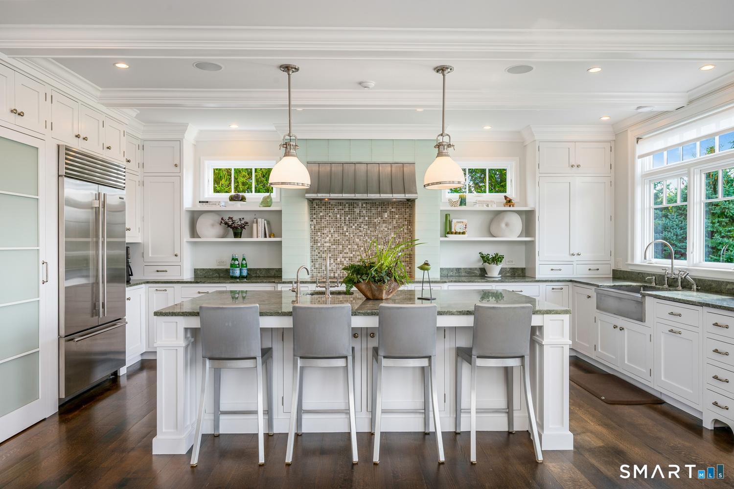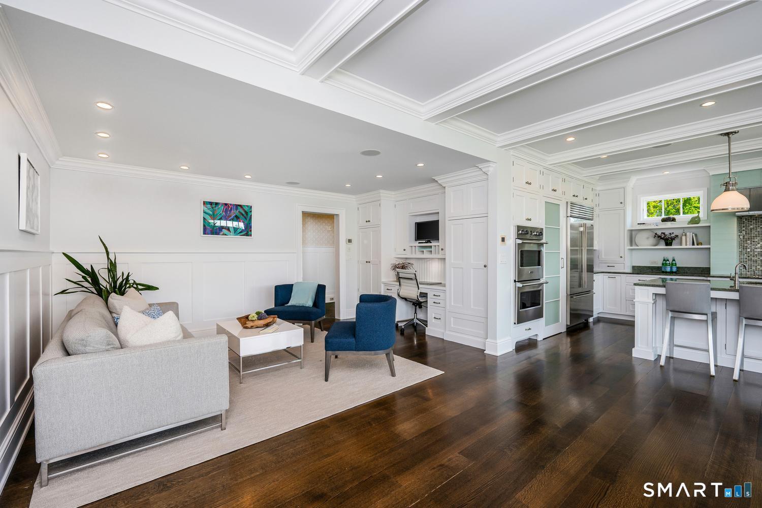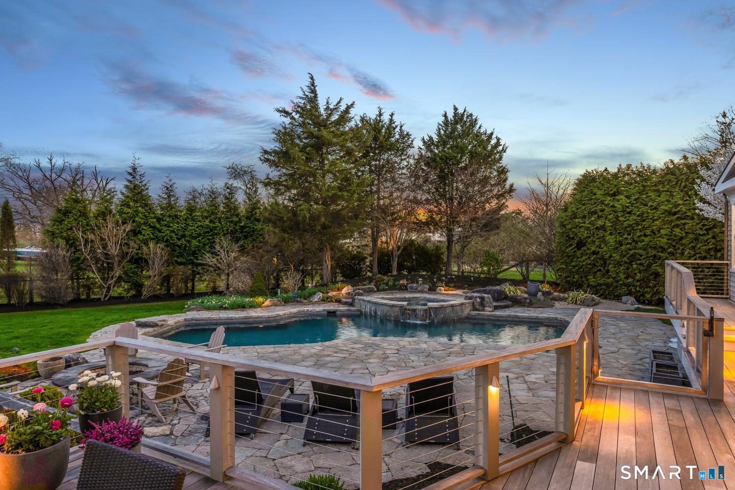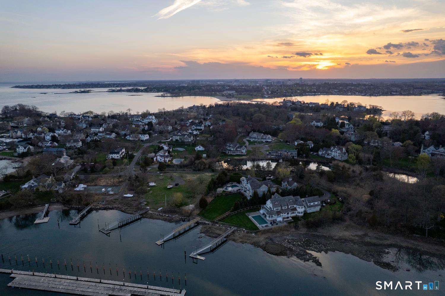 Your homestead starts here-welcome to 30 Shipway Road, a private waterfront retreat set on 1.49 incredible acres in sought-after Noroton Bay. Designed by renowned architect Chad Nehring, with coastal interiors by Pear Tree Point Design, this 5 bedroom home blends timeless style with modern comfort. Nearly every room takes in sweeping, unobstructed views of the harbor and Long Island Sound, creating a peaceful, picture-perfect setting all year long. The main living spaces flow easily outdoors to a deep water dock, beautiful pool and spa, lush grounds, and gas fire pit - perfect for relaxing or entertaining by the water. The primary suite is a true escape, with vaulted ceilings and its own private balcony overlooking the water-ideal for morning coffee. There's also a two-car attached garage, plus a detached three-car garage with a well-appointed apartment above, great for guests or extended family. A rare opportunity in one of Darien's most desirable waterfront neighborhoods, this home truly captures the best of coastal living.