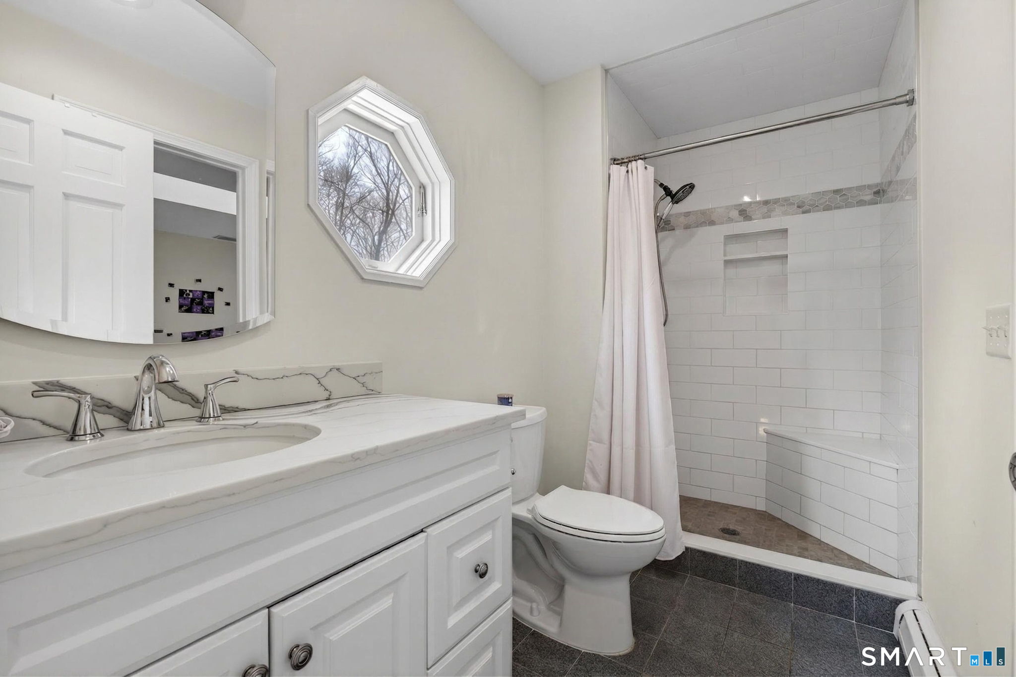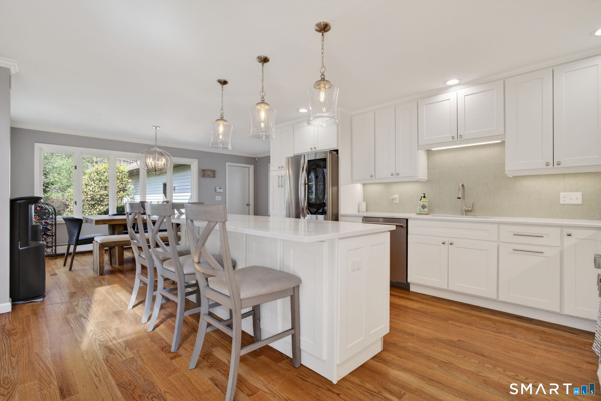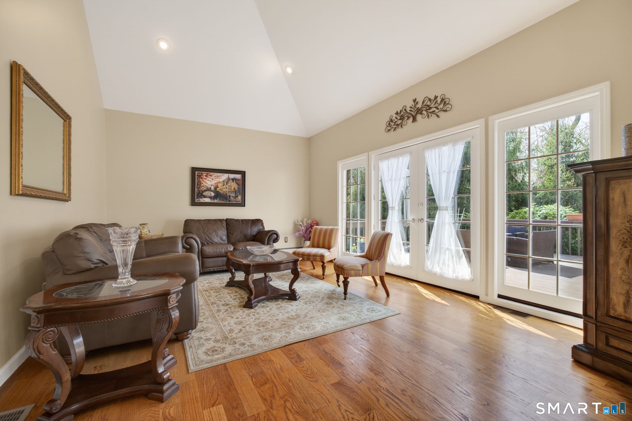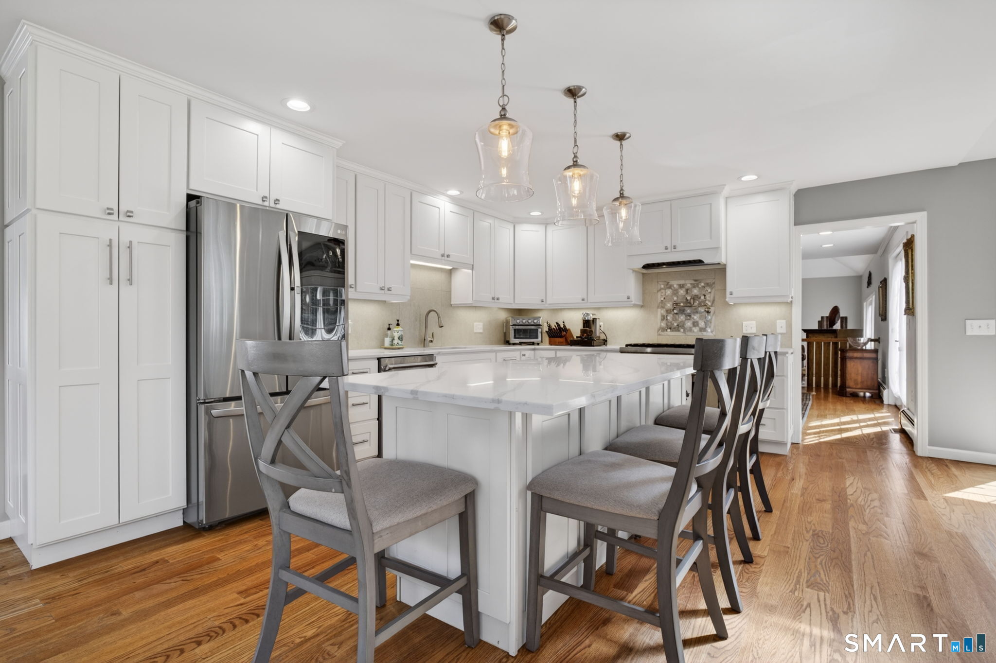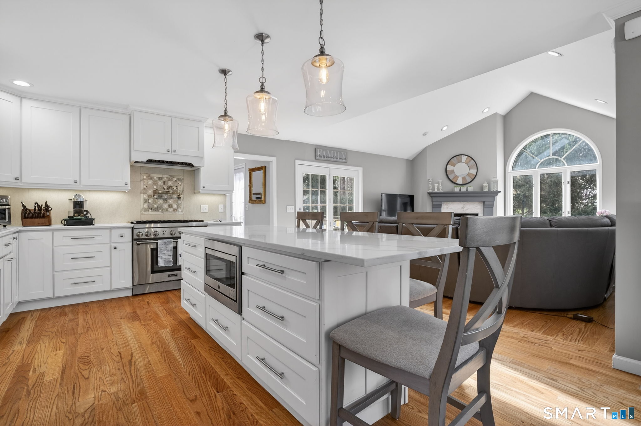 A rare find!! This renovated 5 bedroom, 3.5 bath, contemporary colonial delivers style, space and luxury on a gorgeous 1.58 acre lot. Step into the breathtaking two story foyer, where sleek porcelain flooring and a dramatic Palladian window set the tone for the light filled, open concept design that flows throughout the home. The newer chef's kitchen is the centerpiece, featuring quartzite countertops, custom cabinetry, a large island, and premium stainless steel appliances. It opens directly to the spectacular family room with gas fireplace, vaulted ceilings, skylights, and access to an oversized deck-an entertainer's dream. You will find gleaming hardwood flooring throughout the house (except foyer and baths). The first floor primary suite offers true luxury with a spa-like bath with a whirlpool tub, stall shower and a spacious walk-in closet. Living room w/vaulted ceiling, dining room, home office/bedroom, powder room & laundry room complete the main level. Upstairs, enjoy three additional bedrooms, a hall bath, and a Jack and Jill bath-perfect for today's lifestyle needs. Additional highlights include a 3 car attached garage, security system, central vacuum, central air, and an on demand propane hot water heater. The expansive, private yard provides endless possibilities for recreation and outdoor enjoyment. All conveniently located near Yale, downtown New Haven, shopping, major highways, and within an award winning school district. This is the home that truly has it all