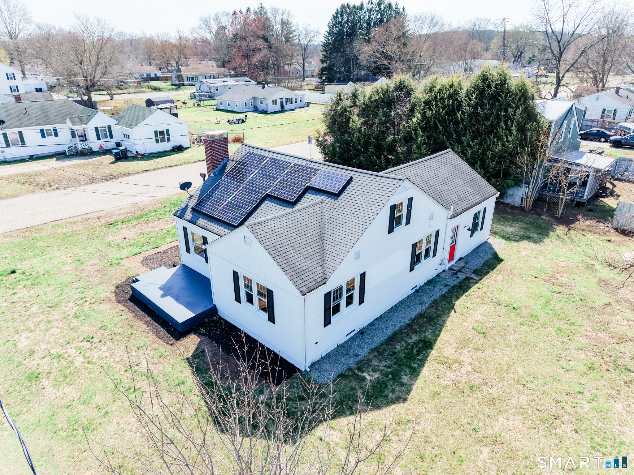 A fully remodeled , move in ready Cape! OWNED SOLAR PANELS that keep electric costs low! Nicely sized 4-bedrooms and 1 full bathroom. Beautiful refinished hardwood floors throughout the living room and all bedrooms, along with timeless details like arched openings and a cozy wood-burning fireplace. The updated custom kitchen with REAL WOOD green cabinets,beautiful quartz countertops, a subway tiled backsplash, under-mount sink, and brand-new stainless steel appliances! A fully remodeled main-level bathroom is conveniently located near the bedrooms and features stylish tile flooring, a green vanity with marble top, gold finishes, and a sliding barn door. New Durable LVP flooring extends from the kitchen into a spacious mudroom that connects the garage for everyday convenience-and is set up for first-floor laundry. Natural light fills the home! Additional updates include many newer windows, a new oil tank, new exterior doors, freshly painted exterior and a new garage door! The 1 car attached garage also offers a loft space for added storage or creative use. Great basement space ! A move-in ready home that offers character, efficiency, and modern comfort, conveniently located with easy access to Route 6 and I-395. Easy living, City water and sewer!