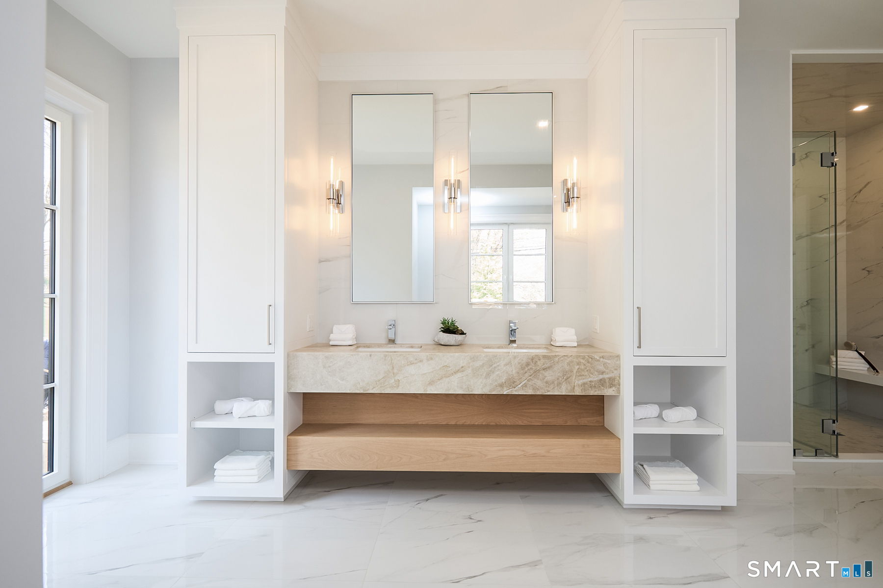 Just completed and ready for immediate occupancy, this beautifully crafted new construction home is set on a quiet cul-de-sac in the desirable Greens Farms area. Situated on a level one-acre property with a pool, the home is filled with abundant natural light and offers a thoughtful, well-balanced layout designed for both everyday living and entertaining. The stunning kitchen opens to a dramatic double-height family room, creating an inviting central gathering space. With five-plus bedrooms, including a first-floor primary suite featuring a spacious walk-in closet and a well-appointed bath, the home provides flexibility to suit a variety of living arrangements. Two laundry rooms add convenience, while high-end finishes and attention to detail are evident throughout. A fully finished lower level offers additional living space with a gym, recreation area, and more. Ideally located for commuting, with easy access to town, beaches, shopping, and transportation.