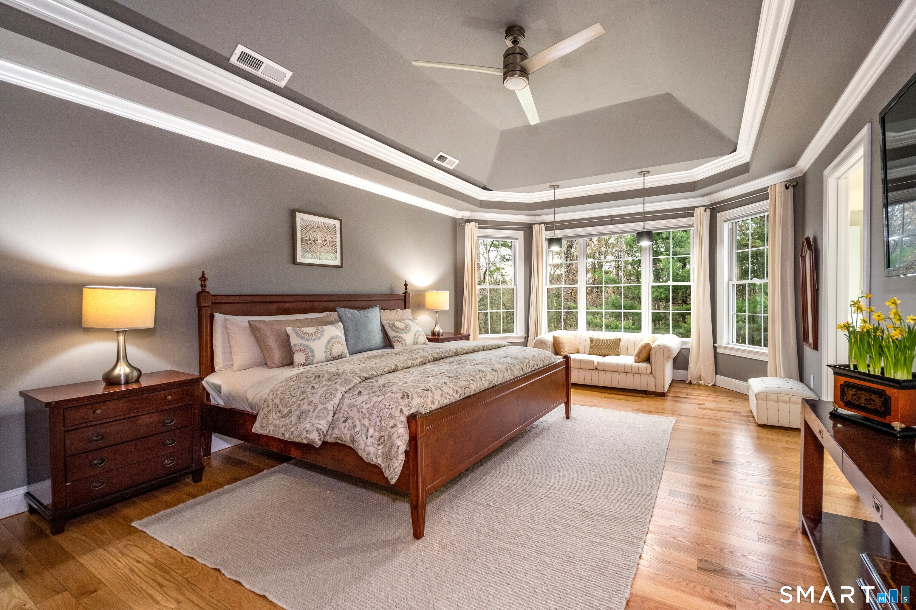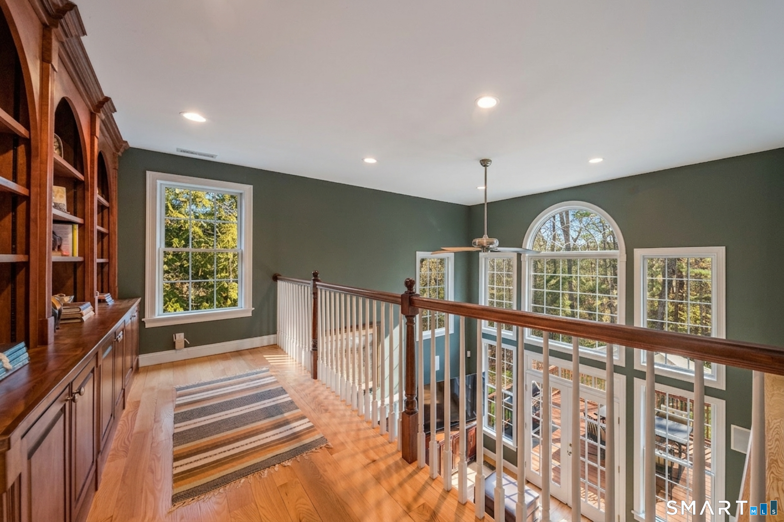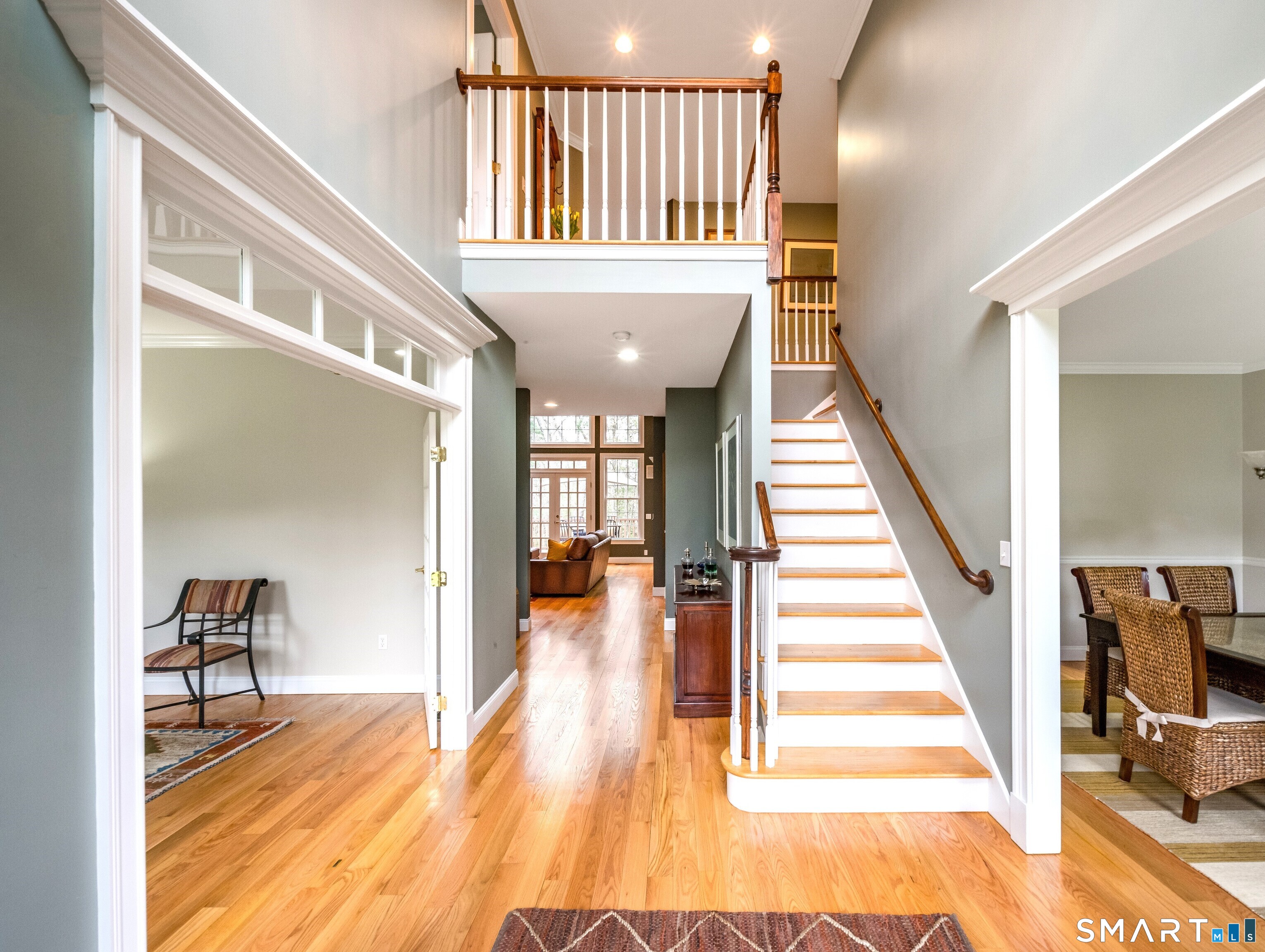 Set on a peaceful cul-de-sac in sought after Griswold Farms,this pristine 4 bed 4.1 bath home pairs timeless appeal w/a serene, private setting.Gorgeous windows fill the open interior w/natural light showcasing newly refinished hardwood flrs throughout & a fresh,move-in-ready feel.The stylish Kitchen w/plentiful cabinetry,wlk-in pantry,& island w/bev fridge & breakfst bar features newer appliances including 5 burner gas cooktop,wall ovens,& state of the art smart refrigerator. A sun-drenched breakfast rm w/convenient backstairs opens to large composite deck-perfect for casual meals or easy indoor/outdoor gatherings. Adjoining the Kit is a breathtaking fireplaced 2-story FR w/stunning windows & french dr to deck creating an inviting light filled setting w/fabulous entertaining flow. French drs w/light-catching transom lead to lovely LR-wonderful option for a 1st fl study. A spacious DR completes this well designed main level.Beautiful attention to detail continues in the upper-level landing where a charming sitting loft w/custom built-in bookcases enhances the homes open feel.The generous Primary Suite,a serene haven w/tray ceiling, lg walk-in,hrdwd flrs & tranquil bath shares upper level w/3 addtl ensuites,2 w/wlk-ins,all w/hardwood floors.Awesome fin walk out LL w/plenty of rm for fun & games w/full bth,chic wet bar, & flex space. Meticulously maintained w/private tree rimmed backyard & lush lawn. Enjoy miles of picturesque hiking & biking trails within walking distance!