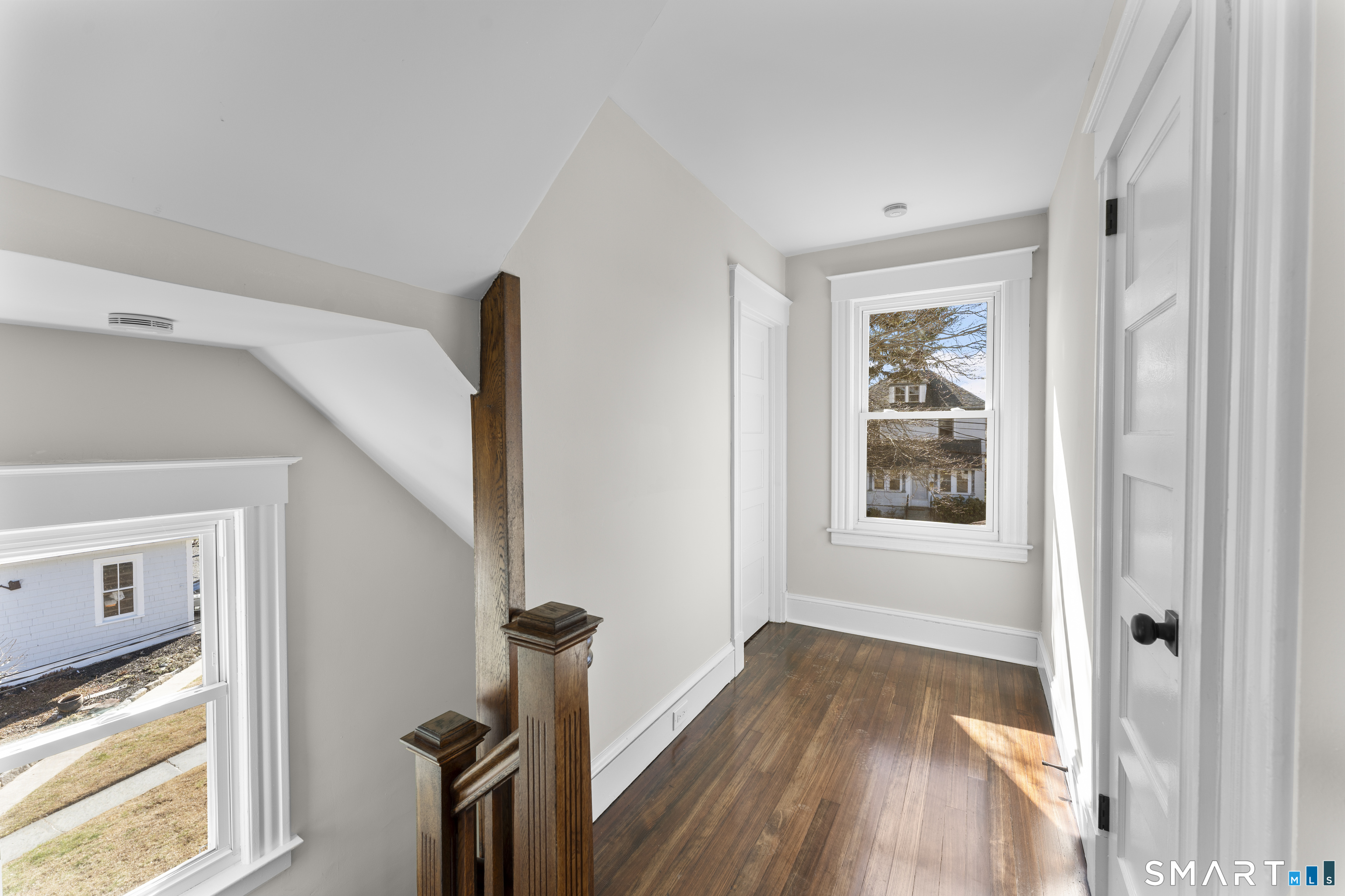 Step into this beautifully maintained home featuring elegant white quartz countertops that perfectly complement the rich brown kitchen cabinetry, creating a warm and inviting space for cooking and entertaining. Gleaming hardwood flooring flows throughout the main living areas, adding timeless charm and durability. The ceramic-tiled bathroom offers both style and easy maintenance, providing a clean and modern feel. The walk-up attic presents a fantastic opportunity for additional storage or potential expansion, giving you the flexibility to customize the home to suit your needs. Backing directly to Martin Park, you'll enjoy convenient access to outdoor recreation, including walking trails, playgrounds, and open green space-perfect for relaxing or staying active right in your backyard. This home blends comfort, functionality and location-an ideal place to create lasting memories.