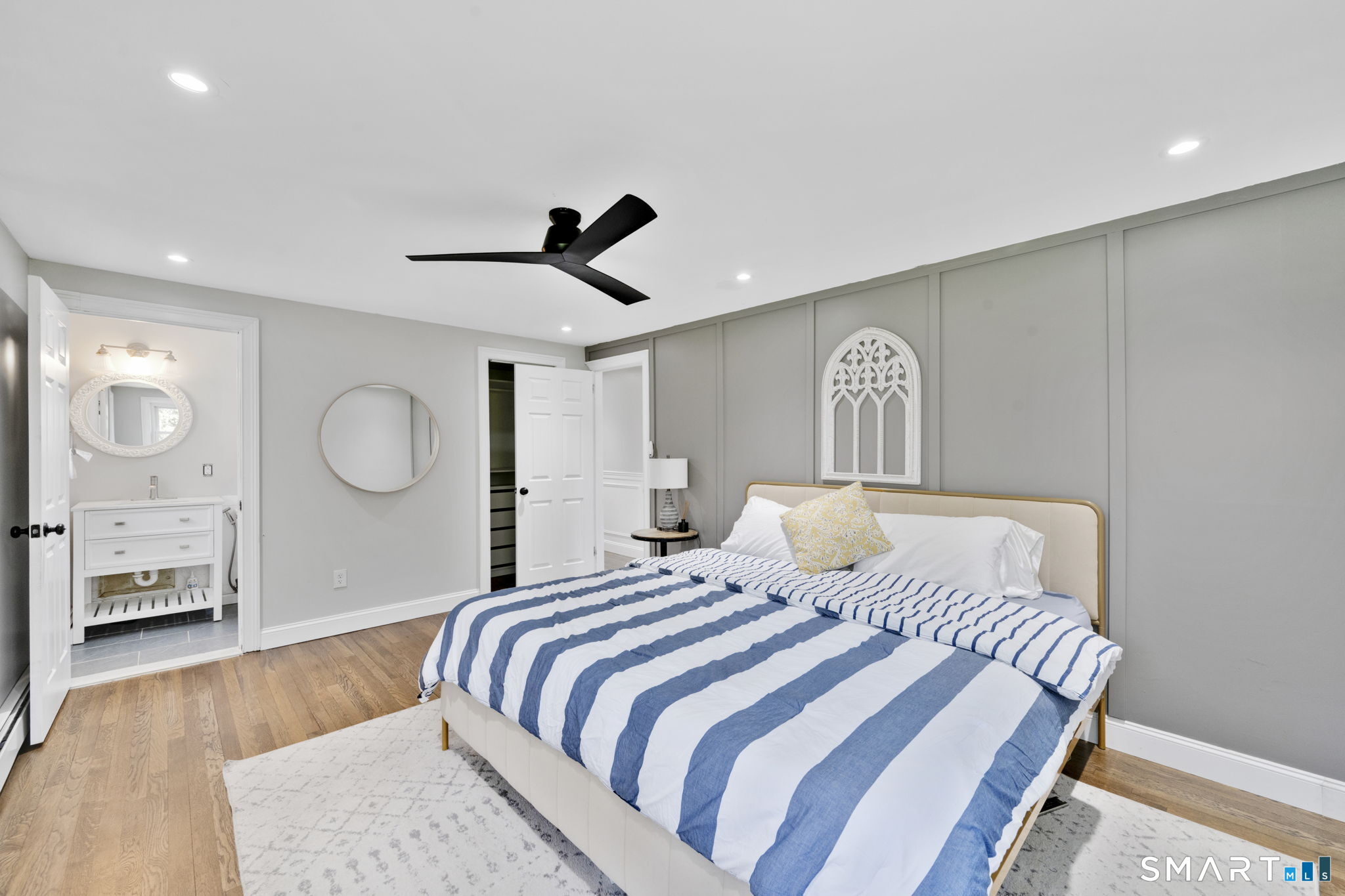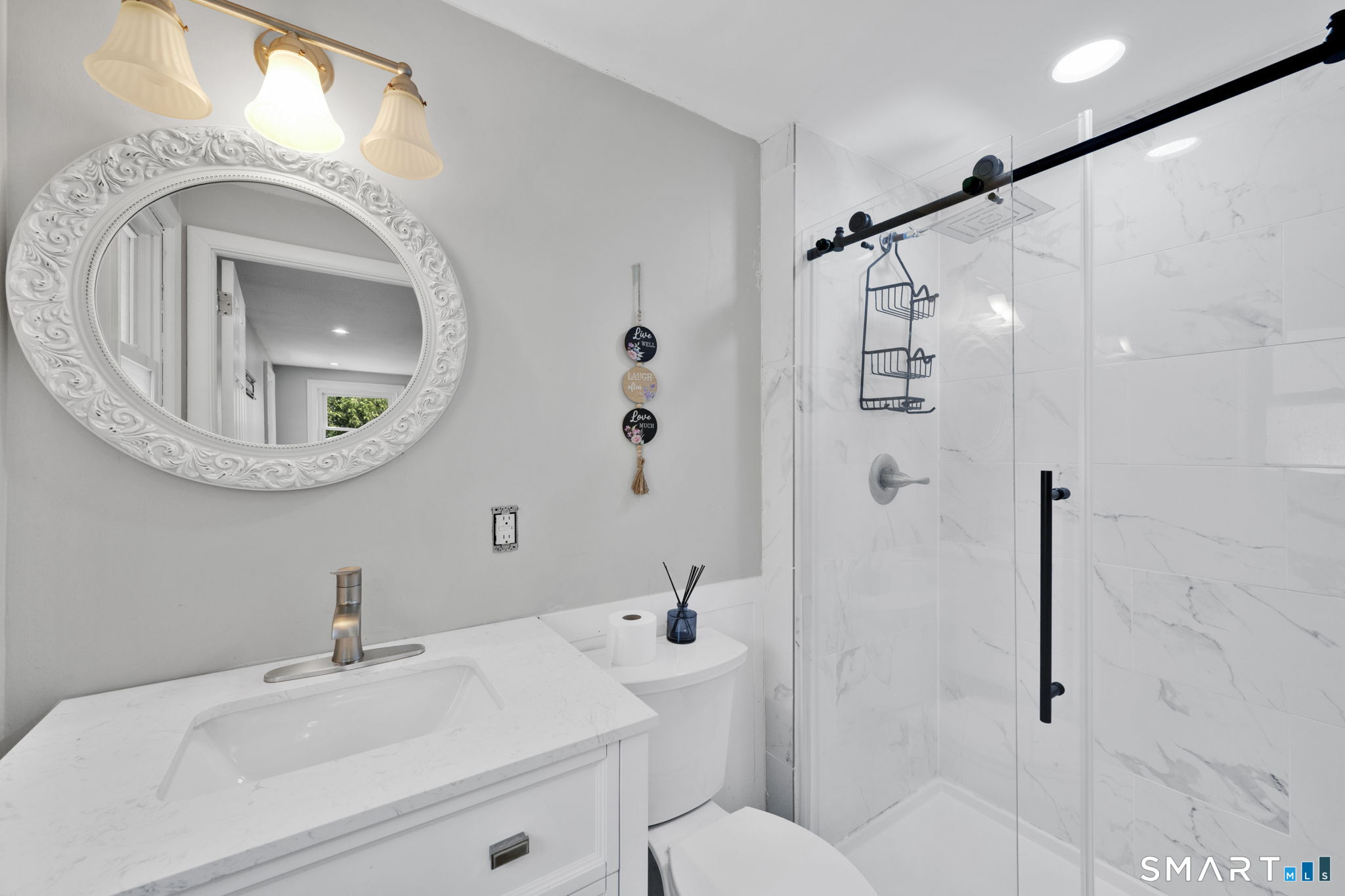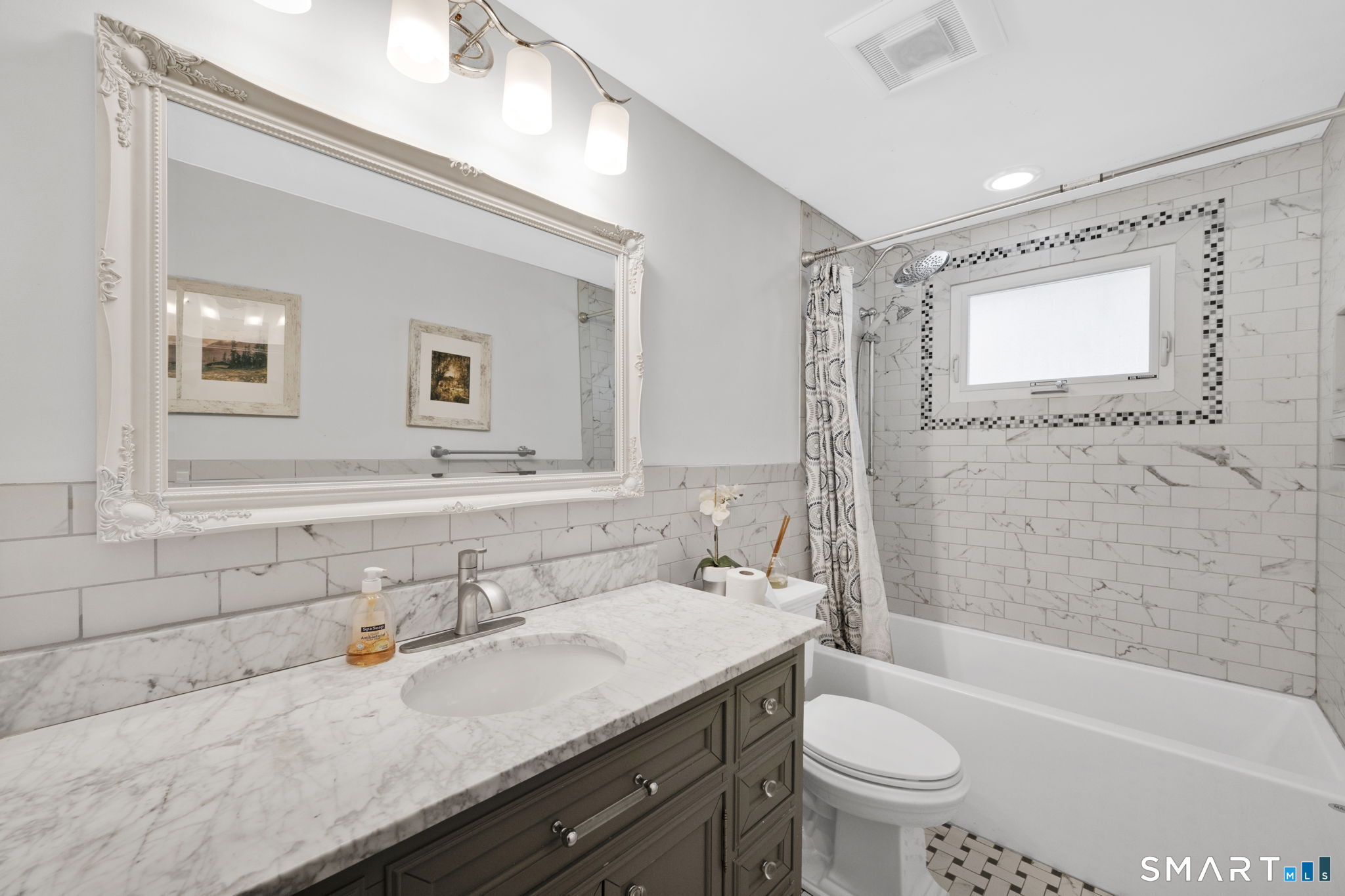 OFFER DEADLINE IS MONDAY 4/27 AT 5PM. Rare find for this EXTENSIVELY REMODELED 3/4 bed, 2 full bath RR style home. Open, bright, and inviting floor plan with stylish design found throughout. Gleaming hardwood floors throughout the home along with extensive millwork, recessed lighting, and a neutral modern paint palette. Stunning open-concept kitchen with huge center island, beautiful cabinetry, quartz counters, and stainless steel appliances. Kitchen opens to dining room with stunning wall wainscoting and sun-filled living room. Spacious primary bedroom with updated en suite full bath. Two additional bedrooms plus remodeled hall full bath. 4 season sunroom with vaulted ceiling. Walkout lower level with mudroom, laundry, office / 4th bedroom, and family room space. Enclosed porch could be converted for additional living space. Expansive composite deck overlooks level backyard complete with sprawling patio, outdoor fireplace, and storage shed. All public utilities with natural gas and city sewer/water. Newer architectural roof (2024) and updated siding and windows (2020). Sought after neighborhood location situated in the PLEASANT VALLEY ELEMENTARY SCHOOL DISTRICT. Convenient to Evergreen Walk, Costco, Whole Foods, Buckland Mall, and I-84 or I-291.