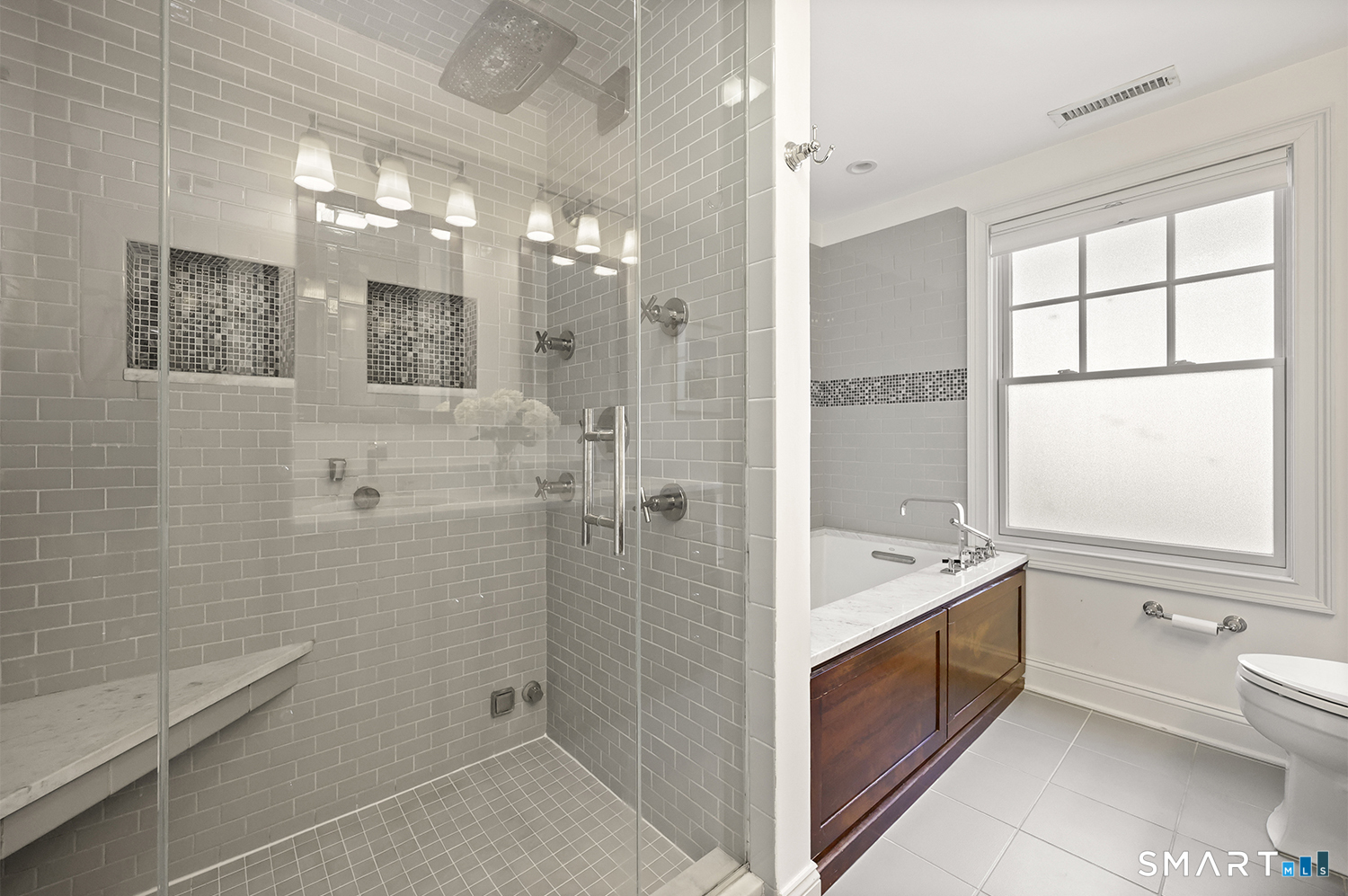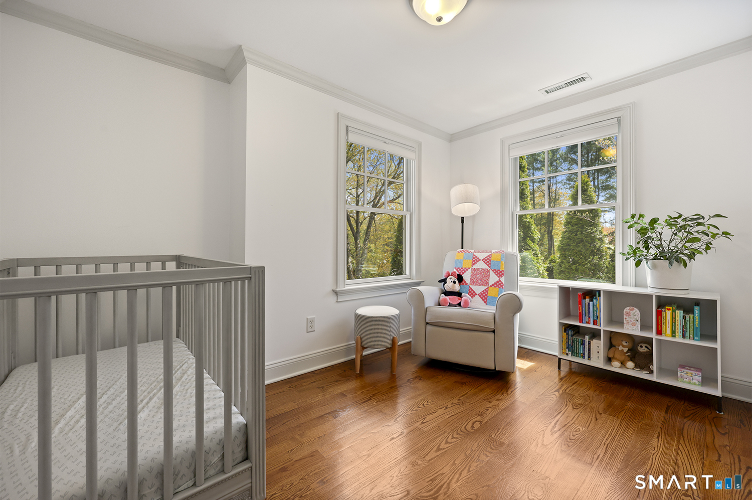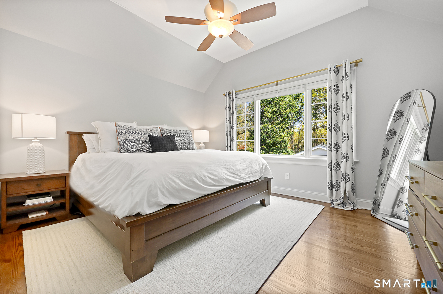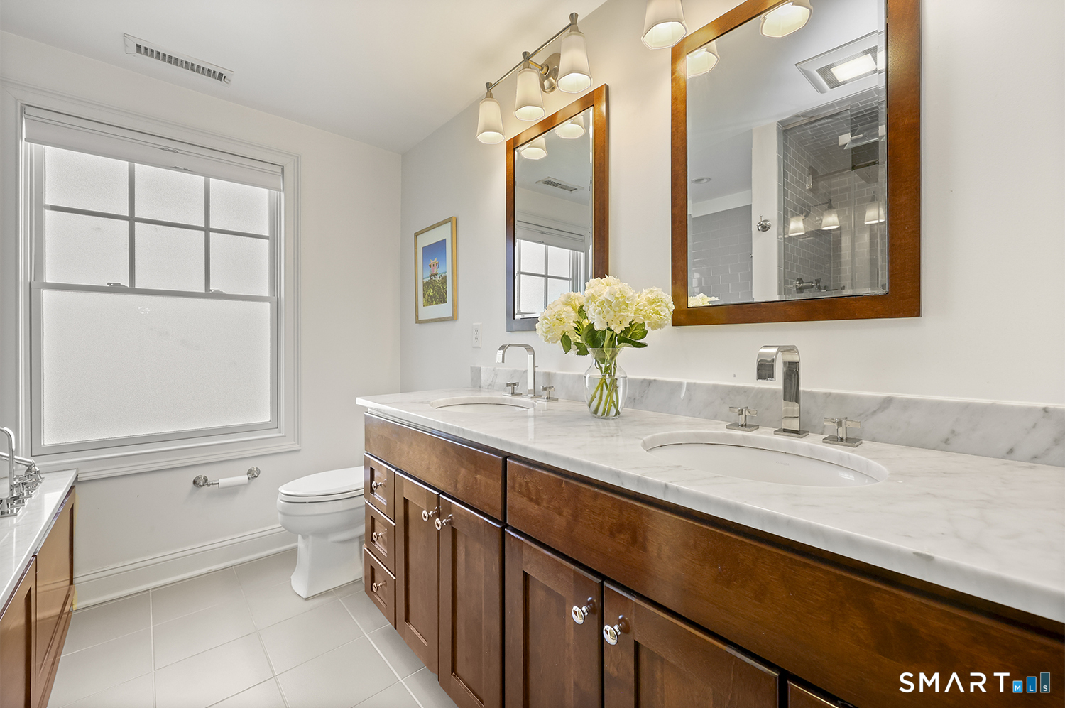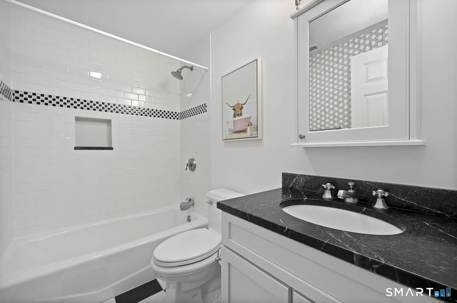 This sweet home is located on a desirable, convenient street nestled between Southport and Greenfield Hill. Enjoy an open first floor with a chef's kitchen featuring premium stainless-steel appliances, a waterfall quartz countertop, and a spacious eat-in area. A separate den/flex space behind a half wall provides a perfect spot for work or play, distinct from the living area. The first floor also includes a large dining area, cozy seating, and a gas fireplace. Two access points lead to an expansive deck and patio, ideal for outdoor entertaining. Upstairs, there are four bedrooms (one without a closet, so the tax card lists it as a three-bed), all with hardwood floors. The primary bedroom boasts a vaulted ceiling, a large picture window, a walk-in closet with custom built-ins, and a spa-like bath with a whirlpool tub and separate shower. The other bedrooms share an updated full bath. The finished third level offers versatile space for a workout room or office. The lower level houses the laundry and ample storage. An unfinished area above the two-car garage could become an art studio or guest suite. The private, level yard includes an irrigation system and a peaceful brook behind the fence. Conveniently located near shopping, schools, and commuting routes. Great walking options including an arboretum steps away. New assessment/taxes not reflected until July 2026.