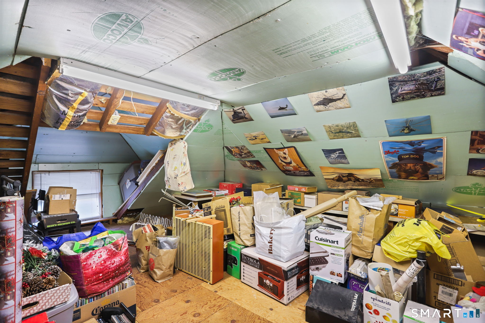Attic : Unfinished, Storage Space, Floored, Pull-Down Stairs