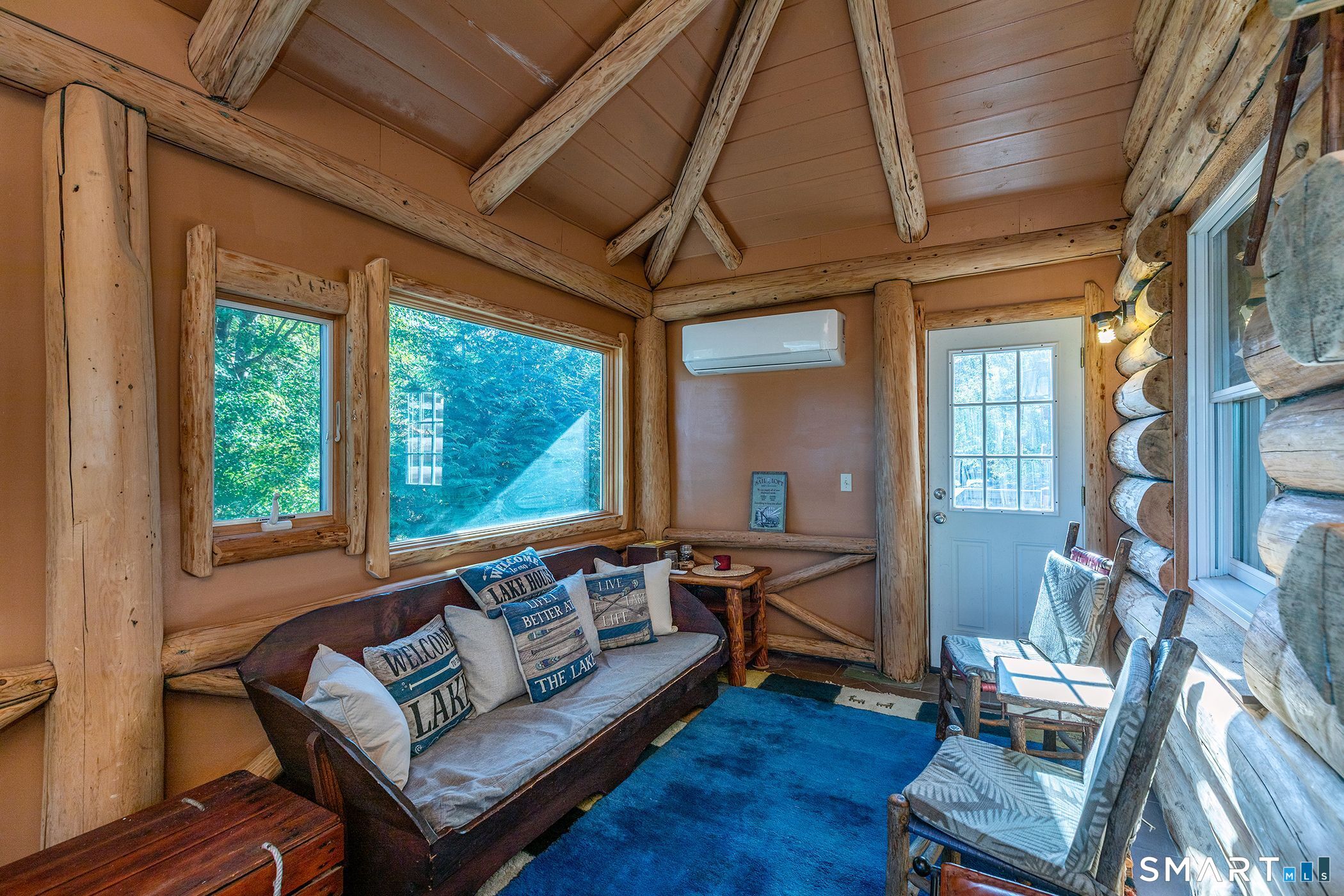 Come experience Candlewood Isle living and everything the community has to offer in a vintage cedar log home at the end of a cul-de-sac overlooking Candlewood lake. This spectacular yearly furnished rental home features a Living room stone fireplace with wood burning stove reaching to the top of the cathedral ceiling with log wood trusses and picture window. The Dining room has its own unique feel with high ceilings, surrounded by log walls on one side and picture windows with panoramic lake views on the other surrounded by mature trees. Candlewood Isle offers exceptional amenities including a private clubhouse with a sandy beach, tennis, pickleball, basketball, bocci and security guard at entrance to the community. A boat slip may be available for an additional fee (subject to availability and eligibility). Very special!