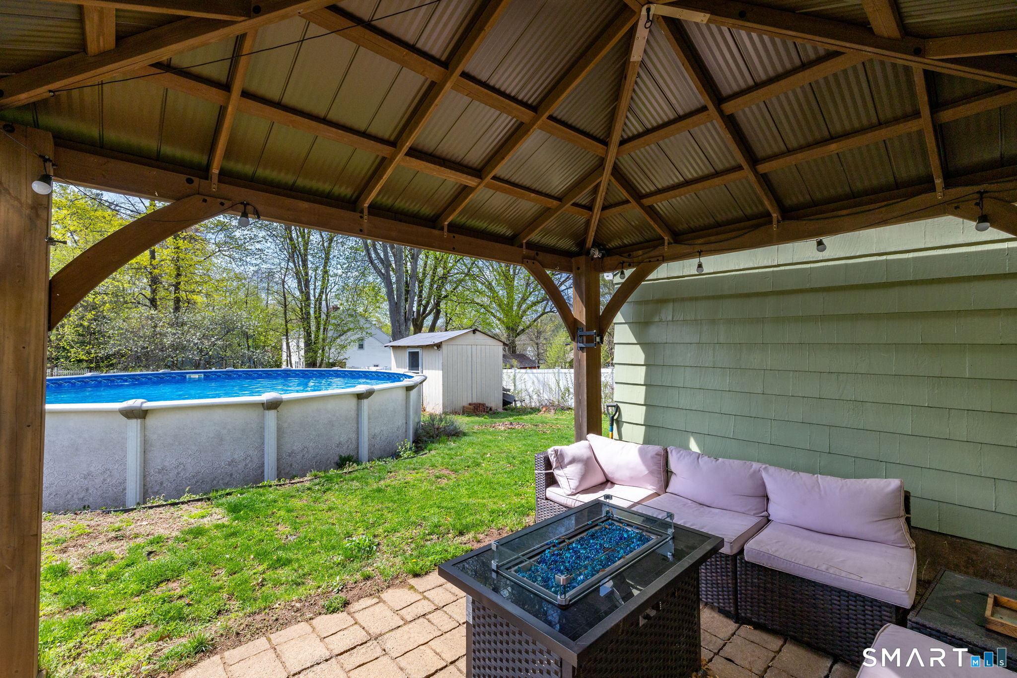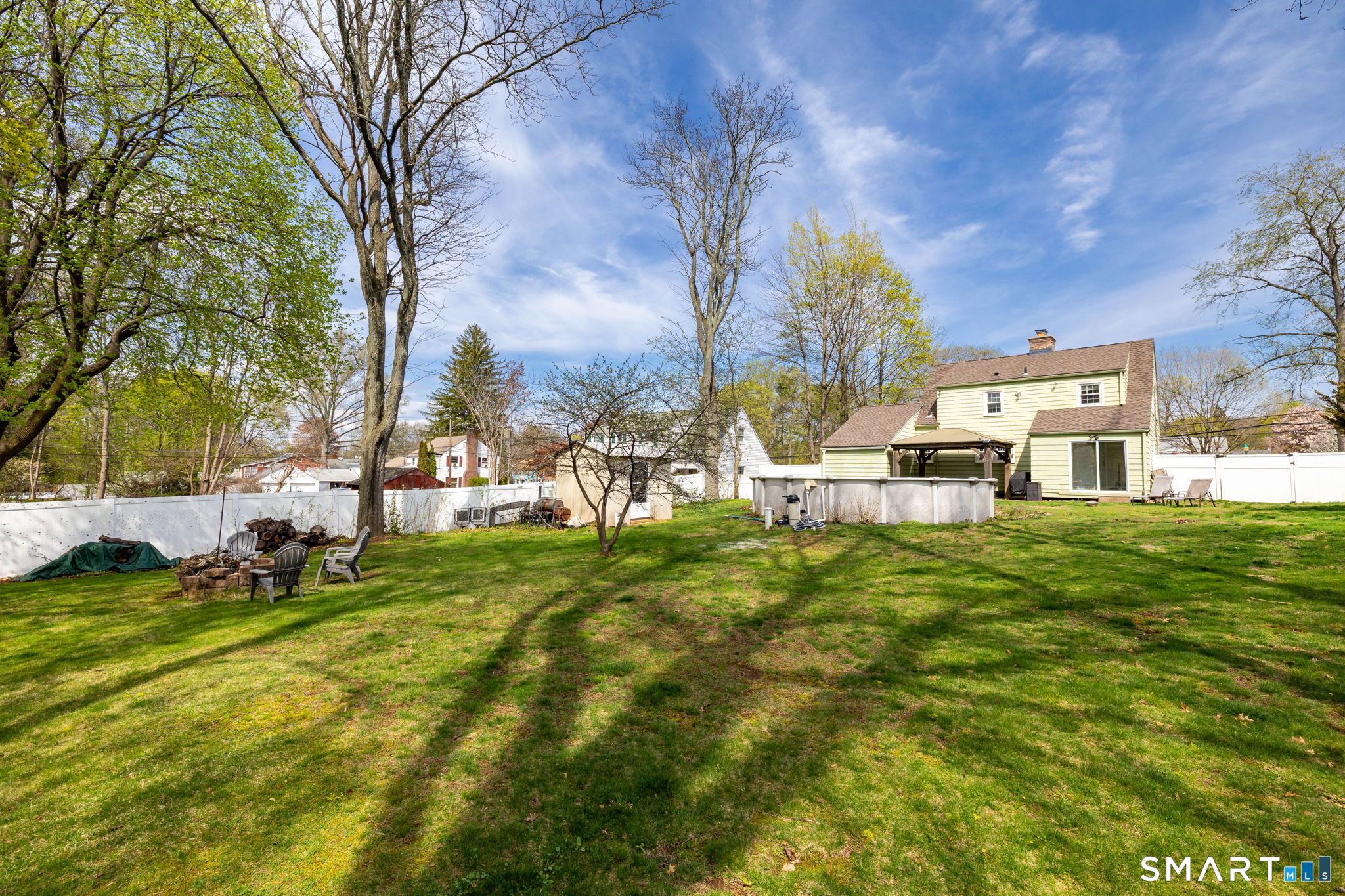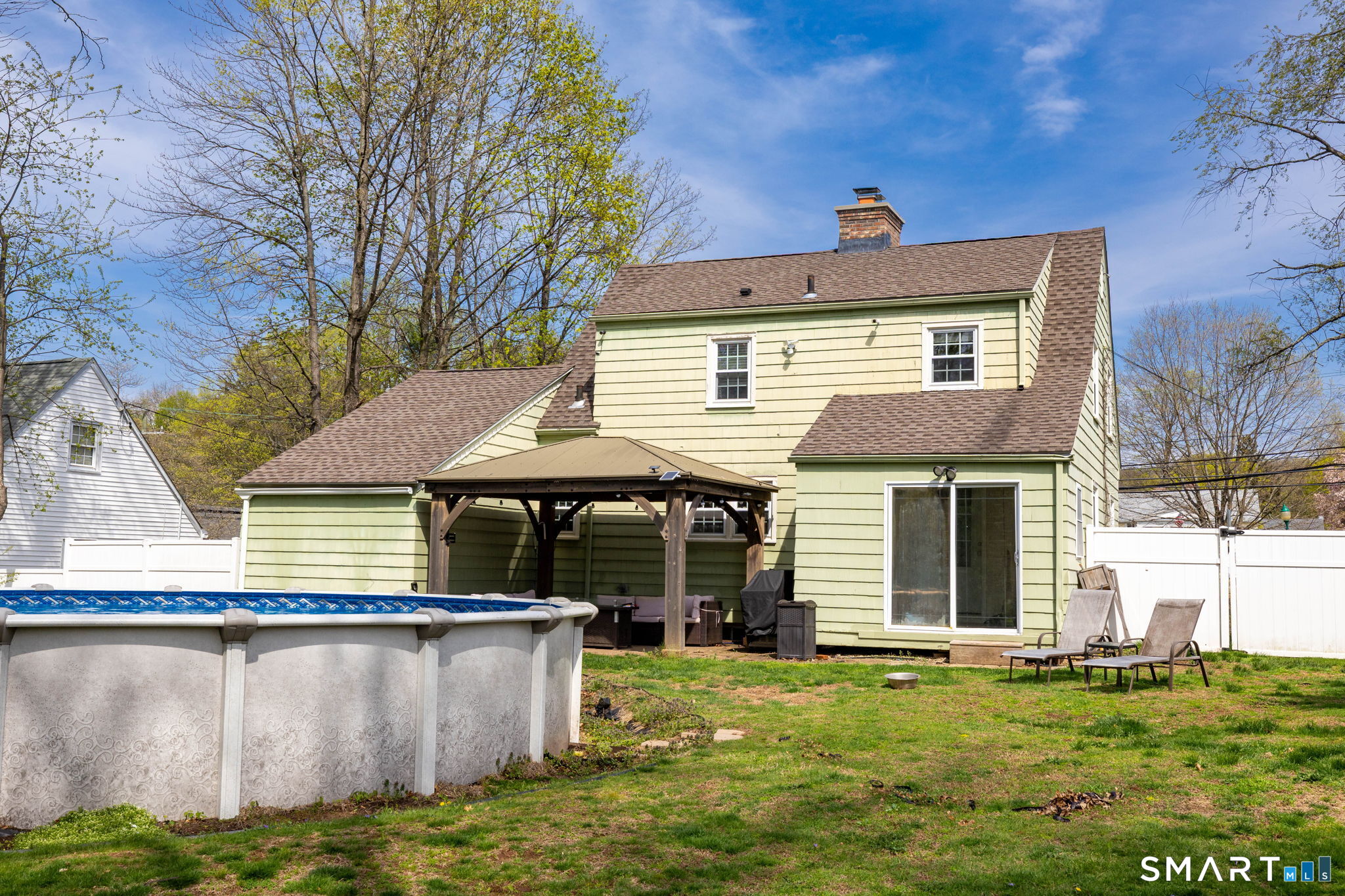 This charming 3-bedroom, 2-bath Cape in Newington offers the perfect blend of comfort, updates, and convenience. Tucked in close to shops, restaurants, and major routes, it makes everyday living easy while still giving you a cozy place to call home. Inside, you'll find a warm and inviting layout with a dedicated dining room and a comfortable living room with a wood-burning fireplace-perfect for relaxing evenings. The living space flows nicely into a breezeway, adding a flexible area that connects the home to the outdoors. Recent updates like fresh new carpeting, a newer roof, hot water heater and an updated driveway mean you can move right in without worrying about the big-ticket items. The kitchen has been thoughtfully updated with stainless steel appliances, granite countertops, and a stylish new backsplash, creating a modern space that's both functional and great for meal prep. Downstairs, a family room provides the ideal spot for movie nights, game days, or just hanging out. Step outside and you'll really see this home shine. The fully fenced backyard is set up for both relaxation and fun, featuring a gazebo seating area, a firepit, and a large above-ground pool-perfect for summer gatherings or quiet evenings under the stars