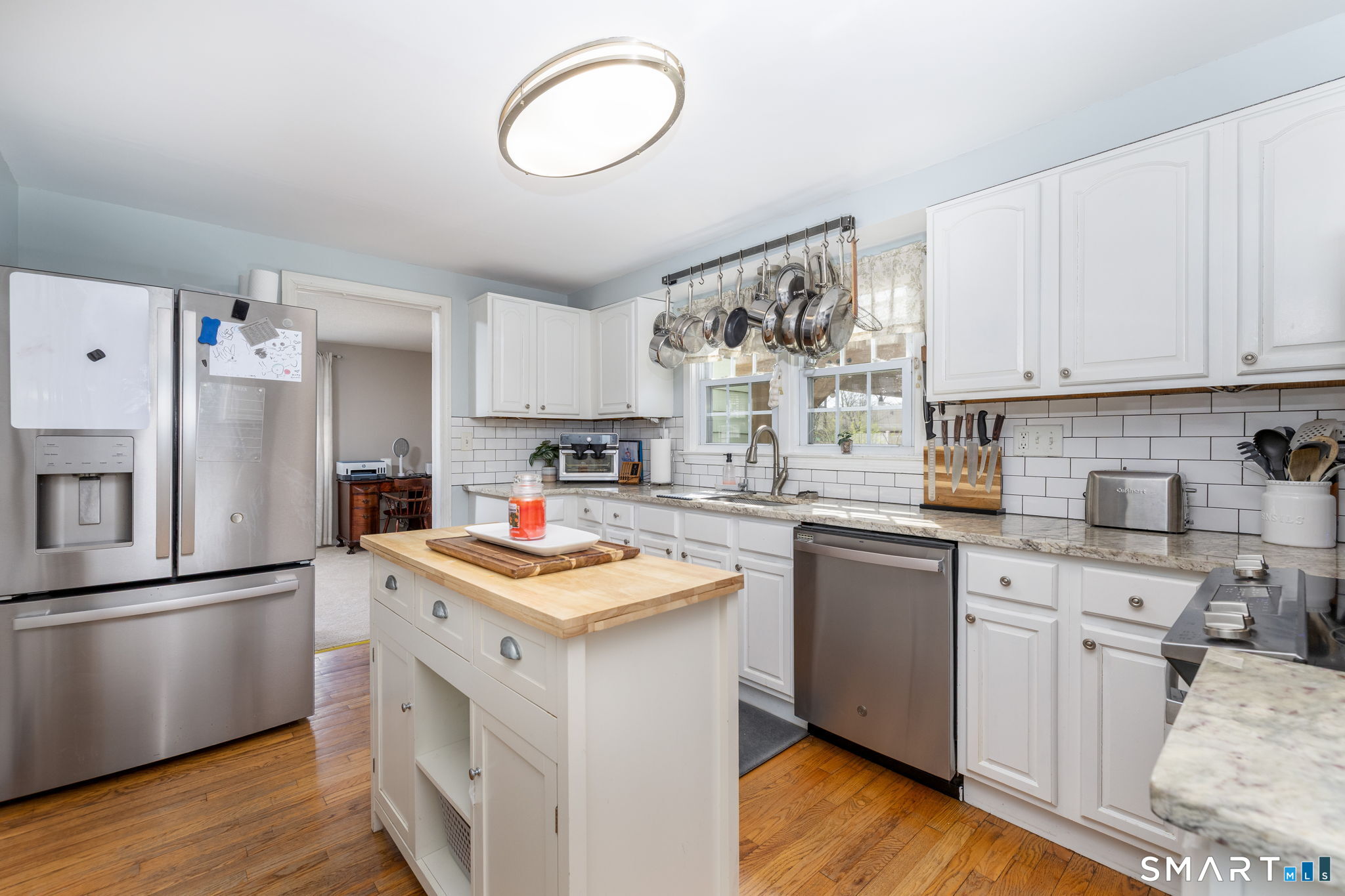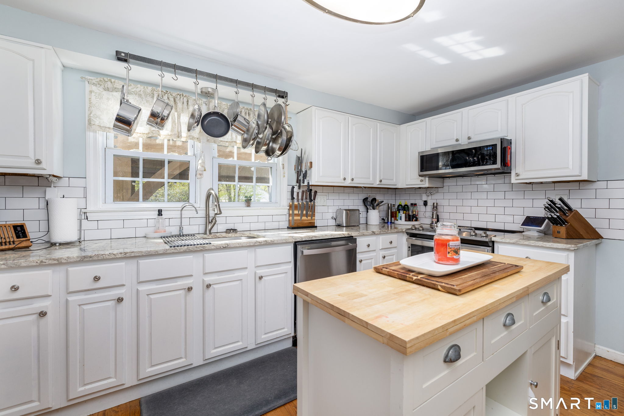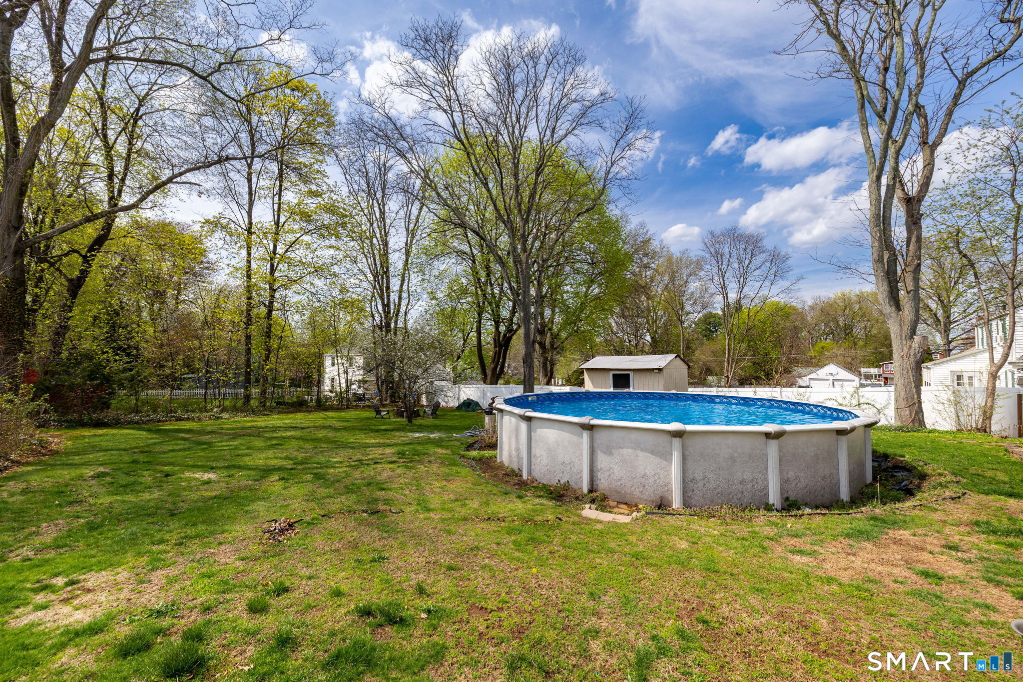 This charming 3-bedroom, 2-bath Cape in Newington offers the perfect blend of comfort, updates, and convenience. Tucked in close to shops, restaurants, and major routes, it makes everyday living easy while still giving you a cozy place to call home. Inside, you'll find a warm and inviting layout with a dedicated dining room and a comfortable living room with a wood-burning fireplace-perfect for relaxing evenings. The living space flows nicely into a breezeway, adding a flexible area that connects the home to the outdoors. Recent updates like fresh new carpeting, a newer roof, hot water heater and an updated driveway mean you can move right in without worrying about the big-ticket items. The kitchen has been thoughtfully updated with stainless steel appliances, granite countertops, and a stylish new backsplash, creating a modern space that's both functional and great for meal prep. Downstairs, a family room provides the ideal spot for movie nights, game days, or just hanging out. Step outside and you'll really see this home shine. The fully fenced backyard is set up for both relaxation and fun, featuring a gazebo seating area, a firepit, and a large above-ground pool-perfect for summer gatherings or quiet evenings under the stars