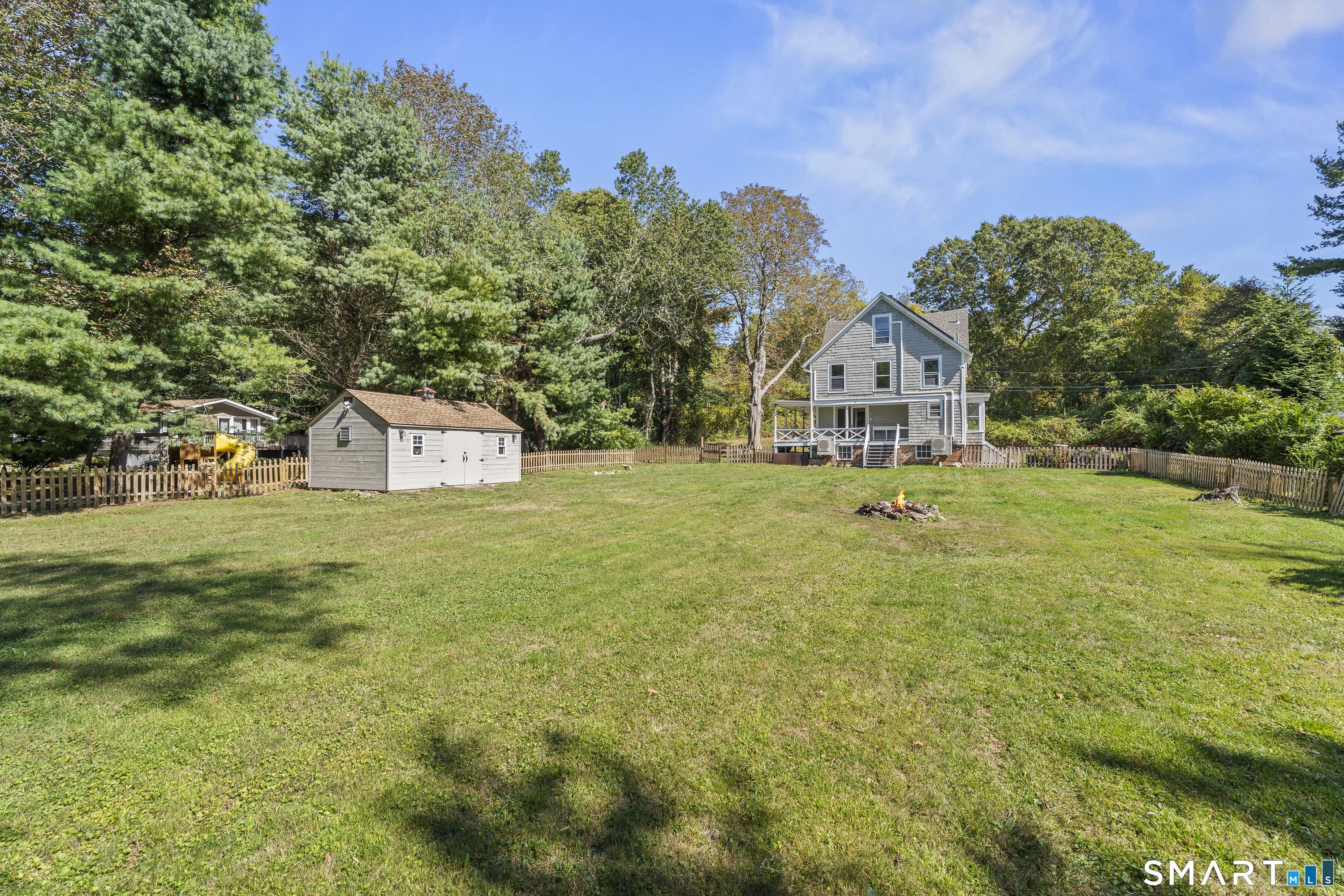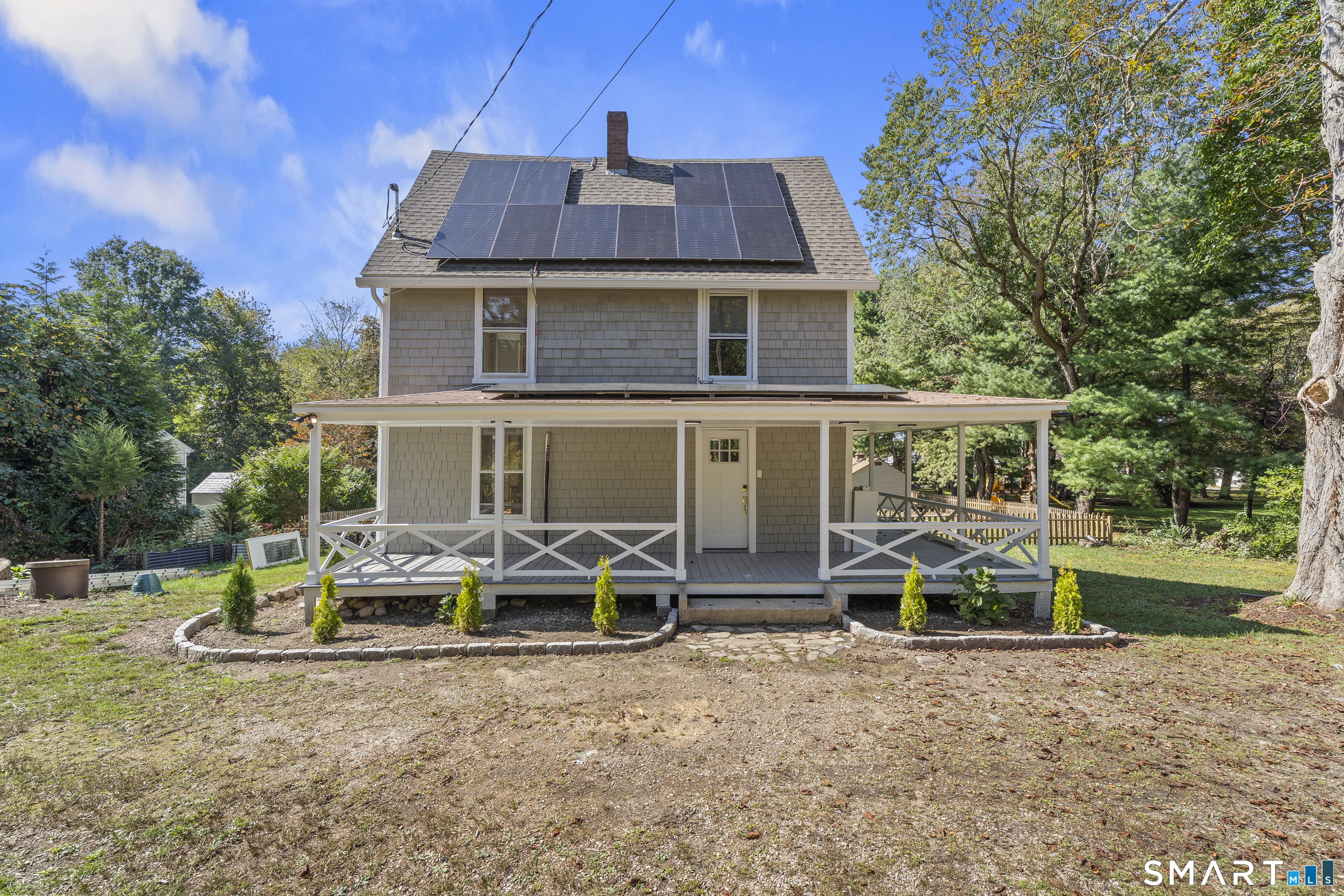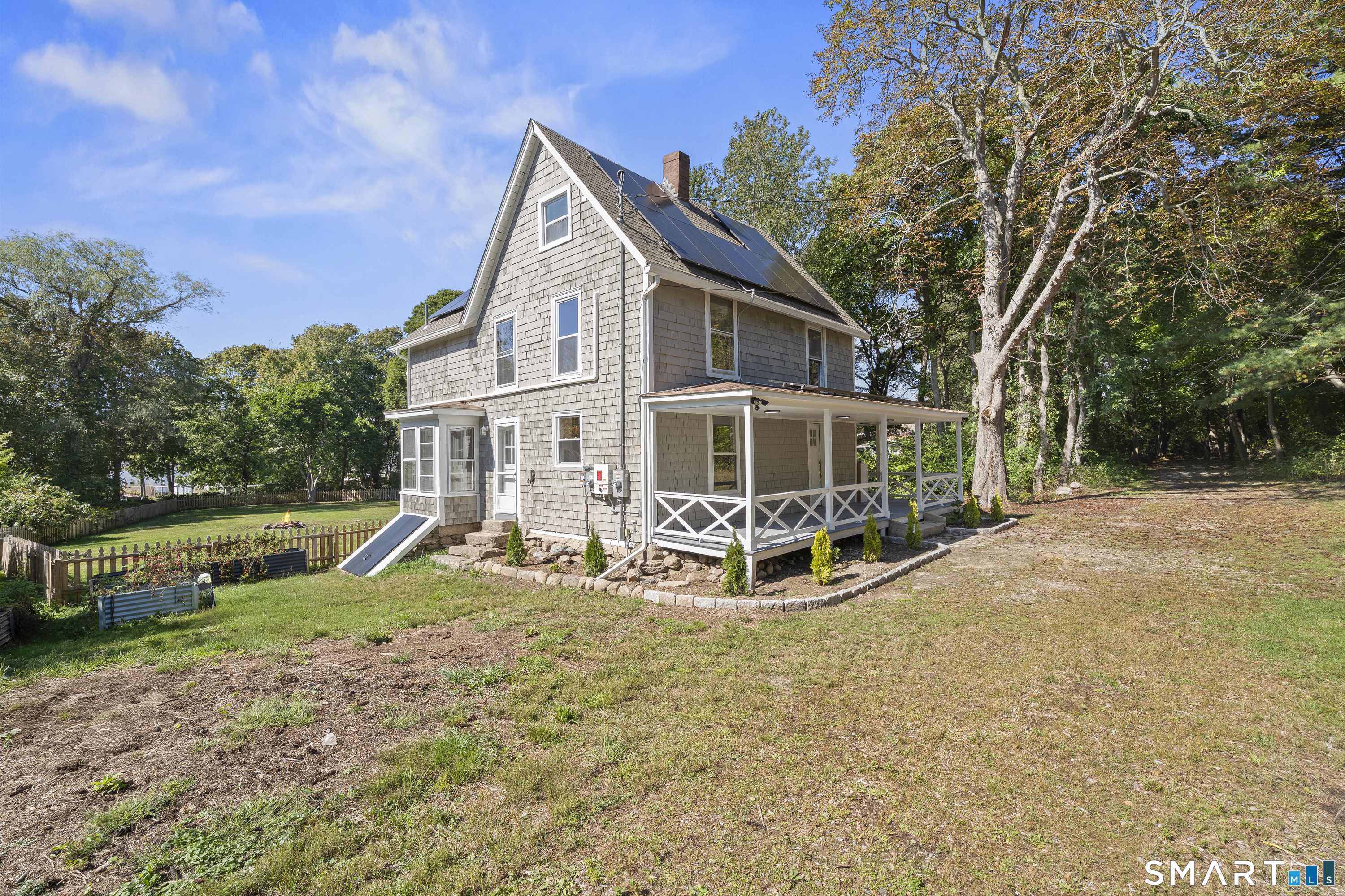Private retreat in Waterford steps from the Niantic River! This adorable updated Colonial on a dead end w/ private driveway will give the feeling of peace, especially from the HUGE wraparound porch. Westward water views of the bay, and a short walk down to Mago point plus Downtown Niantic! A huge cleared backyard with available shed storage, and fully fenced in too! Enter and be greeted by gleaming refinished hardwood floors, and a sightline directly out the rear, you instantly feel like home! Remodeled kitchen w/ beautiful Quartz countertops, custom tile backsplash, new appliances, and a thruway into the dining room abundant w/ natural light, a side door to a garden area, & powder room (with laundry!) French doors off the living room out to the rear, perfect for remaining left open letting in a salt air breeze. On the 2nd floor, 3 br's w/ a remodeled full bath, and on the 3rd floor two more br's and another custom full bath w/ jacuzzi tub! All wood floors have been refinished, and new LVP flooring installed as well throughout. Oil BB heat along with mini-split systems on each floor! Don't miss this chance at peace, privacy, and perspective in Waterford!
