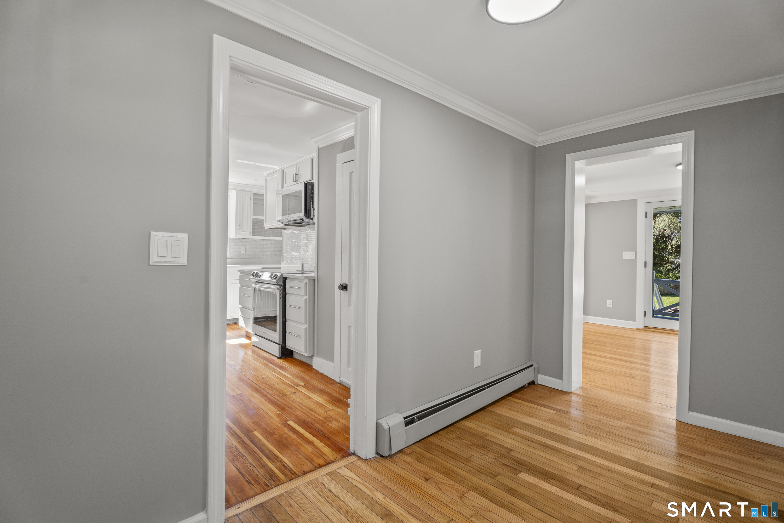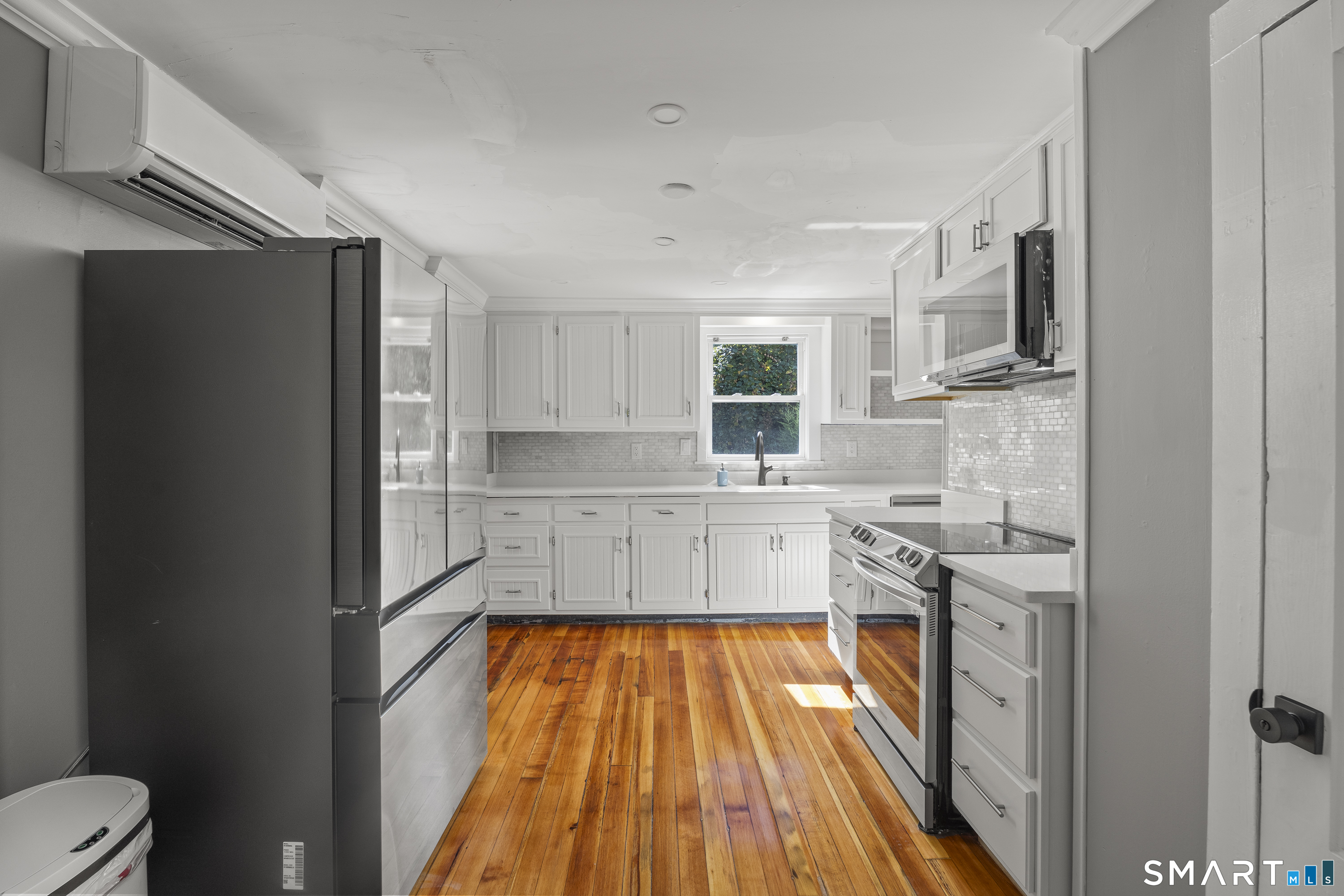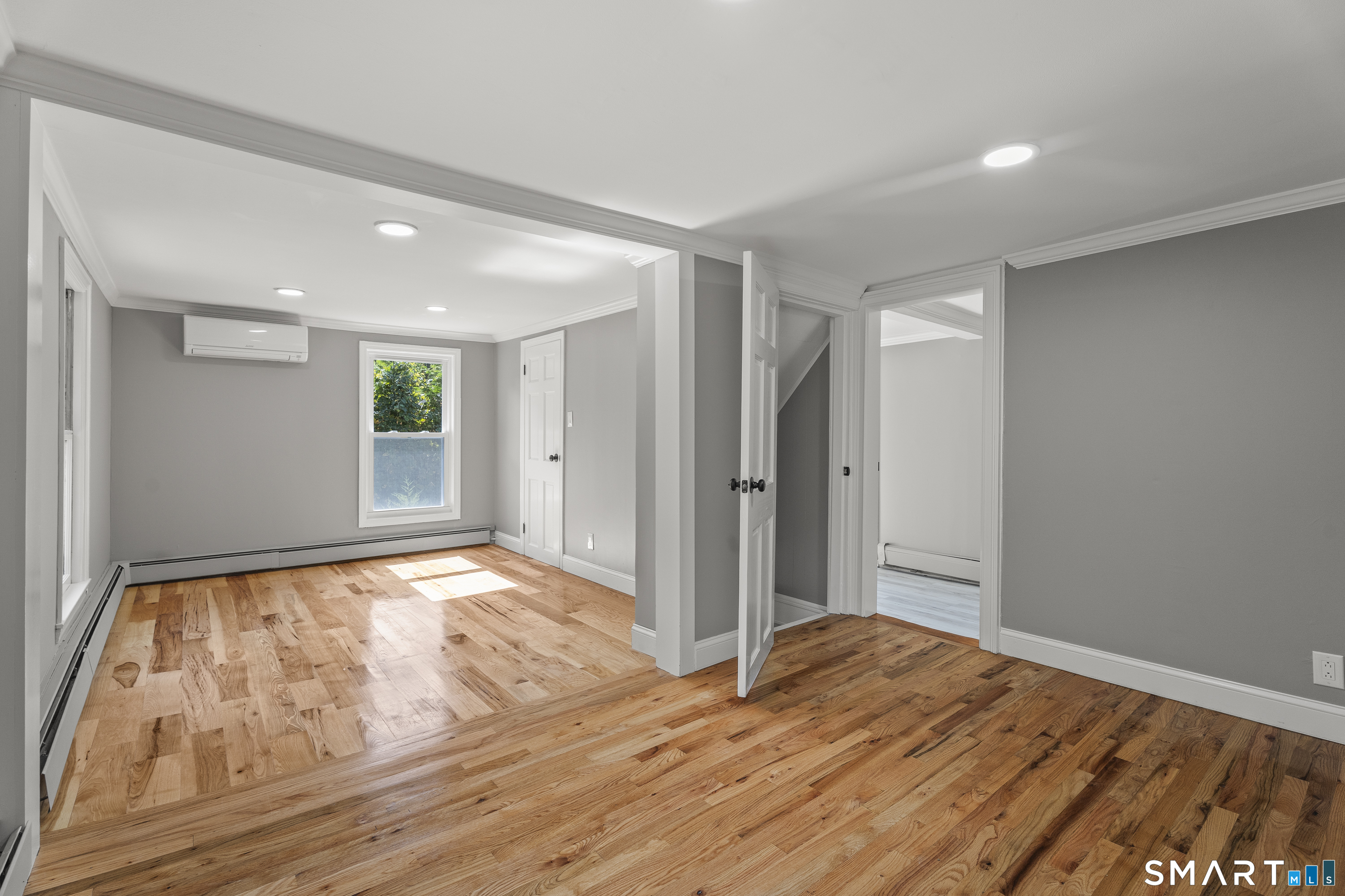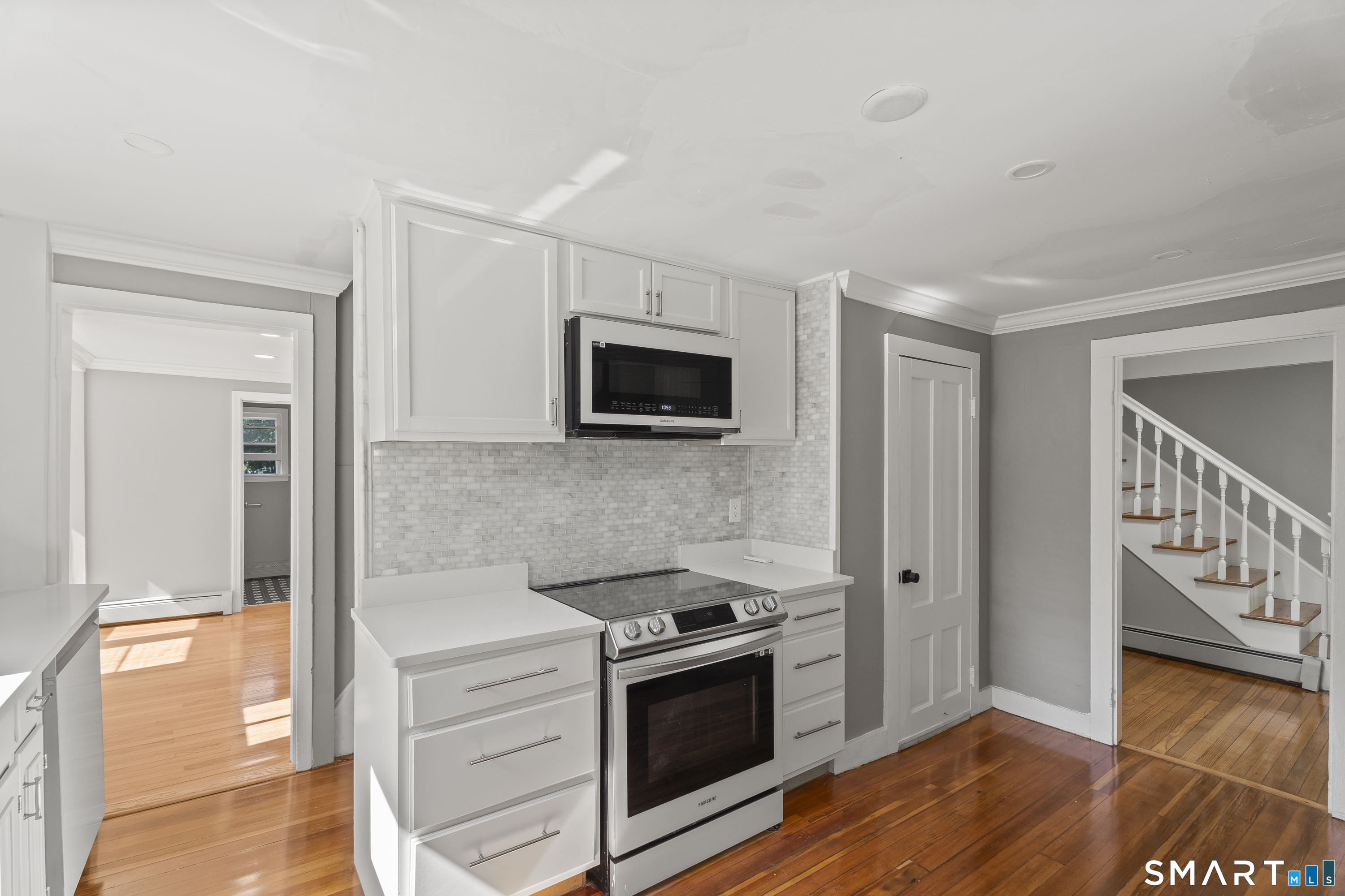 Private retreat in Waterford steps from the Niantic River! This adorable updated Colonial on a dead end w/ private driveway will give the feeling of peace, especially from the HUGE wraparound porch. Westward water views of the bay, and a short walk down to Mago point plus Downtown Niantic! A huge cleared backyard with available shed storage, and fully fenced in too! Enter and be greeted by gleaming refinished hardwood floors, and a sightline directly out the rear, you instantly feel like home! Remodeled kitchen w/ beautiful Quartz countertops, custom tile backsplash, new appliances, and a thruway into the dining room abundant w/ natural light, a side door to a garden area, & powder room (with laundry!) French doors off the living room out to the rear, perfect for remaining left open letting in a salt air breeze. On the 2nd floor, 3 br's w/ a remodeled full bath, and on the 3rd floor two more br's and another custom full bath w/ jacuzzi tub! All wood floors have been refinished, and new LVP flooring installed as well throughout. Oil BB heat along with mini-split systems on each floor! Don't miss this chance at peace, privacy, and perspective in Waterford!