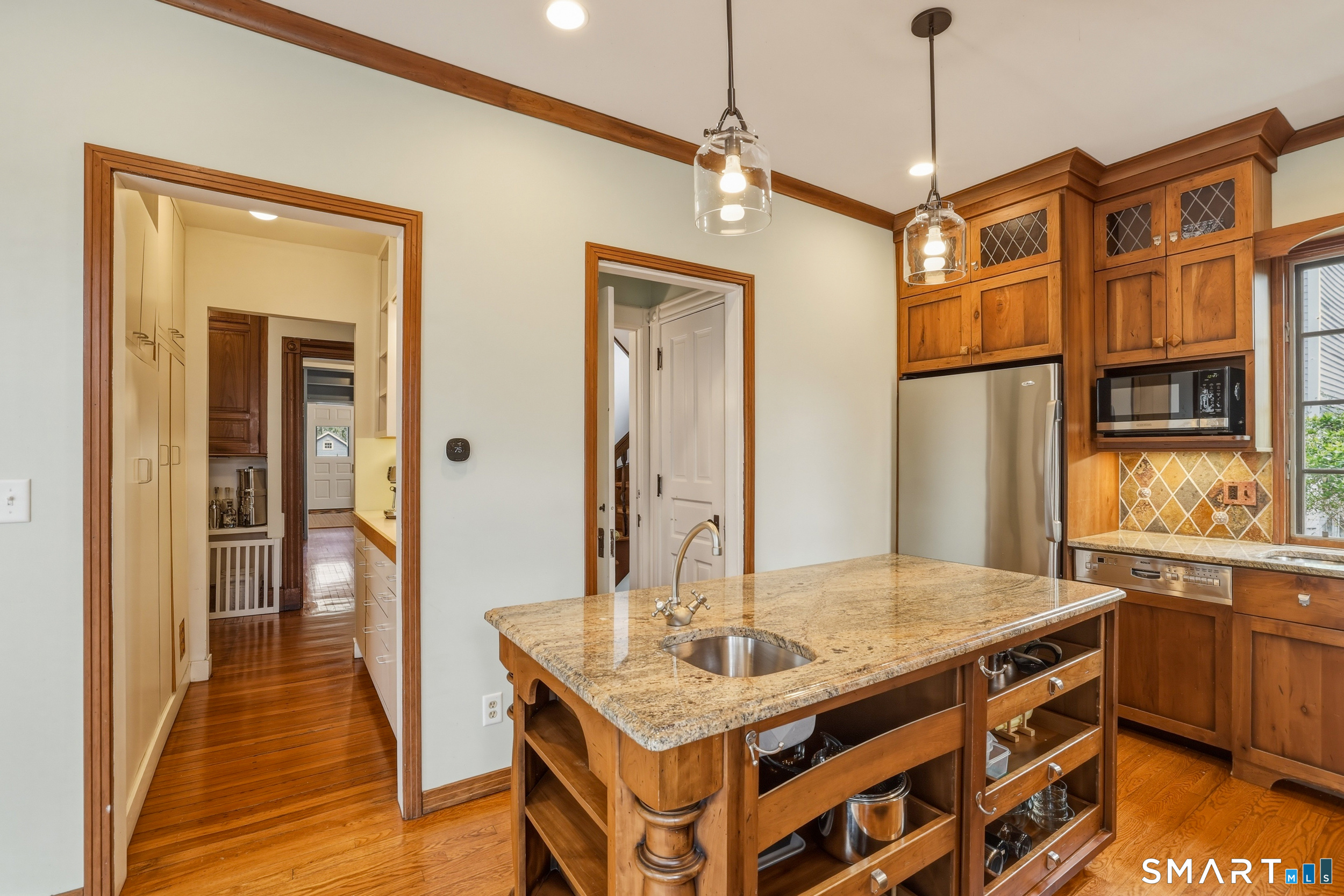 Rare opportunity in New Haven's sought-after East Rock neighborhood offering a spacious main residence plus potential for a separate apartment-ideal for owner-occupants, extended living, or rental income. The main home features 10 rooms, including 5 bedrooms and 3.1 baths, with beautiful original details such as leaded and stained glass, Palladian windows, custom millwork, pocket doors, and hardwood floors. Gracious living spaces include formal living and dining rooms, a family room with built-ins, and an updated kitchen with cherry cabinetry, granite countertops, center island, Wolf range, and butler's pantry. A bright south-facing sunroom opens to a multi-level deck and private outdoor space. With a slight modification of the now Laundry room converted back to the Apartment kitchen,The separate 3-room apartment, on the second floor, would include a living room, kitchen, bedroom, and full bath with private access from the back stair, making it perfect for rental, guests, or au pair. Recent upgrades to the property include major electrical and plumbing improvements, high-efficiency gas heating, multi-zone mini-split cooling, improved insulation, EV charging station, and a sauna outbuilding. A unique property offering space, character, and flexibility in one of New Haven's most desirable neighborhoods. *Floor plans are available as attachments for your review* Also listed a single family home MLS#24167701