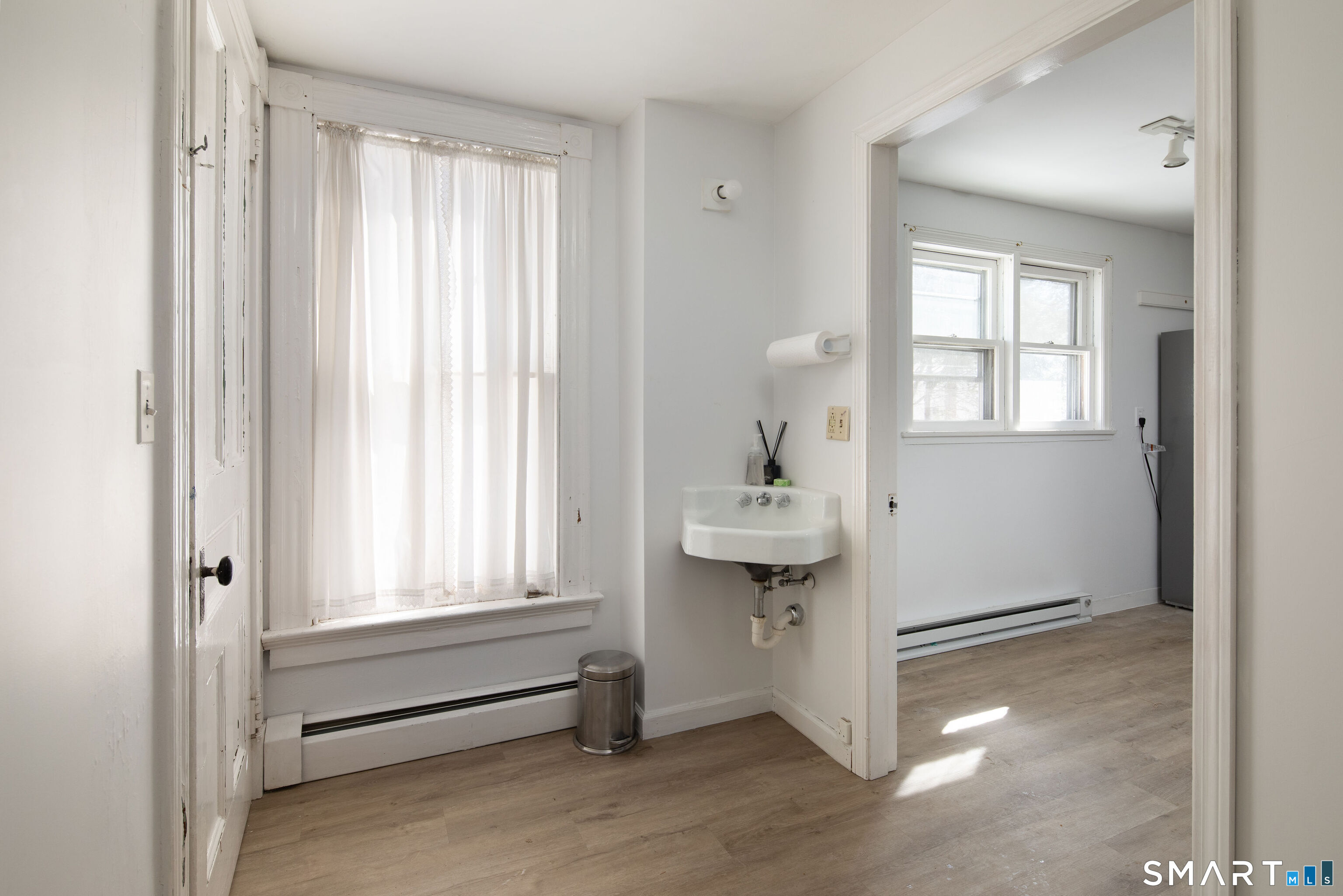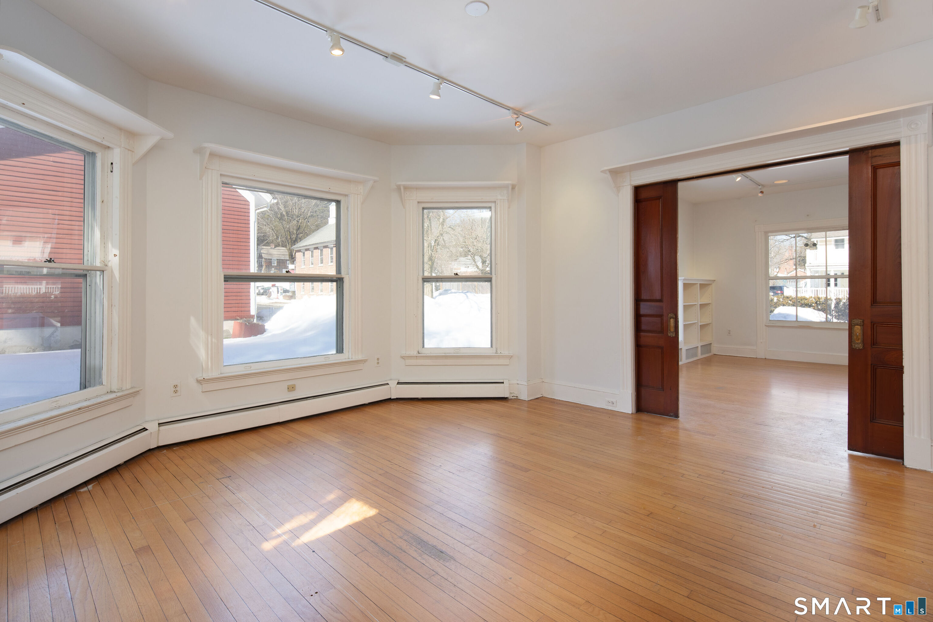 First-floor commercial space available in the Village of Salisbury with great curb appeal, large windows, and great exposure on Academy Street. Charming front porch entry leads to 2 separate rooms and a Kitchen, half bath, and mudroom in the back. Small parking area behind the building is included.
