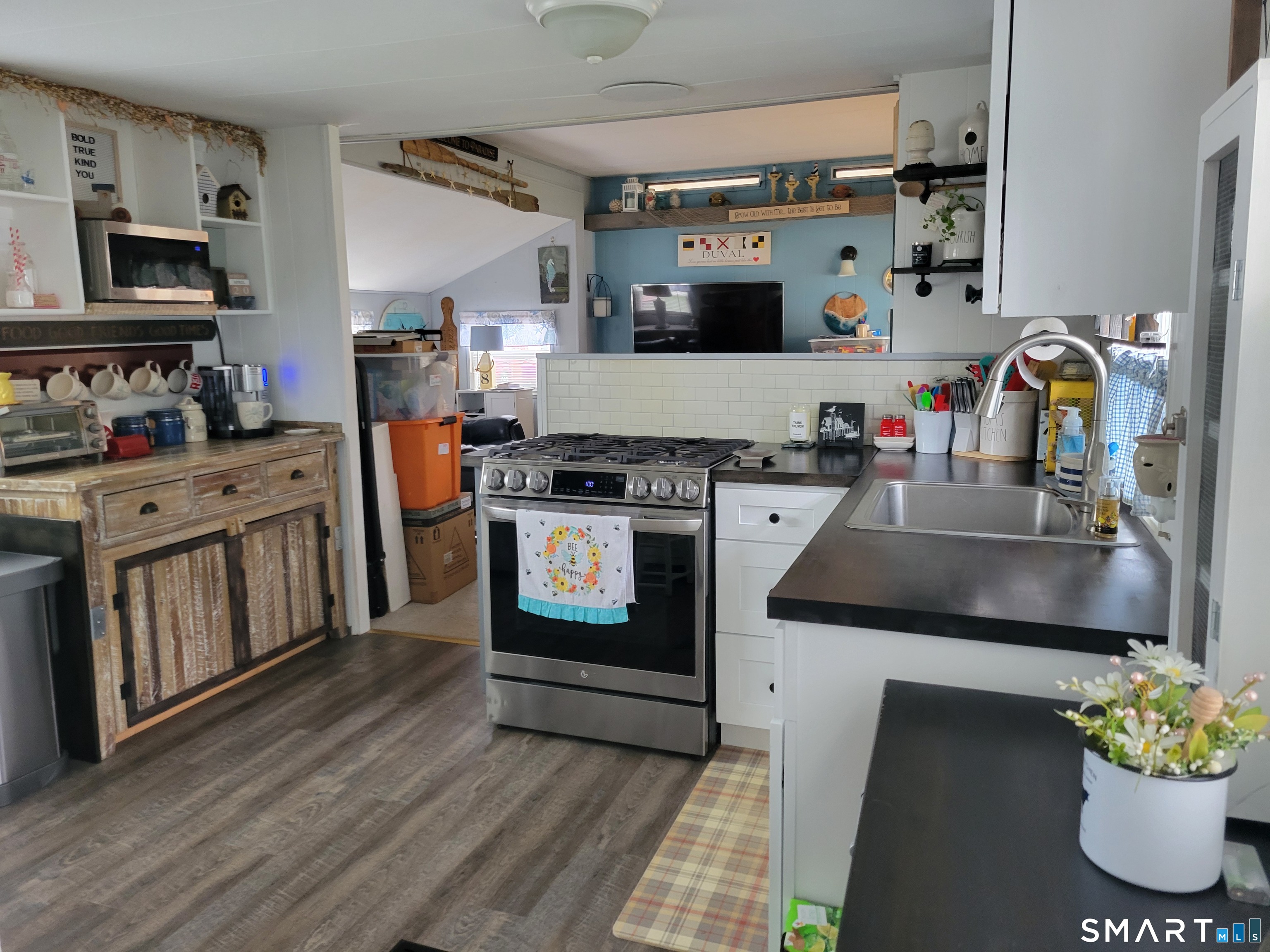 New listing and it won't last. This adorable manufactured home has been lovingly renovated. New kitchen appliances, flooring at some point, new kitchen cabinets and front door. Furnace and hot watertank are not original. Very nice covered front entry porch. Unit has lots of closets. The unit was a 3 bedroom but one bedroom was converted into a walkin utility room. Really nice corner lot. Shed and centracl air included. Ground lease is $660.00 which included water, septic and trash pickup. Some dogs permitted. Additional charge of $10 per dog. Are buyers must apply to RCI management.