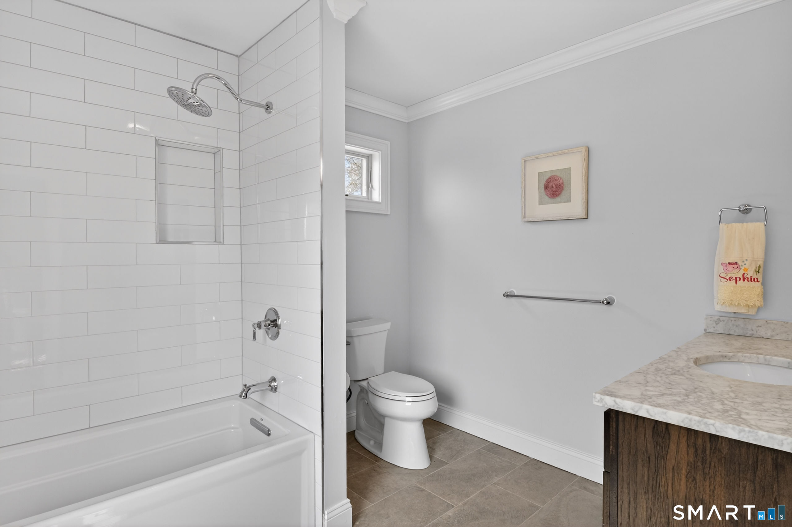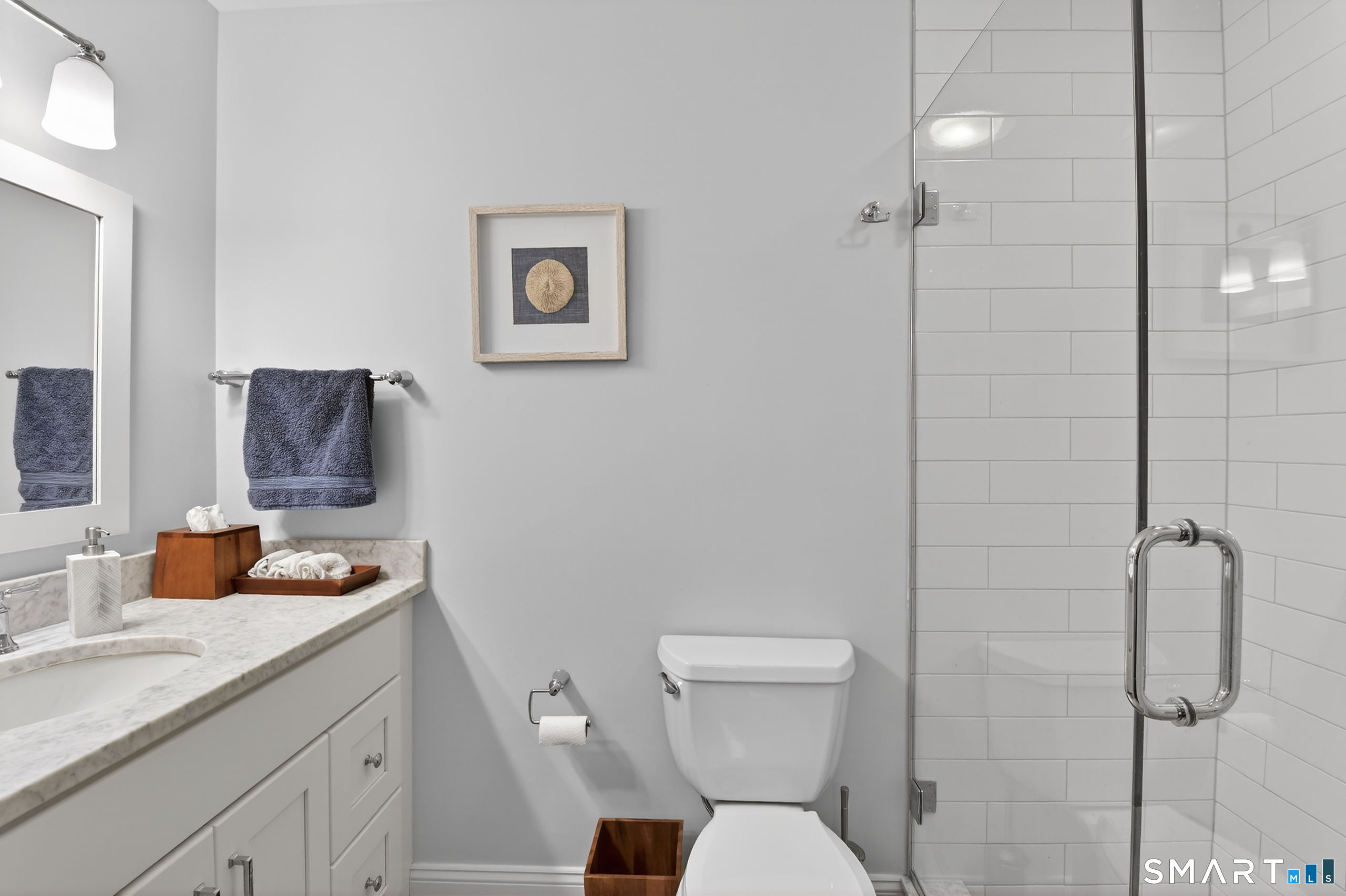 Coastal Living in Woodmont - Steps to the Beach! Welcome to Woodmont! This stunning 4-bedroom, 4-bath coastal home is perfectly situated on a quiet one-way street just two short blocks from Woodmont's beautiful sandy beaches. This home delivers the relaxed beach life style buyers are searching for. An inviting front porch sets the tone as you enter into a thoughtfully designed open-concept main level. The spacious living room with fireplace flows seamlessly into a generously sized dining area and an impressive gourmet kitchen featuring a large center island, quartz countertops, custom tile backsplash, and stainless steel appliances. Sliders lead to a covered deck, ideal for indoor-outdoor living. The main level also includes a en-suite bedroom with full bath, an additional bedroom with water views, and a guest bath-perfect for flexible living or hosting guests. Upstairs, you'll find two bedrooms, both with water views including, an enviable primary suite with a custom walk-in closet and a beautifully appointed full bath with a custom tile shower. A second bedroom also features its own full bath, to ensure privacy. The partially finished lower level is a great home office with abundant storage. Hardwood flooring and high-end finishes are showcased throughout the home. Step outside to a beautifully landscaped private yard with room for a pool. Enjoy walkability to restaurants, shops, and the Woodmont recreational area. A short ride to Metro North/New York City train.