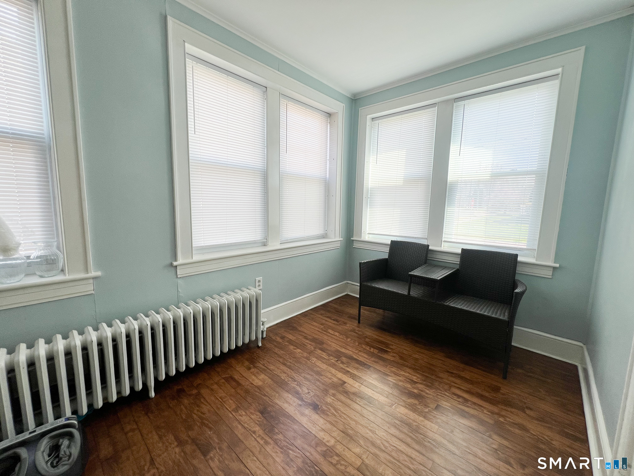 Beautiful first floor, two-bedroom unit featuring gleaming hardwood floors, a living room, sun room/office space. Eat in kitchen with stainless steel appliances. Washer/dryer included. Separate enclosed porch. Off-street parking. Conveniently located near shopping and highways. No smoking, no pets. Available July 1st.