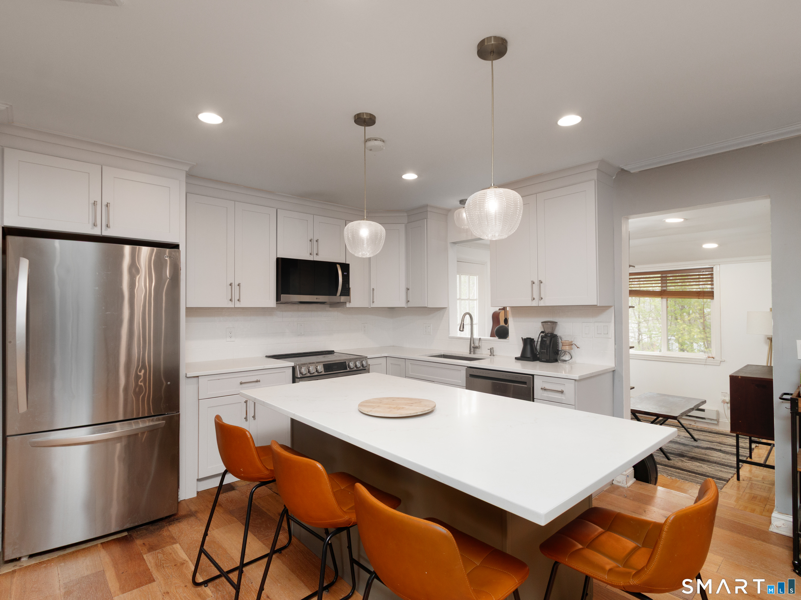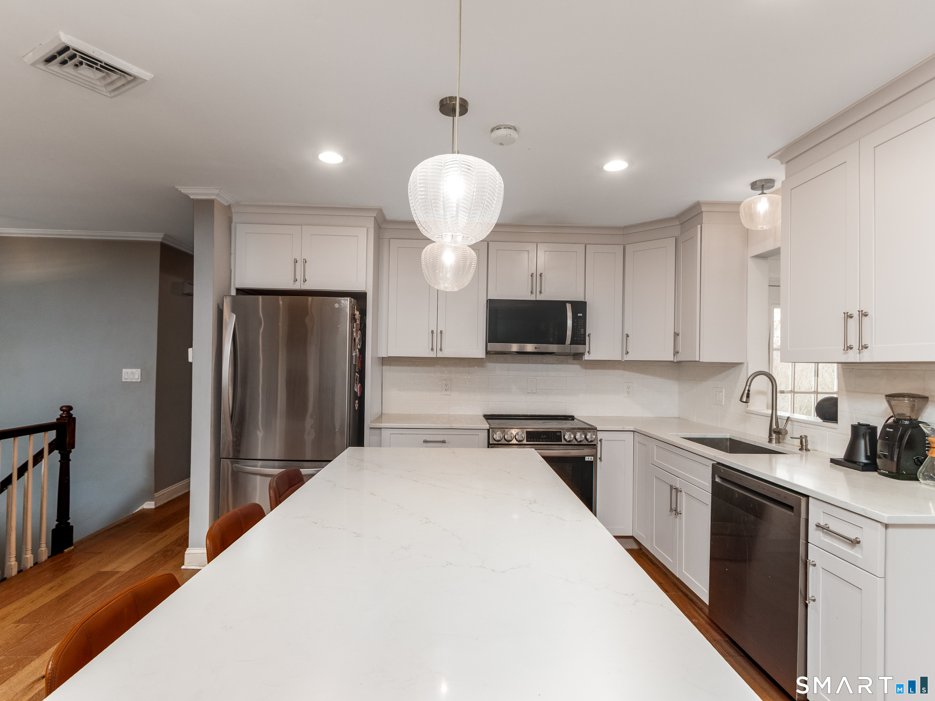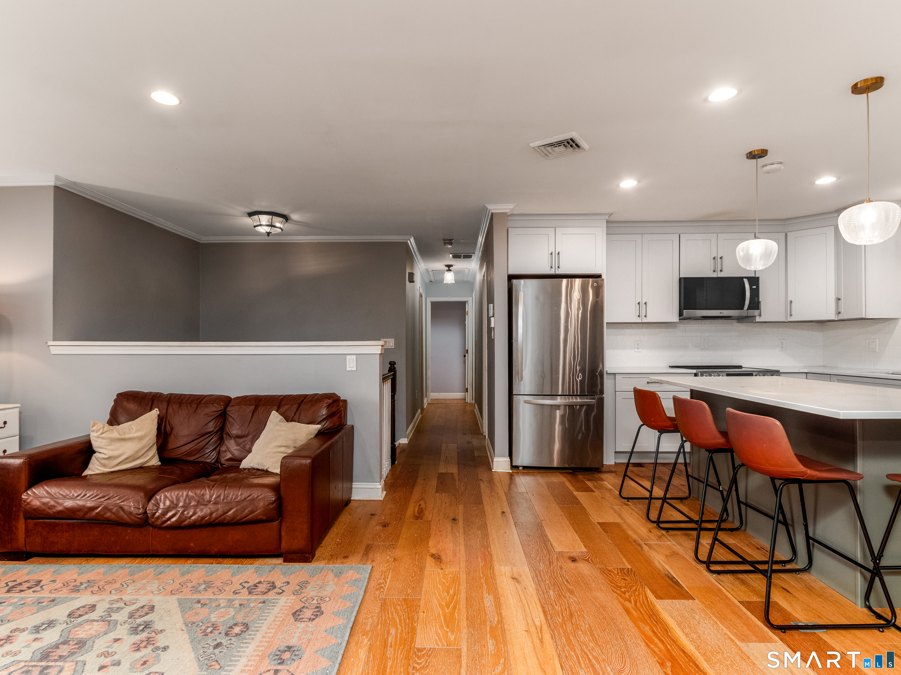 Welcome to this move-in ready raised ranch featuring an updated kitchen, open floor plan, 2-car attached garage, central air and so much more! The kitchen is recently updated with new cabinets, stainless steel appliances and quartz countertops. The kitchen is open to the dining area and living room, complete with a wood burning fireplace. The main living spaces have hardwood flooring and lots of natural light. The layout is perfect for everyday living and entertaining. Just off the kitchen, you'll find a bonus space that would work perfect for a home office, den or playroom. The main level offers three bedrooms, including a spacious and updated primary suite, along with a full hall bathroom. The lower level expands your living space with a second living room, a full bathroom with laundry and 2 additional rooms that offer endless possibilities. This level also has direct access to your 2-car garage and backyard patio. Outside you can enjoy a fully fenced backyard and a location that's hard to beat!! Just minutes to Kendrick Park, the town center, shopping, golf, schools, and major highways.