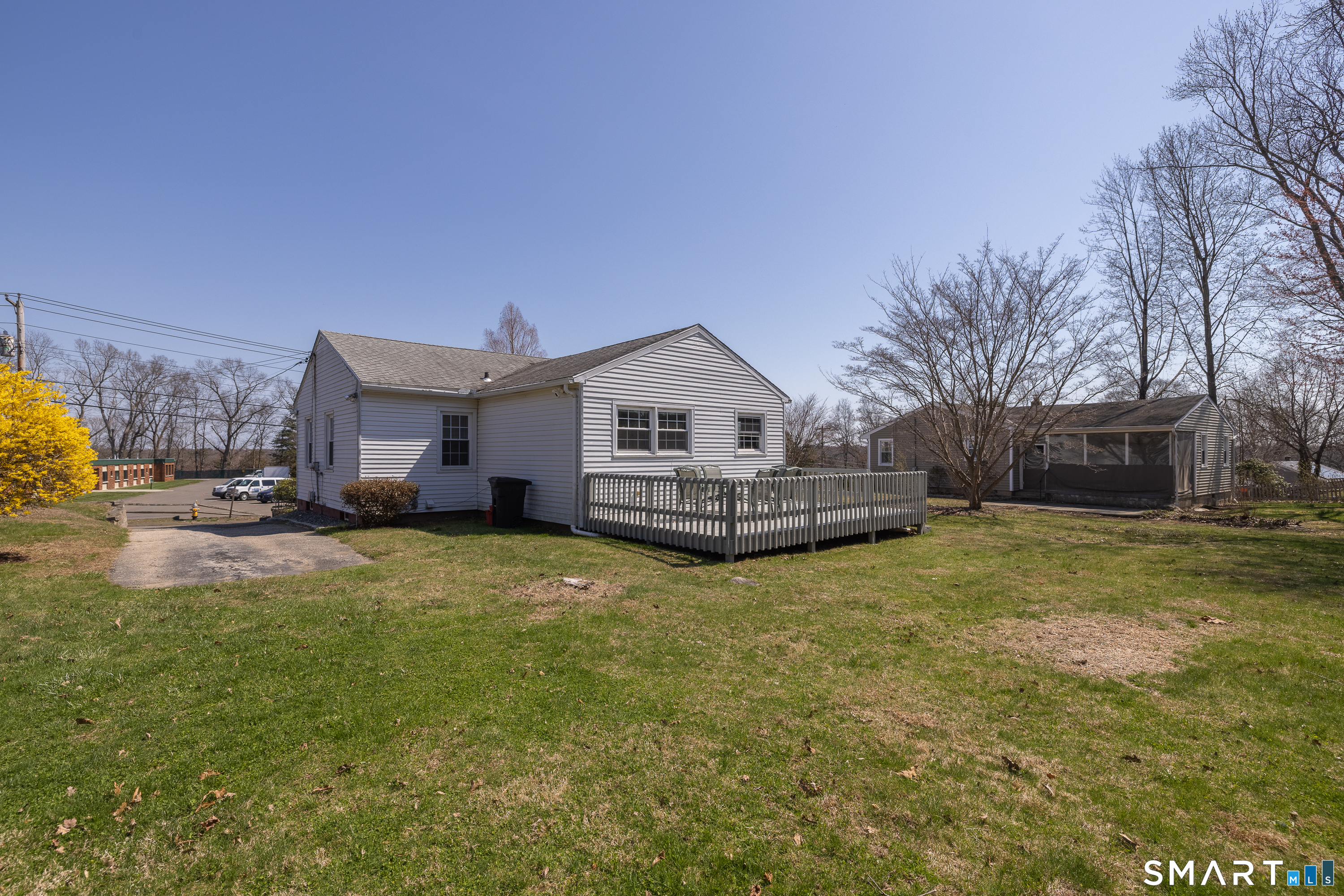 Welcome to this charming Derby, CT Ranch-style home, in the HILLTOP section of town. Located on a nicely maintained .23 acre lot. This bright 3-bedroom, 1-bath residence offers 1,164 sq ft of living space with hardwood floors throughout most of the home, as well as an updated roof and mechanicals for worry-free ownership. The large deck off the back is ideal for entertaining or relaxing while overlooking a freshly landscaped yard. A handy shed provides extra storage, and the unfinished lower level offers ample potential to add significant living space or serve as organized storage. Off-street parking adds convenience for residents and guests. Located in a friendly neighborhood with easy access to local amenities, this home delivers move-in readiness with room to personalize and still make it your own. Don't miss this opportunity, make your appointment today!