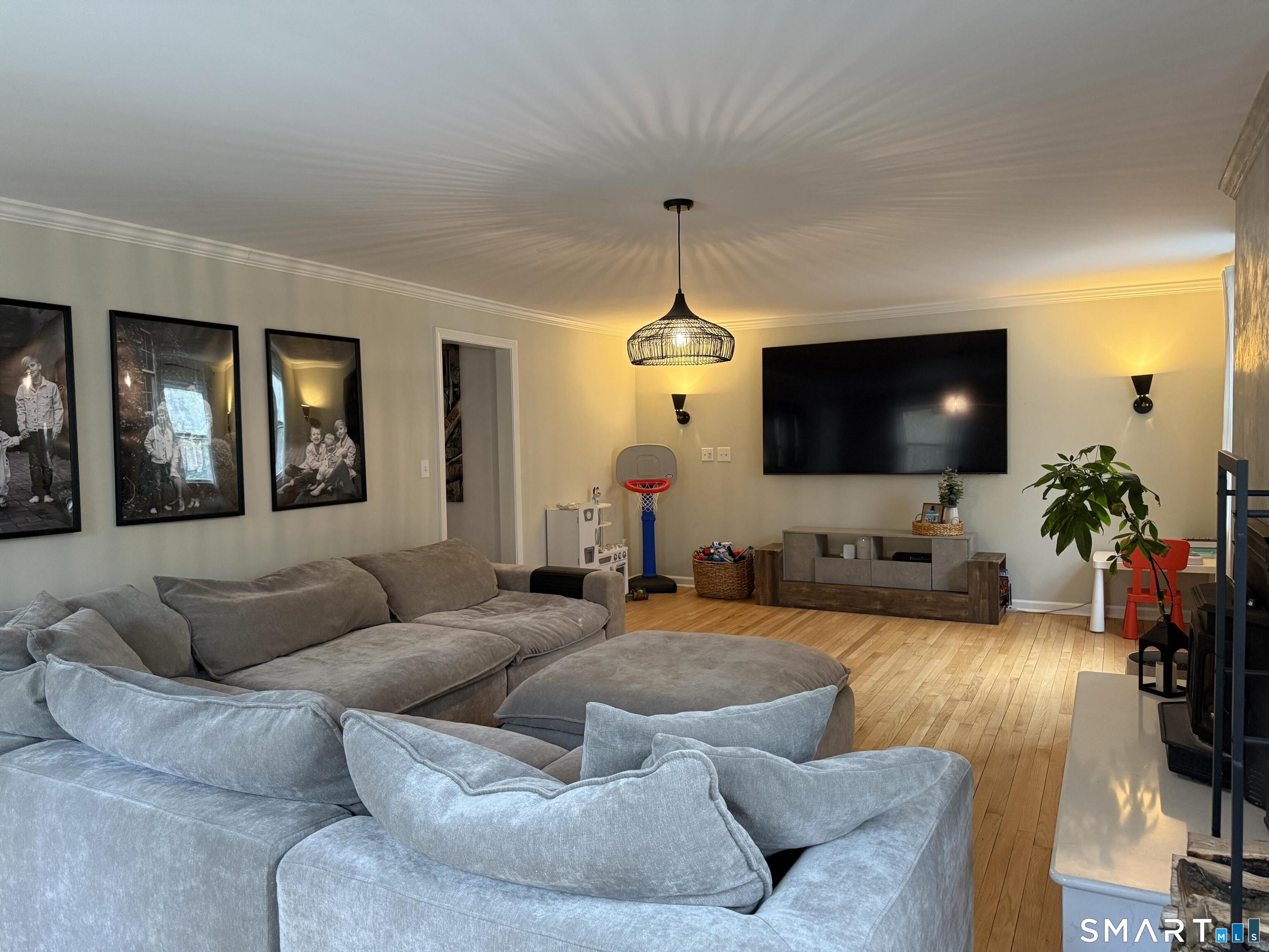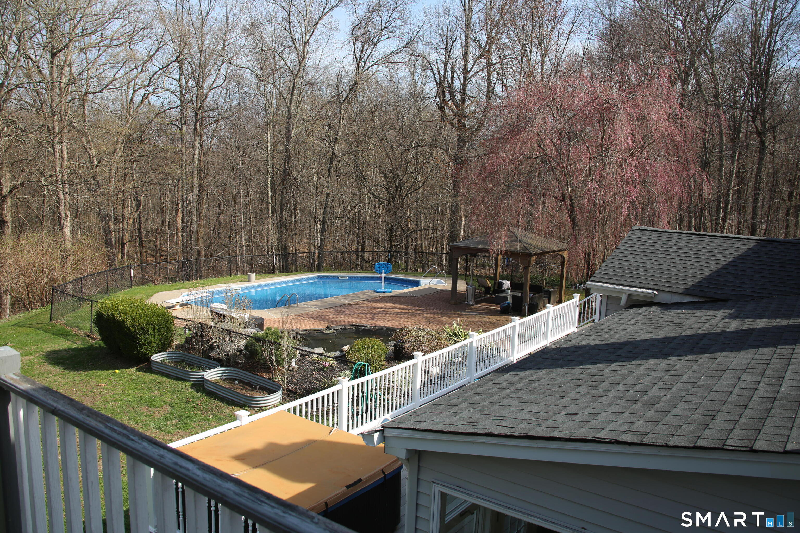 Oversized colonial with a unique layout, gourmet kitchen, and potential in-law setup with over 5,000 sq ft of living space. Privately set at the end of a cul-de-sac on 1.63 acres with an in-ground pool, patio, deck, koi pond, and level yard-great for outdoor living and entertaining. Features 4 bedrooms, 4 full baths, finished lower level, and detached 2-car garage. Main level includes living room with fireplace and custom woodwork, additional sitting room with fireplace, spacious dining area, kitchen with granite counters, hardwood floors, full bath, and laundry. Large family room with bar, sink, dishwasher, and fridge. Upper level includes primary suite, 2 bedrooms, plus separate-entry bedroom with full bath-suited for in-law, office, or guest use. Newer roof and furnace. A must-see in Woodbridge!
