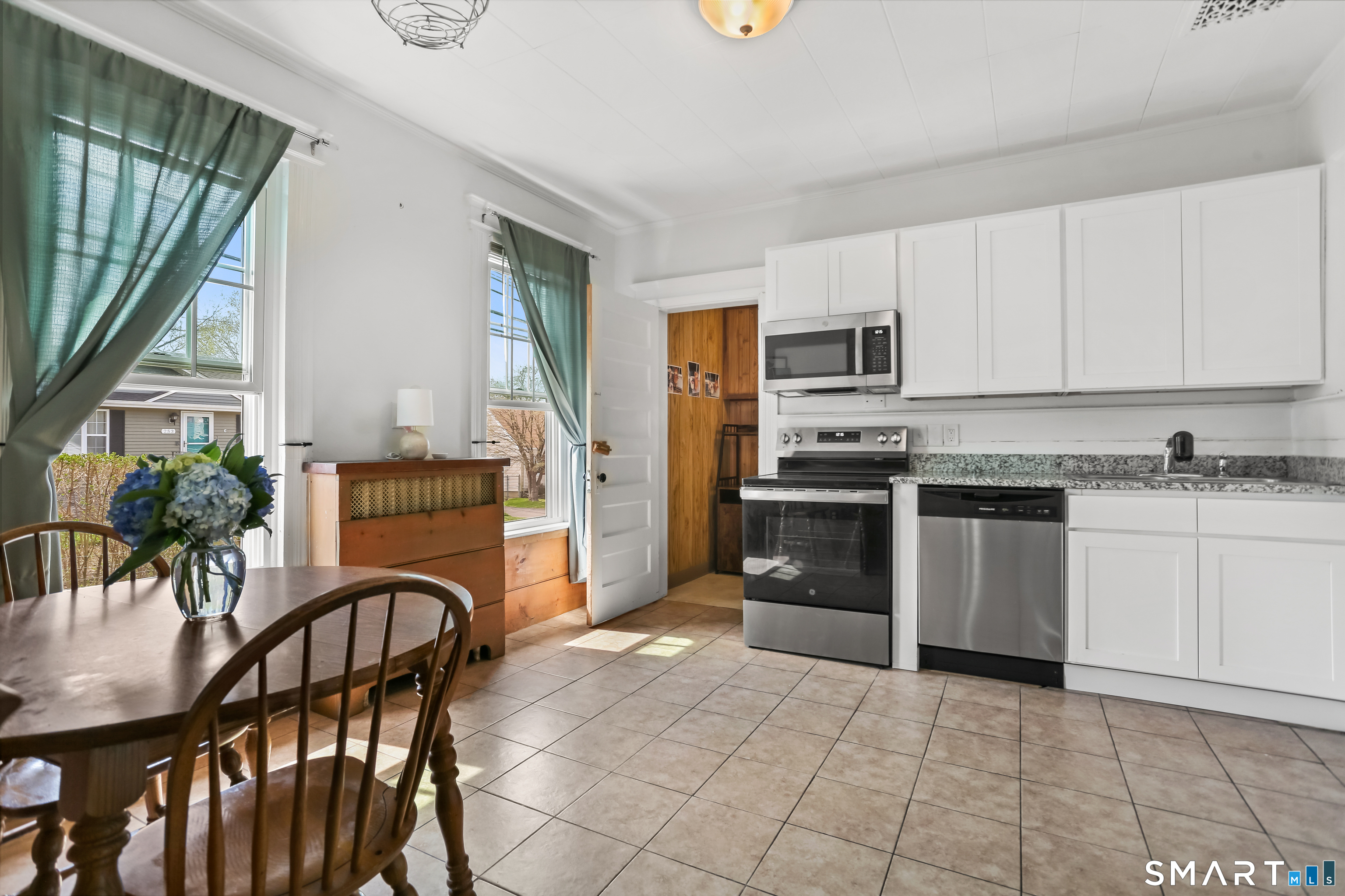 Step into this sweet Cape style home, through a welcoming sun porch. Offering 3 bedrooms and 2 bathrooms the layout is both practical and flexible with the convenience of main-level laundry. Charming woodwork adds character throughout and there are hardwood floors under the carpet. With a mudroom/pantry off of the kitchen, generous closets, basement and walk up attic this home provides ample room for storage, organization and easy living. Sitting on a corner lot with ample parking this home has a cozy, down to earth feel full of character and is ready for your personal touches.