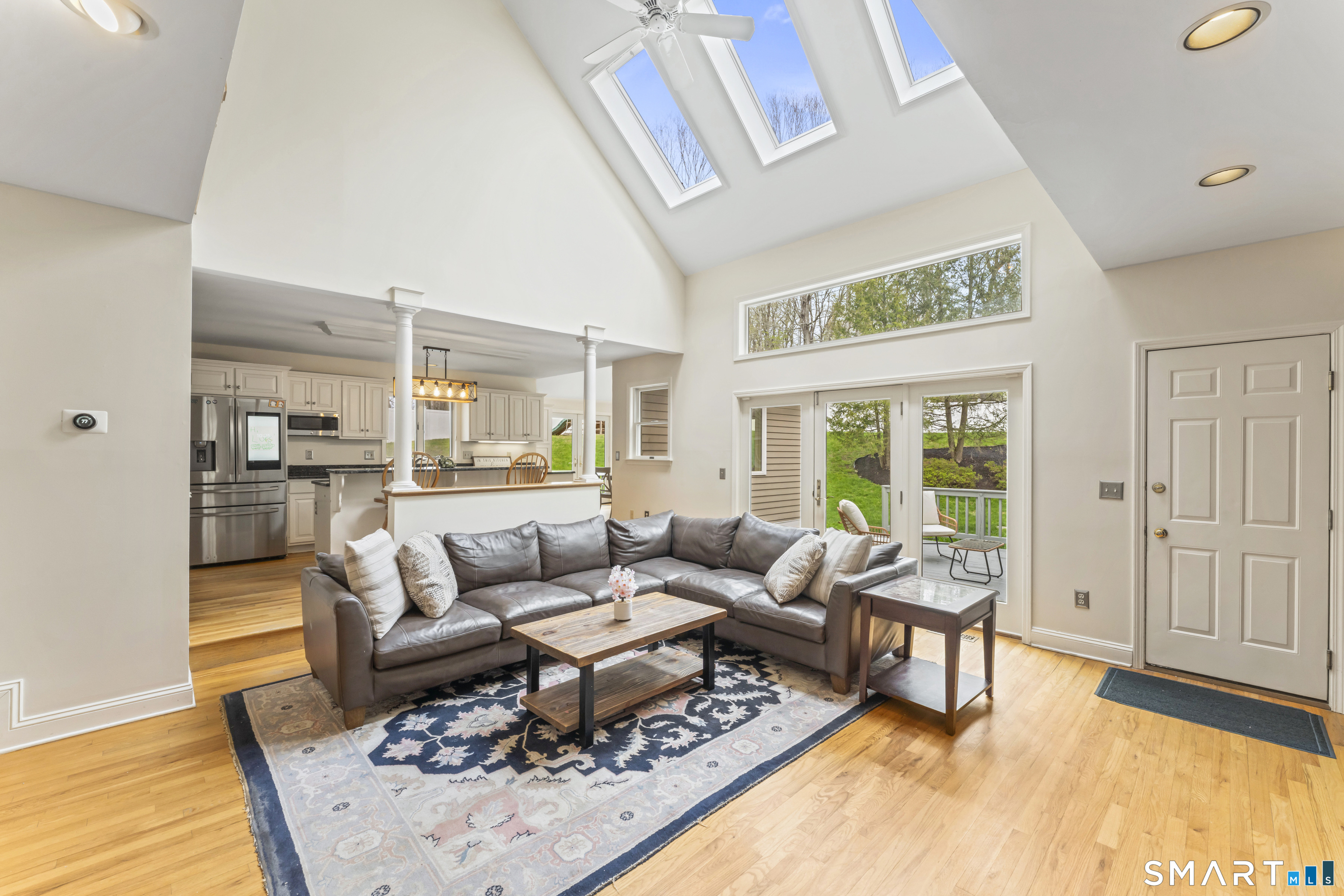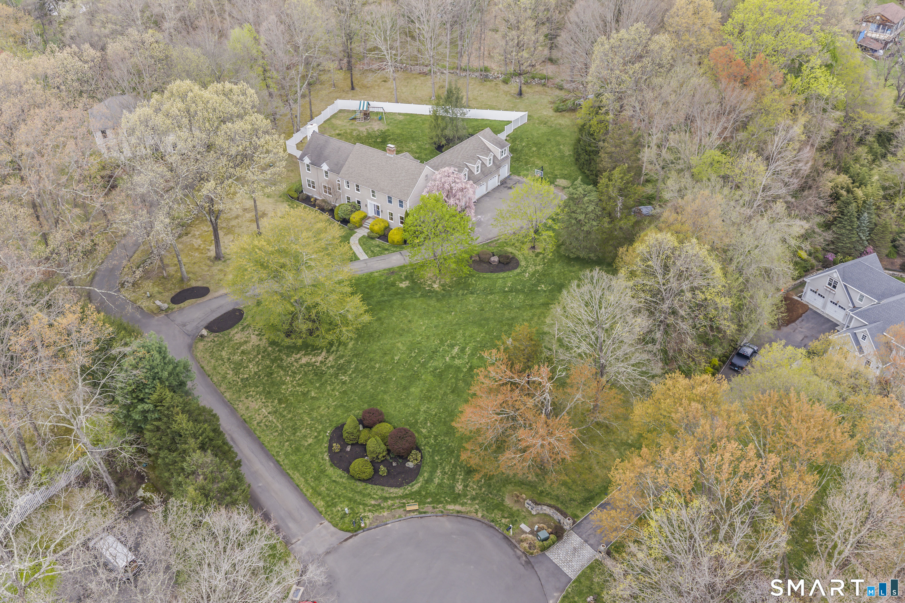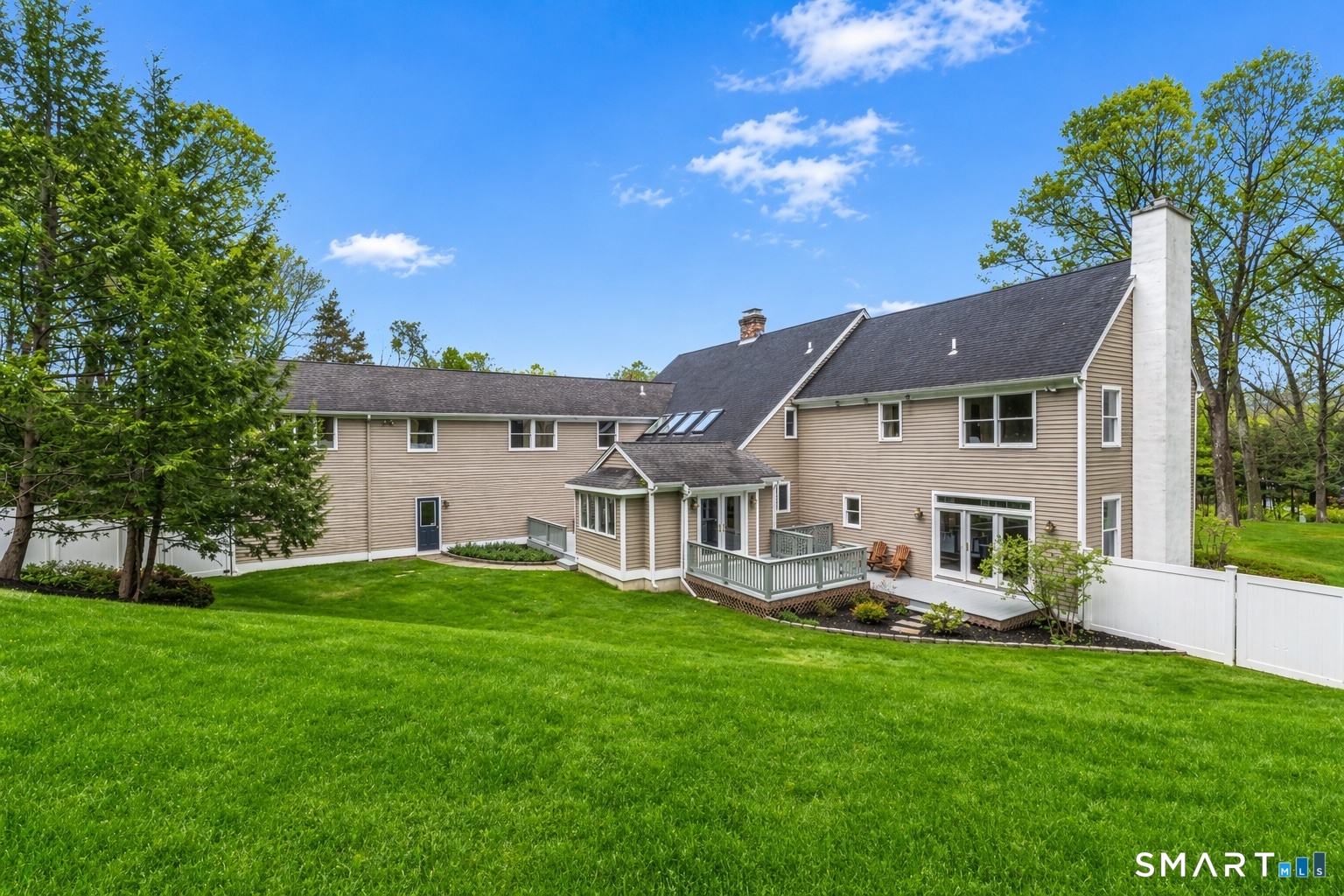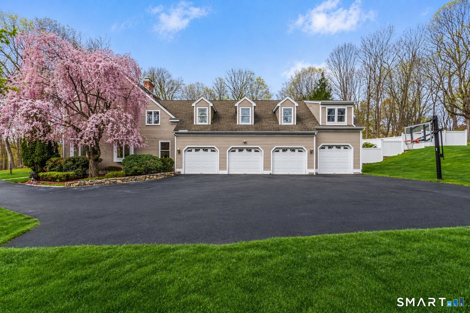 Gracefully set at the end of a quiet cul-de-sac on 1.7 lush acres, this custom-built 6-bedroom Colonial Saltbox offers an exceptional blend of timeless elegance, warmth, and modern comfort. Ideally located near Ridgefield Golf Course with access to Pleasant View Recreation Area, this home is designed for both relaxed living and effortless entertaining.The main level showcases a beautifully updated kitchen with granite countertops, high-end stainless steel appliances, and a spacious dining area that flows into a stunning family room with soaring cathedral ceilings, skylights, and a custom stone fireplace. Formal living and dining rooms, a private study, and a second sunlit family room with a built-in bar and fireplace provide versatile spaces for gatherings. Additional highlights include two powder rooms, expansive decks, a 4-car garage, and a full-house generator.Upstairs, the luxurious primary suite features a tray ceiling, dual closets, and a spa-like bath with jacuzzi and double vanities. Multiple bedroom wings offer flexibility, including an in-law or nanny suite with private living space. A walk-up attic and recent upgrades such as new roof, new boiler and water heater, new a/c condenser, new well, new half bath in basement, new washer/dryer and induction stove top just to name a few. Waiting for your personal touches.