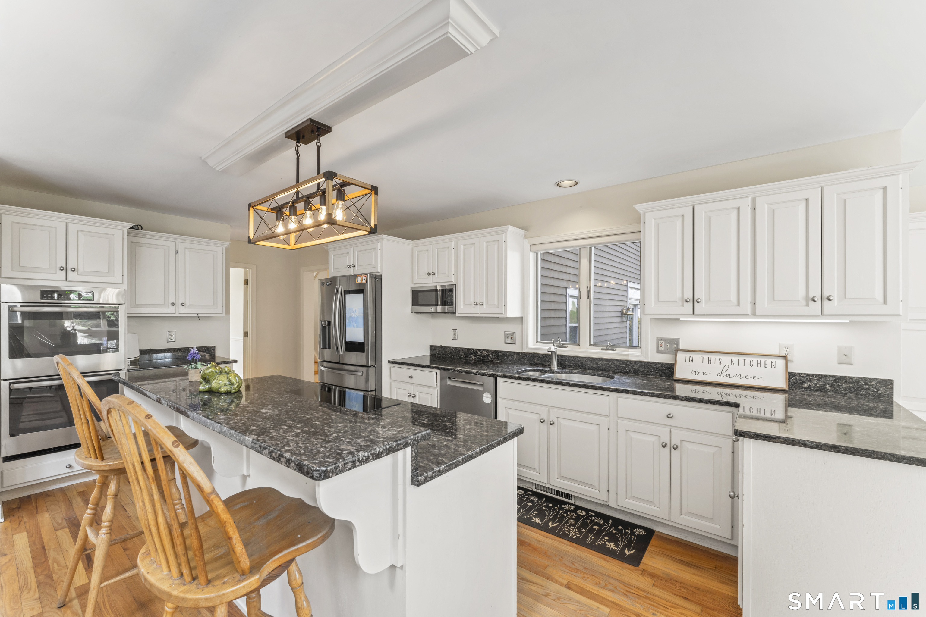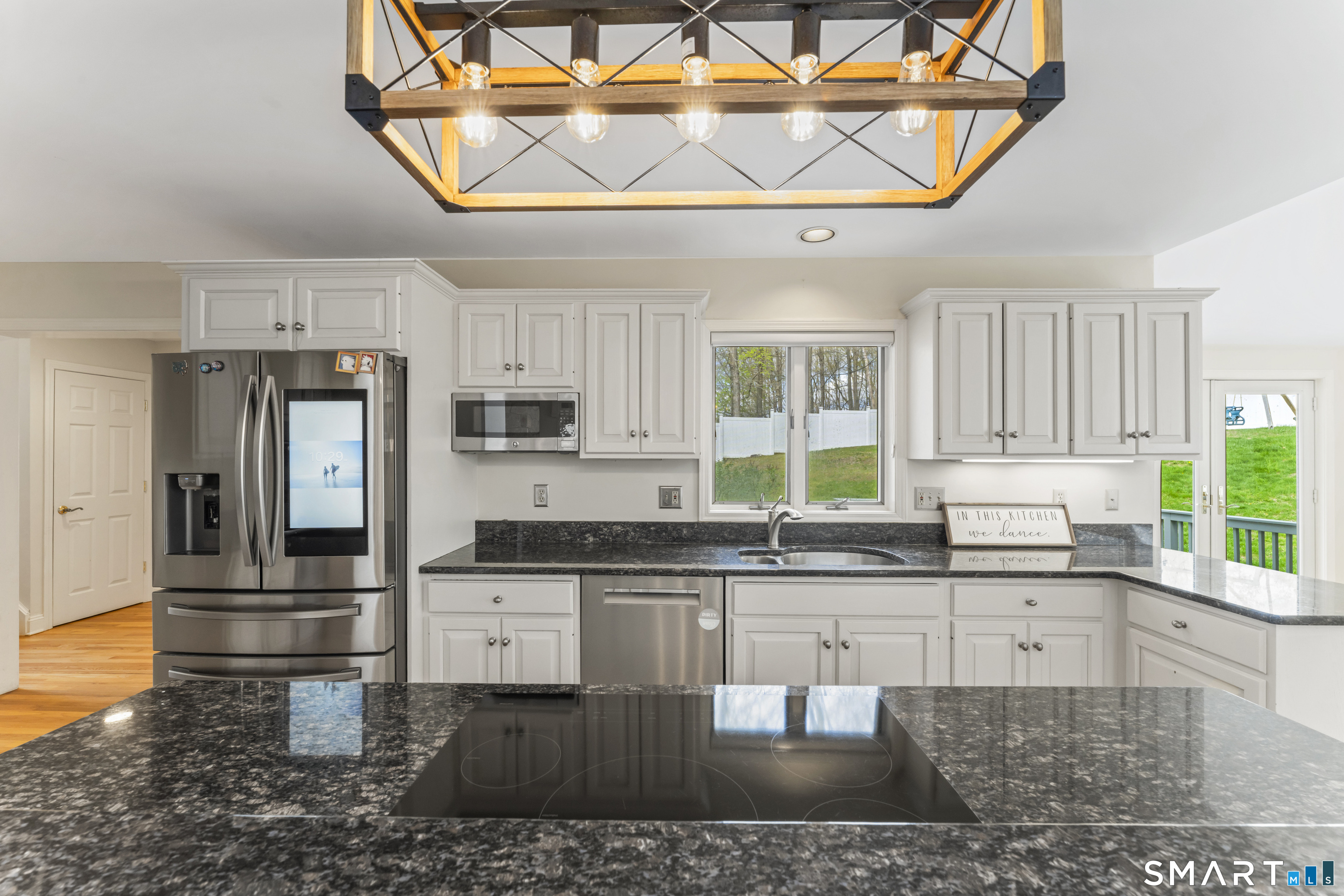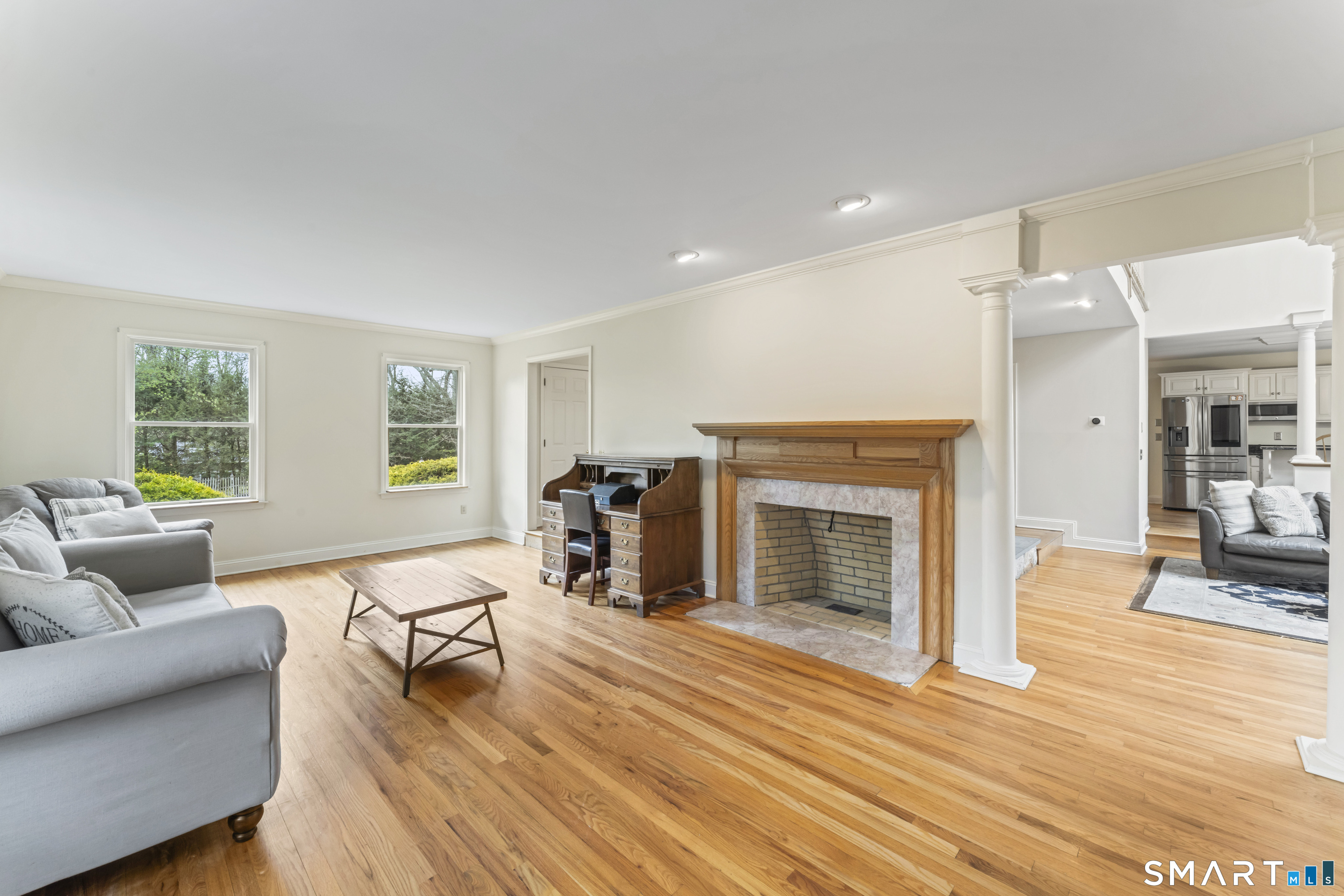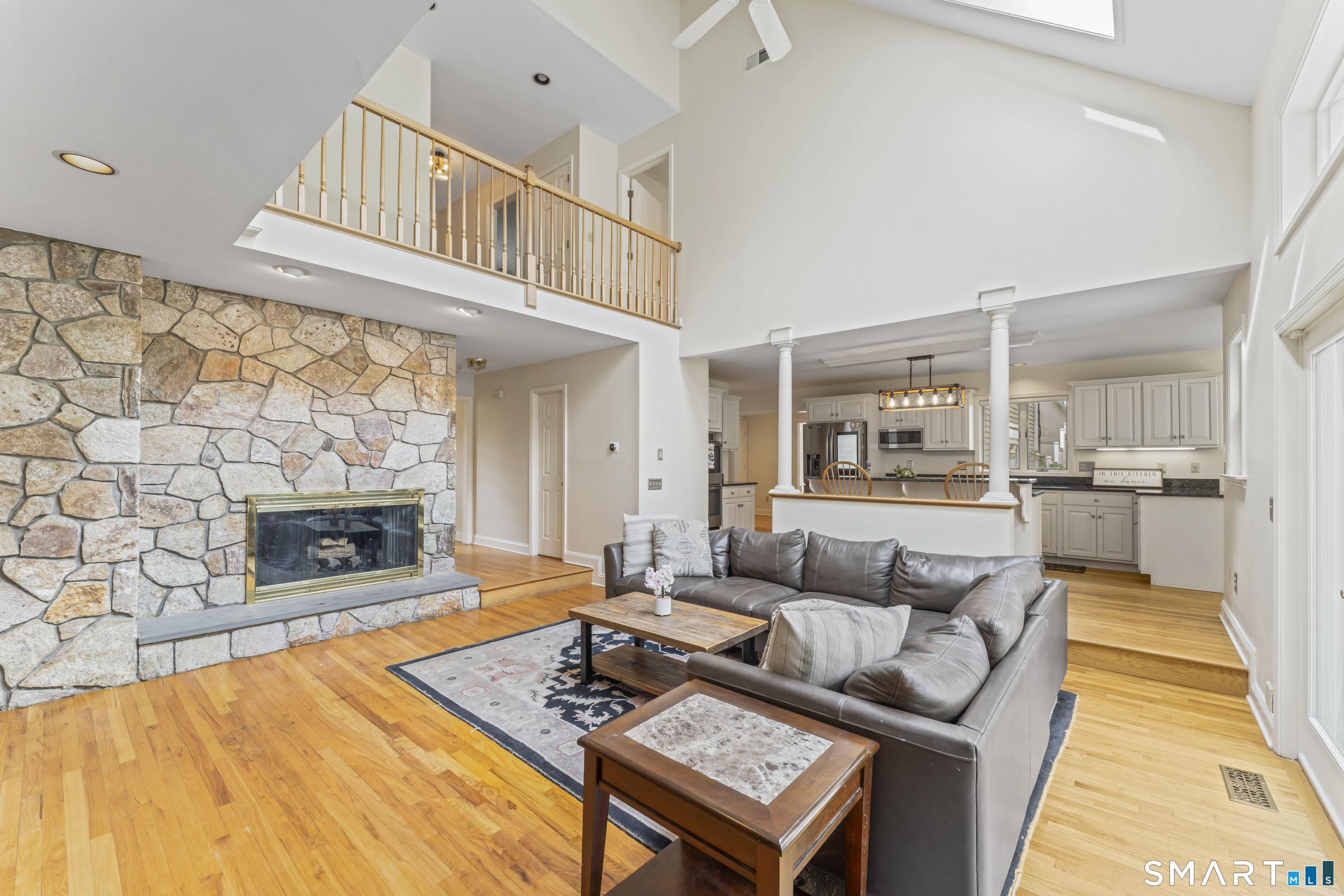 Gracefully set at the end of a quiet cul-de-sac on 1.7 lush acres, this custom-built 6-bedroom Colonial Saltbox offers an exceptional blend of timeless elegance, warmth, and modern comfort. Ideally located near Ridgefield Golf Course with access to Pleasant View Recreation Area, this home is designed for both relaxed living and effortless entertaining.The main level showcases a beautifully updated kitchen with granite countertops, high-end stainless steel appliances, and a spacious dining area that flows into a stunning family room with soaring cathedral ceilings, skylights, and a custom stone fireplace. Formal living and dining rooms, a private study, and a second sunlit family room with a built-in bar and fireplace provide versatile spaces for gatherings. Additional highlights include two powder rooms, expansive decks, a 4-car garage, and a full-house generator.Upstairs, the luxurious primary suite features a tray ceiling, dual closets, and a spa-like bath with jacuzzi and double vanities. Multiple bedroom wings offer flexibility, including an in-law or nanny suite with private living space. A walk-up attic and recent upgrades such as new roof, new boiler and water heater, new a/c condenser, new well, new half bath in basement, new washer/dryer and induction stove top just to name a few. Waiting for your personal touches.