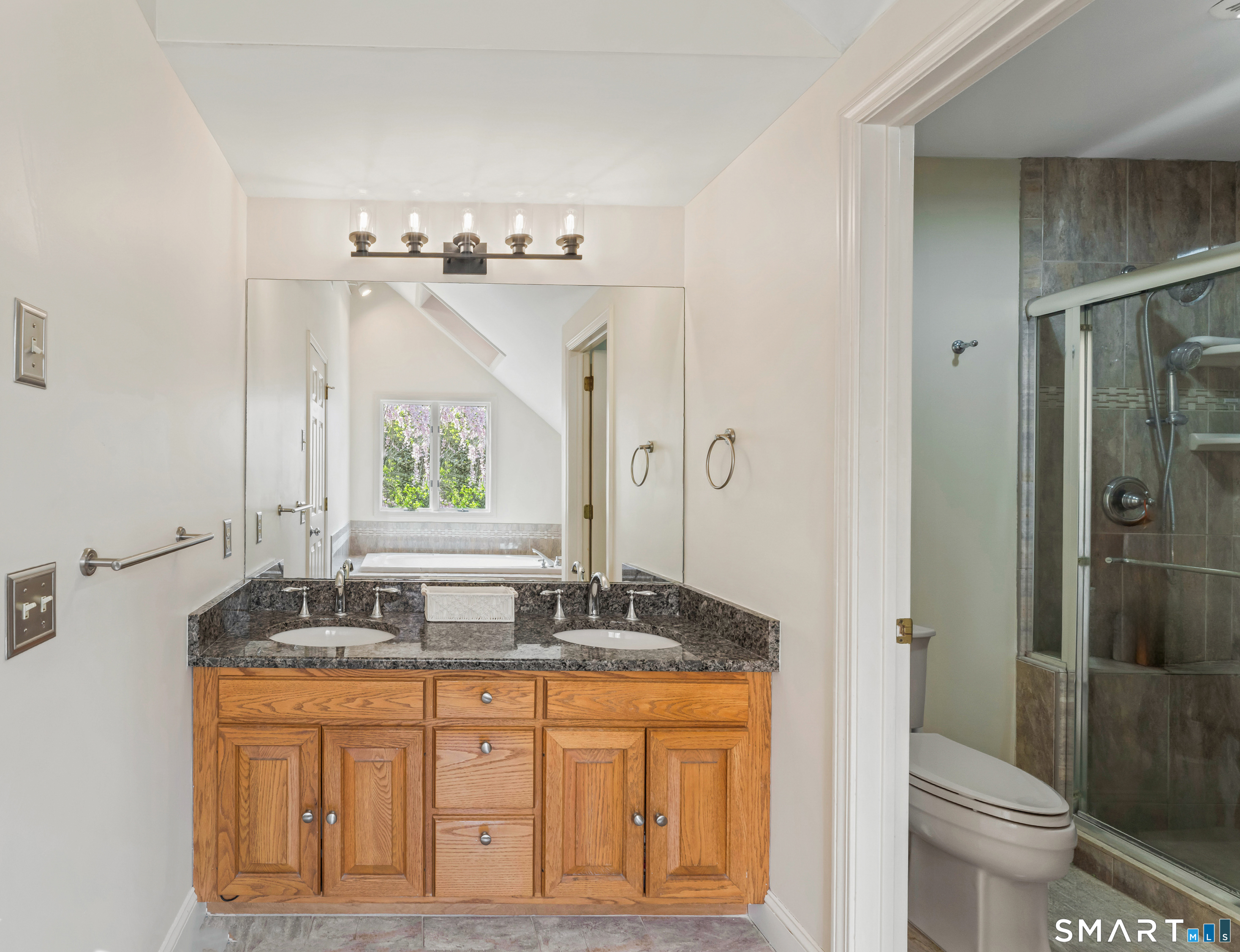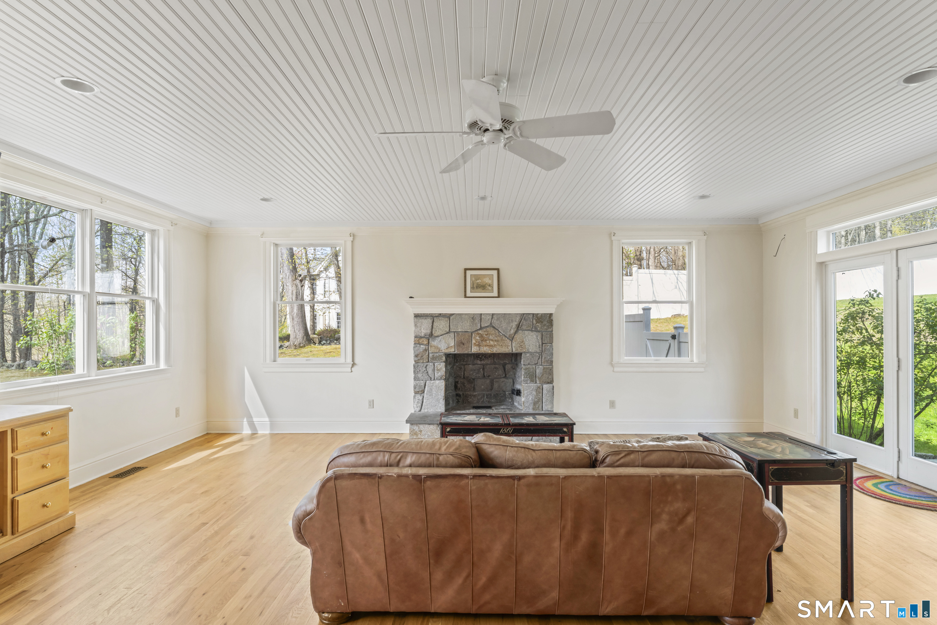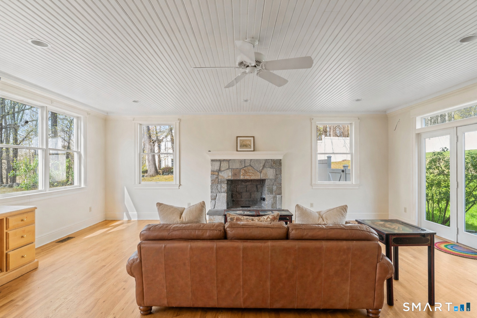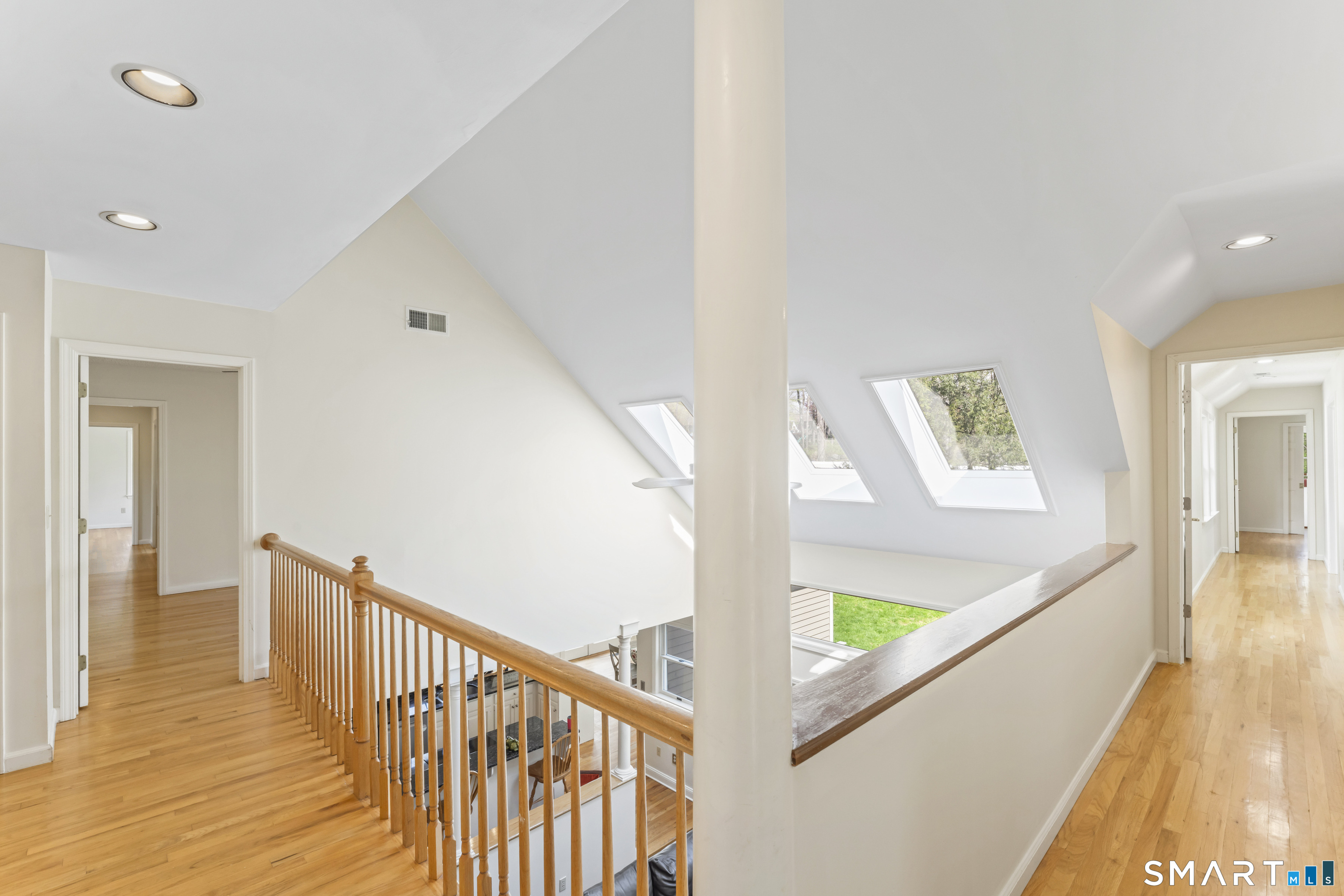 Gracefully set at the end of a quiet cul-de-sac on 1.7 lush acres, this custom-built 6-bedroom Colonial Saltbox offers an exceptional blend of timeless elegance, warmth, and modern comfort. Ideally located near Ridgefield Golf Course with access to Pleasant View Recreation Area, this home is designed for both relaxed living and effortless entertaining.The main level showcases a beautifully updated kitchen with granite countertops, high-end stainless steel appliances, and a spacious dining area that flows into a stunning family room with soaring cathedral ceilings, skylights, and a custom stone fireplace. Formal living and dining rooms, a private study, and a second sunlit family room with a built-in bar and fireplace provide versatile spaces for gatherings. Additional highlights include two powder rooms, expansive decks, a 4-car garage, and a full-house generator.Upstairs, the luxurious primary suite features a tray ceiling, dual closets, and a spa-like bath with jacuzzi and double vanities. Multiple bedroom wings offer flexibility, including an in-law or nanny suite with private living space. A walk-up attic and recent upgrades such as new roof, new boiler and water heater, new a/c condenser, new well, new half bath in basement, new washer/dryer and induction stove top just to name a few. Waiting for your personal touches.