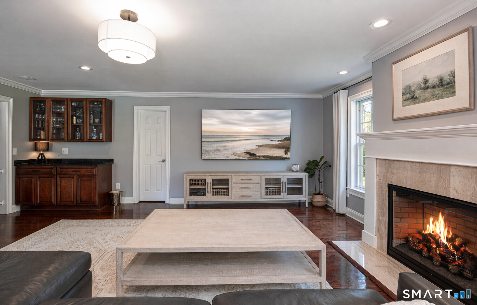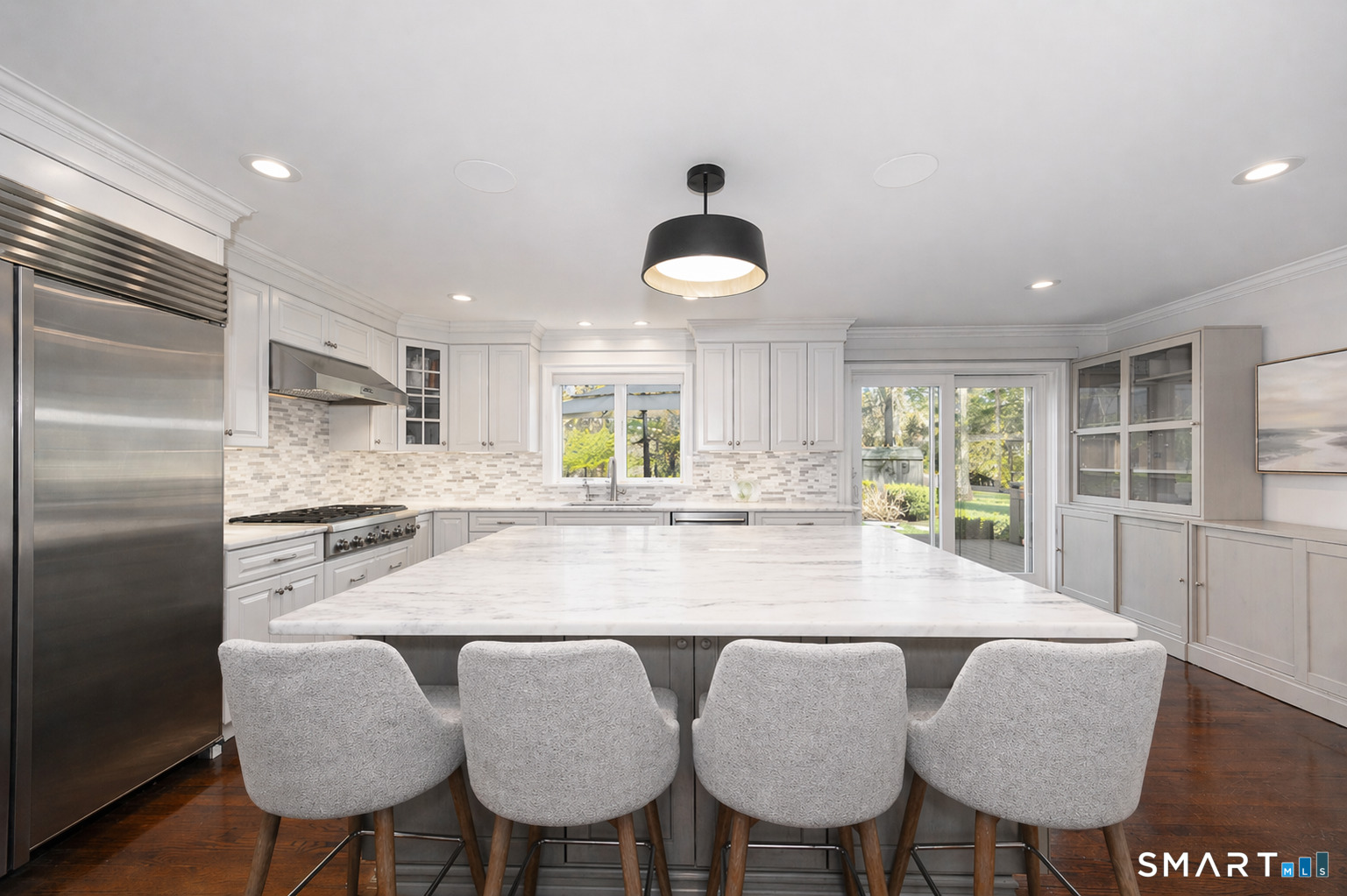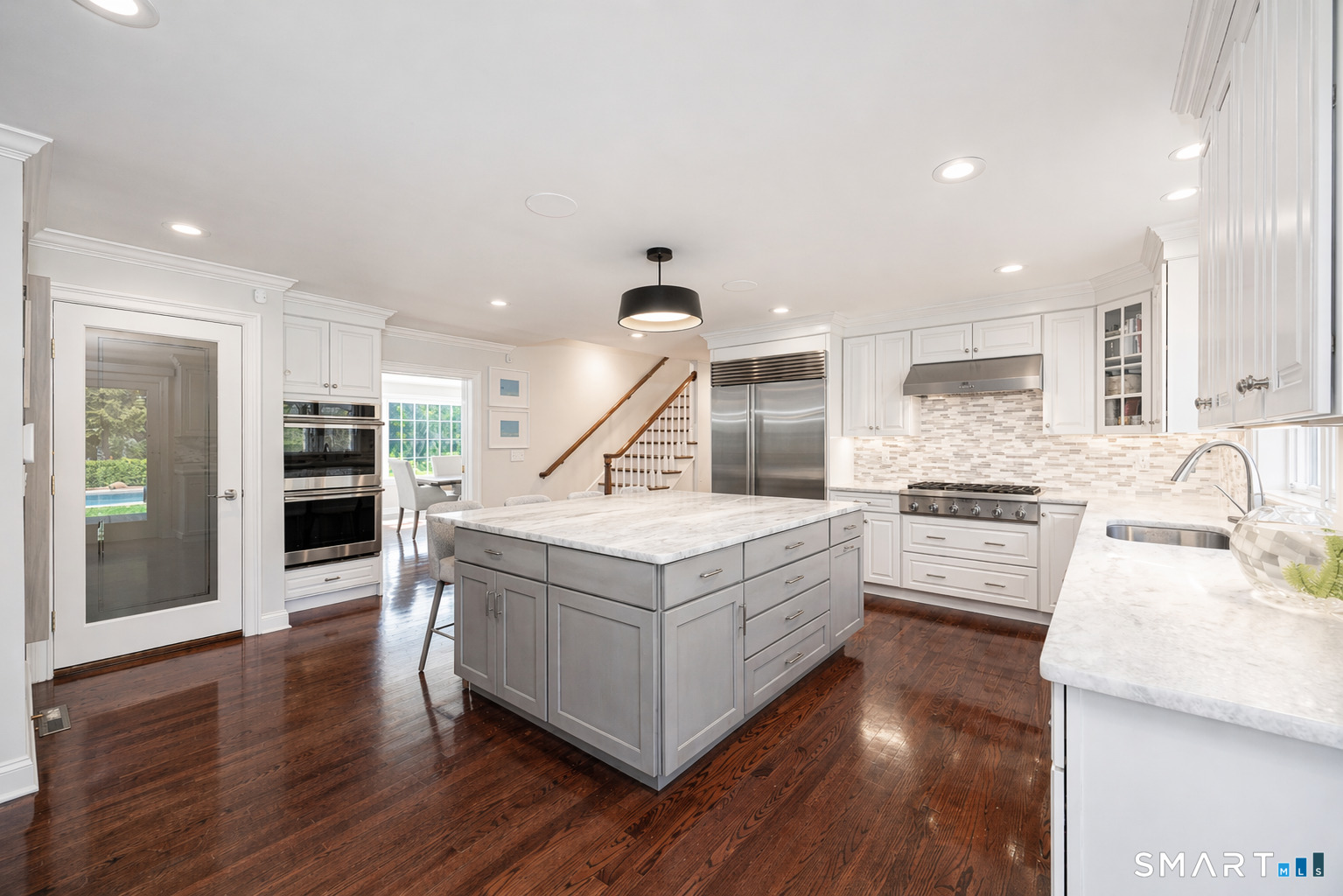 A rare offering in sought-after South Wilton, this exceptional 2009 Colonial pairs over 5,800 square feet of sophisticated living space with the feel of a private retreat. Surrounded by 1.8 acres of park-like grounds, the property offers a serene, resort-like setting just minutes from Rolling Hills Country Club, Ambler Farm, and major commuter routes. Designed for both elegant entertaining and effortless daily living, the home features 5 bedrooms and 6 baths, including a flexible main-level suite ideal for guests or a private office. Sun-filled living spaces include a gracious sitting room, living room, and sunroom, while two fireplaces bring warmth and character throughout. The kitchen is perfectly positioned to overlook the pool and backyard, with sliding doors opening to the deck and outdoor entertaining spaces for seamless indoor-outdoor living. Upstairs, a spacious great room provides ideal flex space for media, play, or gathering, while the expansive primary suite offers walk-in closets and a spacious bath. A second-floor laundry room, walk-up unfinished attic, and finished lower level add versatility and convenience. Outside, the lifestyle is truly exceptional. A saltwater pool, hot tub, expansive deck, level lawn, and indoor/outdoor sound system create the feel of a private oasis-peaceful, polished, and perfectly suited for both quiet enjoyment and entertaining. Offering a rare blend of space, style, and serenity, this home is a true gem. Equipped with an electric