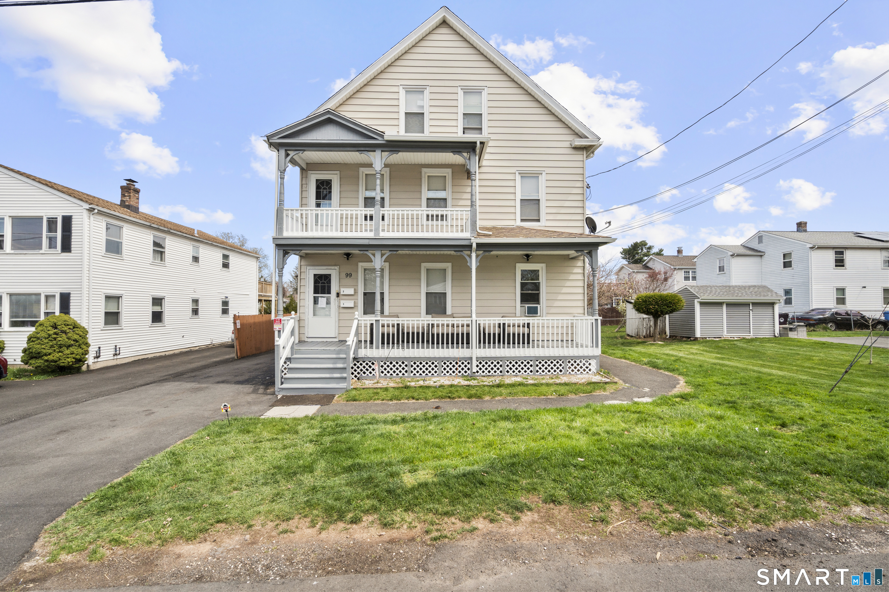 Welcome to 99 Abbe Street, a versatile two-family home offering both comfortable living and income potential. The exterior features freshly painted porches, a well-maintained front lawn, and reasonably sized backyard areas, along with ample driveway space and designated parking. The first-floor unit offers 3 bedrooms and 1 bathroom, along with a bright eat-in kitchen with generous cabinet storage and updated flooring. The layout is both practical and inviting, with dedicated space for dining and everyday living. The second unit includes 3 bedrooms and 1 full bathroom on the main level, along with a recently updated walk-up attic that significantly expands the living space. This upper level features 2 additional bedrooms and a full bathroom, creating a bright and versatile retreat with abundant natural light-ideal for extended living, guest space, or a private suite. The freshly painted basement offers two separate storage areas. A great opportunity for both owner-occupants and investors alike. Best & Highest Monday 4/27 at 5pm