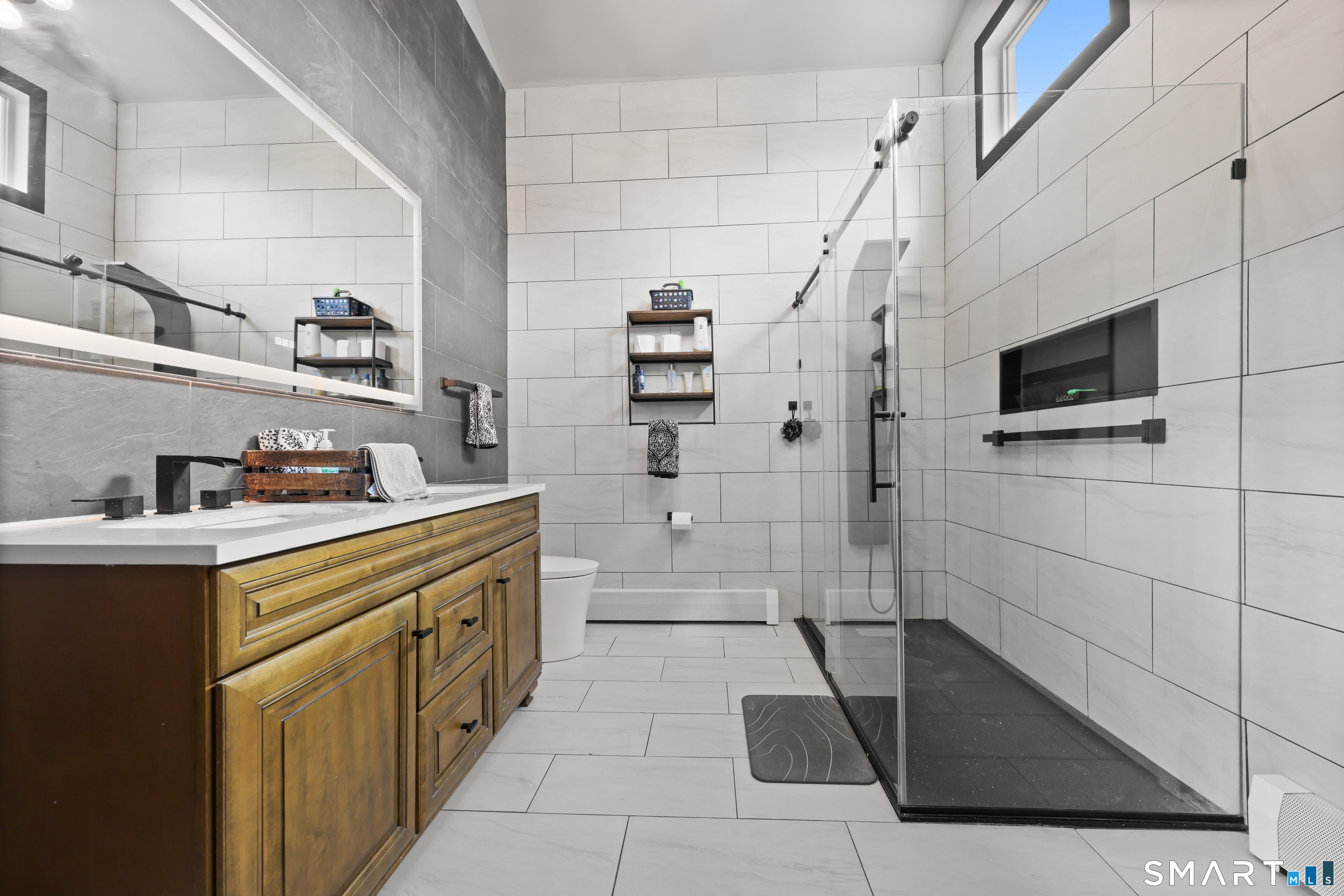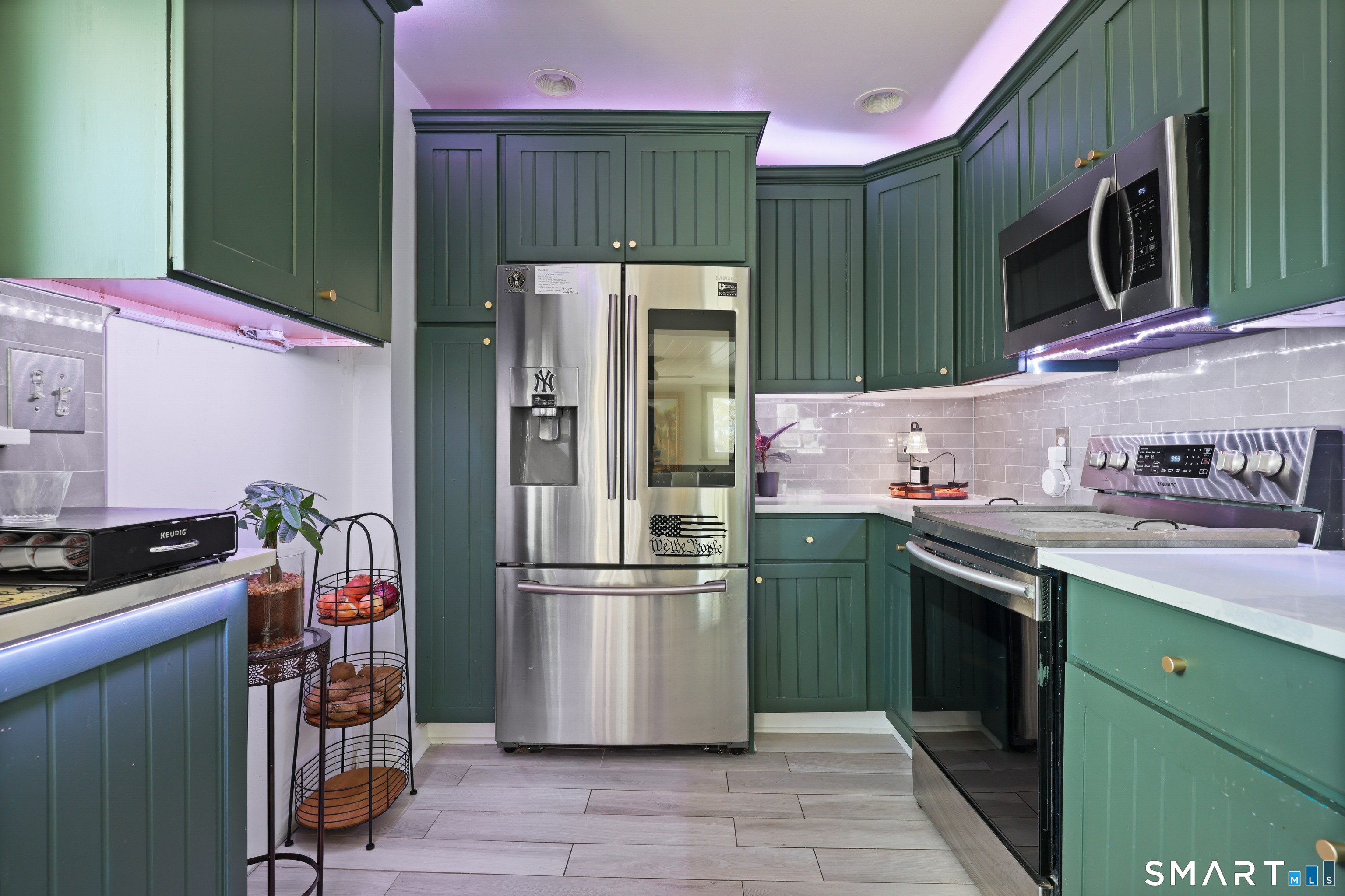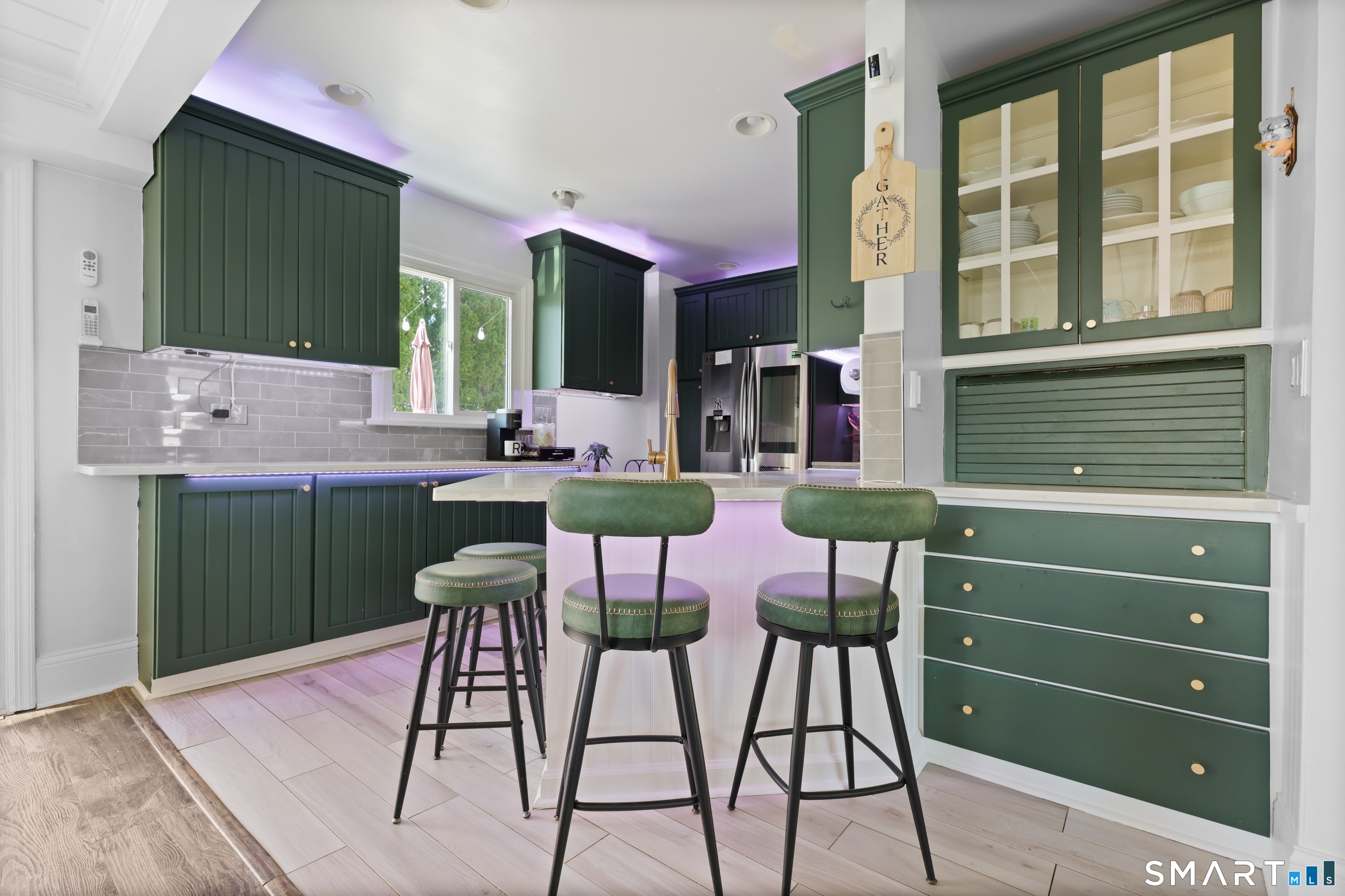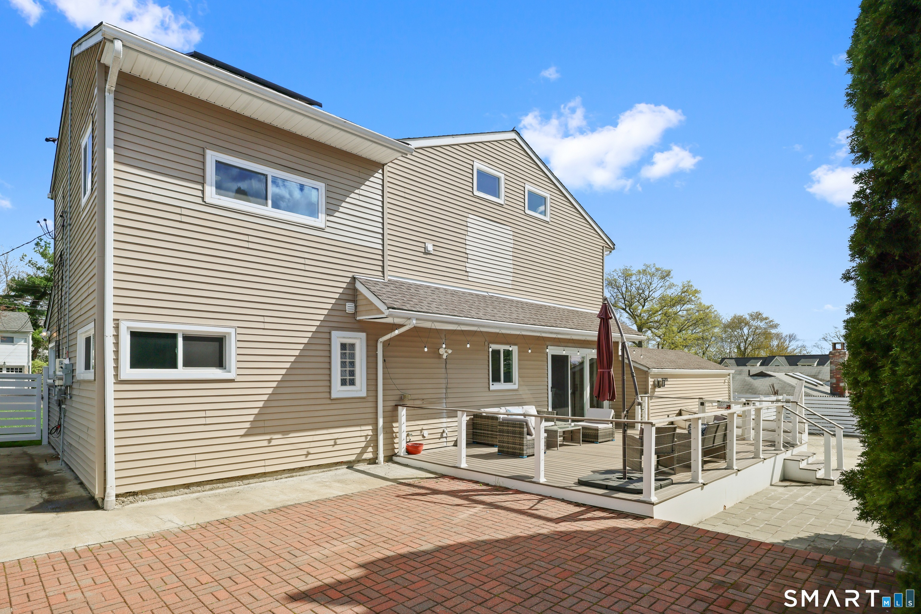 Renovated 4-bedroom, 2-bathroom expanded Cape in Springdale, Stamford, Connecticut. This 1,944-square-foot home features an open floor plan with a fully updated kitchen, quartz countertops, stainless steel appliances, and tile flooring. A dining area with a detailed architectural ceiling connects to the main living space, offering seamless flow for everyday living and entertaining. The primary bedroom includes a vaulted ceiling, creating an airy, spacious retreat. Both full bathrooms have been updated with modern finishes. A dedicated bonus room on the main level provides flexible space - ideal as a home office, gym, or studio. The rear of the home opens directly to a deck and patio - a true flat entertaining space. This home sits near the Springdale Metro-North train station, offering a quick commute to Grand Central. Near local shops and restaurants, with easy access to the Merritt Parkway and I-95. A move-in-ready, updated home with flexible space and a commuter-friendly location.