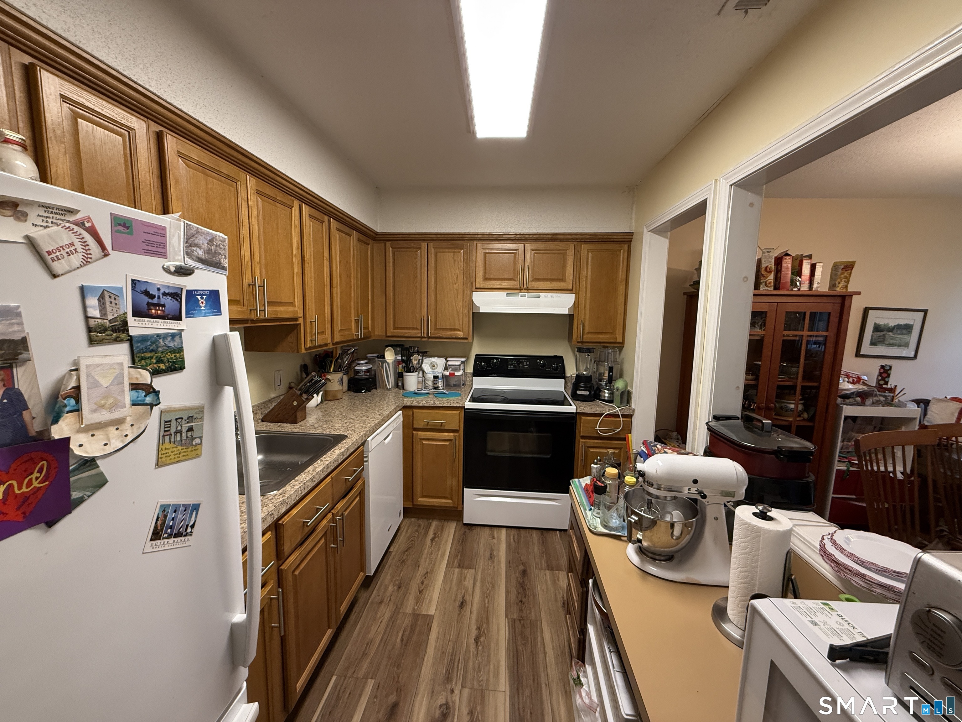 Welcome to 900 Mix Avenue, Unit 68 - a move-in-ready first-floor condo offering easy, single-level living in a well-established Hamden community. This well-cared-for home has seen numerous thoughtful updates over the last decade, including a 2024 kitchen refresh featuring new cabinetry and countertops that bring a clean, modern look to the heart of the home. The fully renovated full bathroom combines updated finishes with built-in accessibility features for added comfort and convenience. Updated flooring flows throughout the main living areas for a clean, cohesive look. A bright, open-concept living and dining room - anchored by a classic chandelier and filled with natural light - opens directly to a private walk-out patio, the perfect spot for morning coffee or quiet evenings outdoors. Two comfortable bedrooms, an updated half bath, and convenient in-unit laundry complete the thoughtful single-level layout. Residents enjoy access to the community pool and the ease of low-maintenance condo living, with all major living spaces on one floor and no interior stairs. Ideally located near Hamden's shopping, dining, parks, and commuter routes, with quick access to New Haven and Yale. With fresh updates, built-in accessibility features, and true one-level living, this home combines comfort, style, and convenience in one of Hamden's most desirable condo settings. Schedule your private showing today!